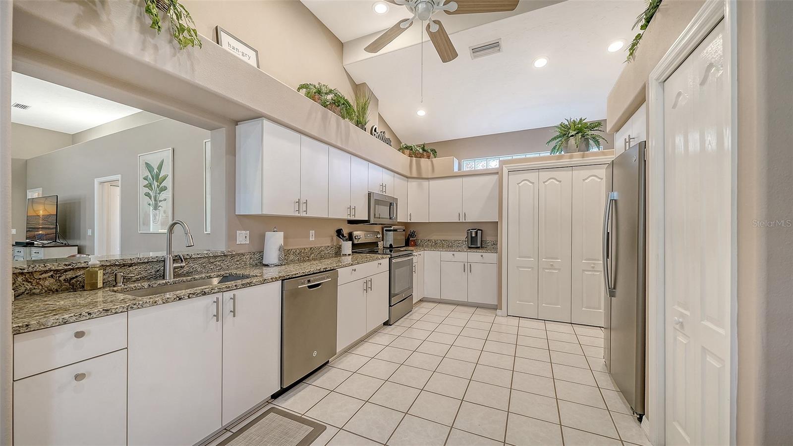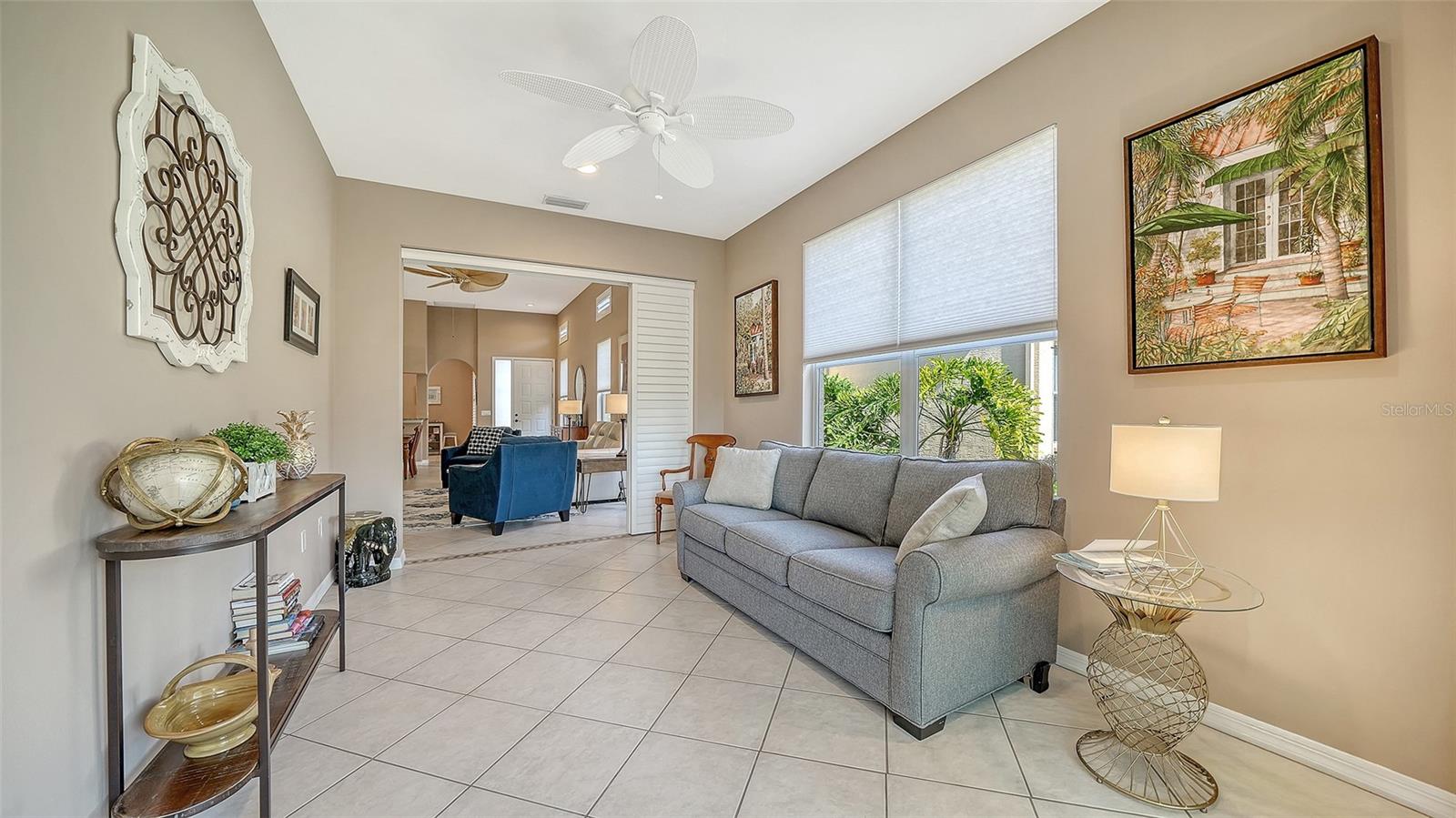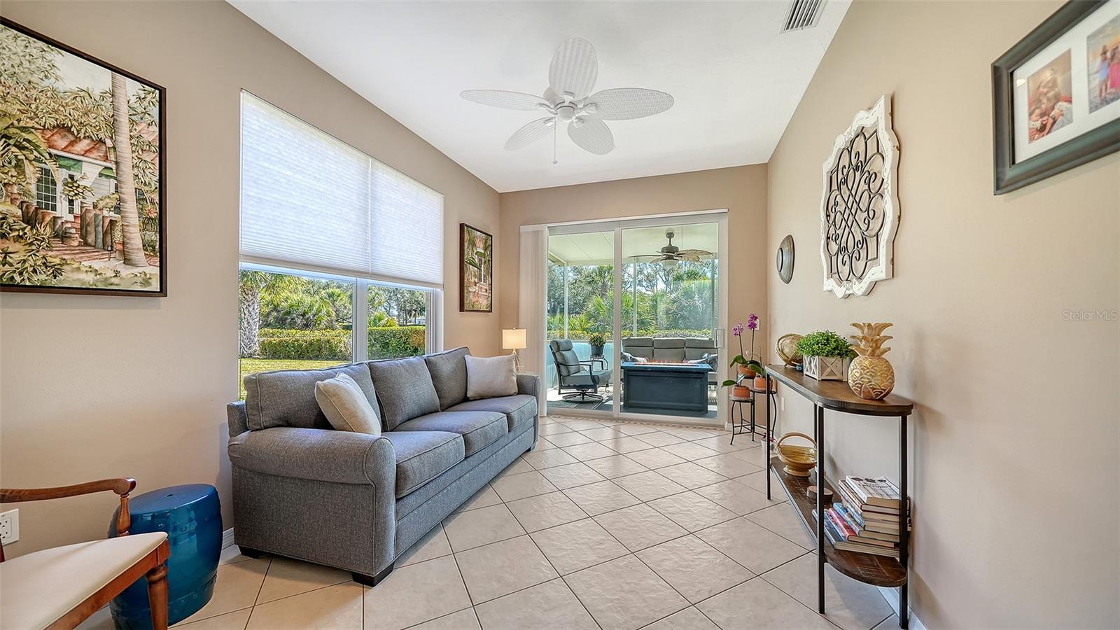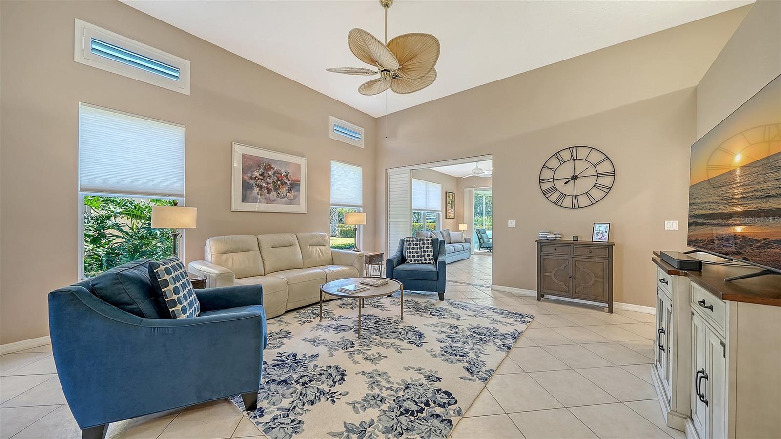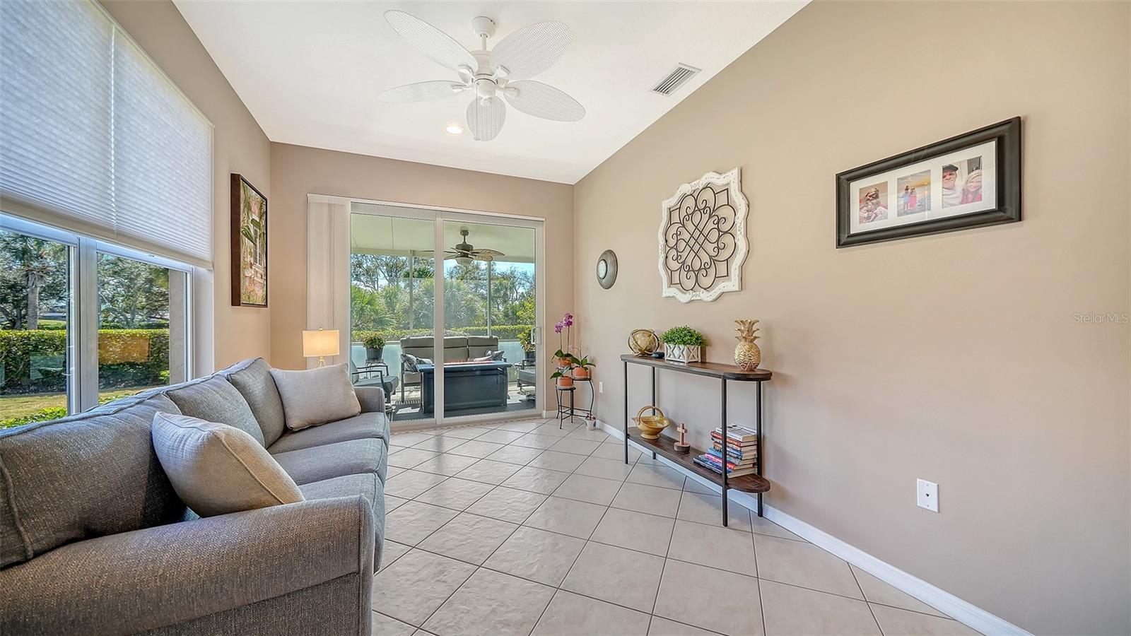 A mais nova oportunidade de Mira Lago do Palmer Ranch é uma casa de conceito aberto, bem conservada, que oferece inúmeras atualizações que melhoram a vida nesta comunidade desejável e livre de manutenção. Entre por uma entrada frontal coberta e com tela que se abre para uma espaçosa Sala Grande com teto de 3,6 metros. Ambos os quartos oferecem carpetes neutros mais recentes e tetos de 9'4", criando um retiro confortável e convidativo. A espaçosa cozinha é acessada através de um arco impressionante e é repleta de luz natural de uma grande janela refletida em amplos armários e bancadas brancas. A cozinha possui despensa, prateleiras de plantas, área para café da manhã, armário para lavanderia e balcão de passagem sobre a pia dupla para a área de jantar. Além da Grande Sala, há uma Sala Bônus arejada e personalizada - atualmente usada como escritório / escritório - que oferece espaço flexível. Portas de vidro deslizantes levam a uma varanda coberta e blindada de 10' x 15' com vista para o Campo de Golfe Prestancia e um exuberante quintal. A suíte principal inclui um amplo closet e banheiro privativo com banheira de hidromassagem, pia dupla, vaso sanitário com vaso sanitário de altura confortável, chuveiro separado e armário de roupas de cama. O segundo quarto possui um armário de parede inteira e está convenientemente localizado próximo ao segundo banheiro, completo com banheira e chuveiro combinados e vaso sanitário de altura confortável. Ventiladores de teto estão incluídos em todos os quartos. A garagem para dois carros está bem equipada com bancada de trabalho, parede para guardar ferramentas, armários, escada de acesso ao sótão e pia. As atualizações recentes incluem lavadora e secadora (2024), atualizações de banheiro (2023), carpete de dois quartos (2024), geladeira e micro-ondas (2023), telhado de telha cilíndrica (2019), A/C (2016) e porta de garagem (2012). Mira Lago oferece duas entradas fechadas, paisagismo impecavelmente cuidado, piscina e spa aquecidos e quatro lagoas pitorescas com fontes frequentadas por pássaros tropicais e aquáticos. Idealmente localizado a poucos minutos de Siesta Key e das praias da região, centro de Sarasota, Legacy Trail, Costco, YMCA, Potter Park e excelentes restaurantes. Em breve no Palmer Ranch estarão Whole Foods, Trader Joe’s e opções adicionais de compras e restaurantes – tornando esta uma oportunidade excepcional para aproveitar o estilo de vida da Flórida.
