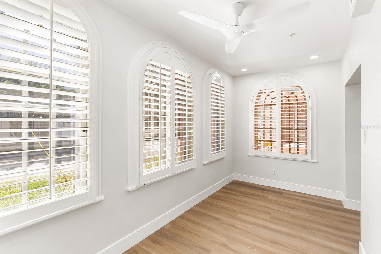 Uma ou mais fotos foram virtualmente encenadas. Escondida no histórico Frances Carlton de 1924, na Palm Avenue, esta residência totalmente reinventada oferece algo raramente encontrado no centro de Sarasota, o caráter de um edifício vintage combinado com o conforto de um interior completamente reconstruído. Criada pela combinação de duas residências, a casa ocupa quase 1.600 pés quadrados e parece mais um apartamento privado do que um condomínio típico. Tetos altos, janelas em arco originais e quartos definidos preservam o charme arquitetônico, enquanto uma reforma abrangente traz a casa inteiramente para o presente. Entra-se diretamente numa cozinha generosa e aberta, uma característica inesperada num edifício desta época, concebida para a vida quotidiana e para o convívio, em vez de para a passagem. Armários personalizados, superfícies de pedra, eletrodomésticos de café e iluminação cuidadosa criam um espaço refinado e acolhedor. As venezianas suavizam a luz natural, mantendo a privacidade. As áreas de estar fluem naturalmente em direção à marquise com vista para a Palm Avenue, onde a luz quente da tarde do sudoeste preenche o espaço. No extremo oposto da casa, a suíte principal oferece uma experiência totalmente diferente. Posicionado na parte traseira da residência, estende-se para uma segunda marquise fechada com vista para um pequeno pátio ajardinado. Acessível através do quarto, este espaço torna-se um retiro tranquilo, ideal para o café da manhã, leitura ou um espaço de trabalho tranquilo. A renovação vai muito além dos cosméticos. Foram reconstruídos pavimentos, cozinha, casas de banho, electricidade, canalização, iluminação e acabamentos, complementados por dois novos sistemas de ar condicionado e esquentador sem tanque. O resultado preserva a alma arquitetônica do edifício, ao mesmo tempo que proporciona a confiabilidade de uma casa muito mais nova. A residência inclui lavanderia na unidade, duas vagas de estacionamento seguras e acesso à piscina comunitária dentro de um edifício íntimo de vinte residências. A partir daqui, o centro de Sarasota faz parte da vida cotidiana. Florida Studio Theatre, Sarasota Opera, restaurantes, cafés e bebidas à noite ficam a apenas um ou dois quarteirões de distância, com o Bayfront e a marina a uma curta caminhada. Para quem busca conforto e vida em arranha-céus, o centro da cidade oferece muitas opções. Para quem busca charme, história, facilidade de locomoção e uma casa genuinamente única, oportunidades como essa são muito raras.