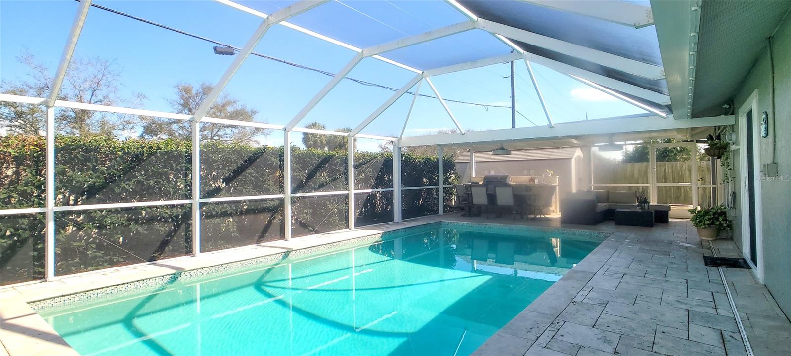 Bem-vindo à casa dos seus sonhos na Flórida! Esta residência meticulosamente renovada com 3 quartos e 2 banheiros e escritório foi cuidadosamente atualizada para fornecer uma mistura perfeita de estilo e conforto em todos os cantos. No centro da casa, você encontrará uma cozinha espaçosa com muitos armários, uma despensa dedicada, elegantes bancadas em granito e uma ilha central. Este espaço flui facilmente para as áreas de jantar e de estar de conceito aberto, criando um ambiente perfeitamente integrado para a vida familiar e de entretenimento. O interior brilha com piso cerâmico, complementado por uma paleta de cores claras e frescas que destacam os acabamentos modernos em todos os quartos. A suíte principal serve como um retiro privado, levando a um banheiro privativo tipo spa, equipado com pia dupla e uma banheira independente moderna - o local ideal para relaxar e se deliciar após um longo dia. Saia para o seu próprio paraíso tropical. O exterior apresenta uma piscina cintilante cercada por um deck de travertino premium, uma cozinha externa com sombra, uma área para refeições e uma sala de TV dedicada. Este oásis ao ar livre foi perfeitamente projetado para diversão durante todo o ano. Além disso, a garagem foi habilmente convertida para maximizar o espaço da casa, agora abrigando um escritório privado, uma lavanderia e uma conveniente área de armazenamento. Morada pronta e esperando por você.