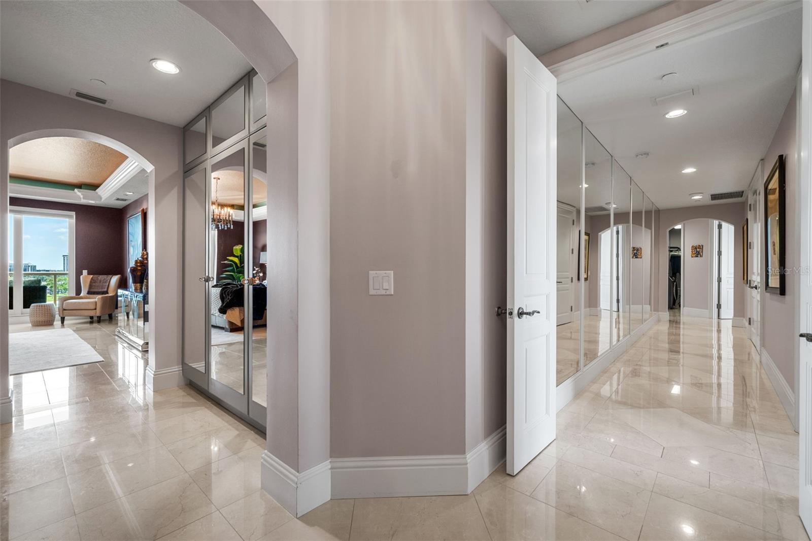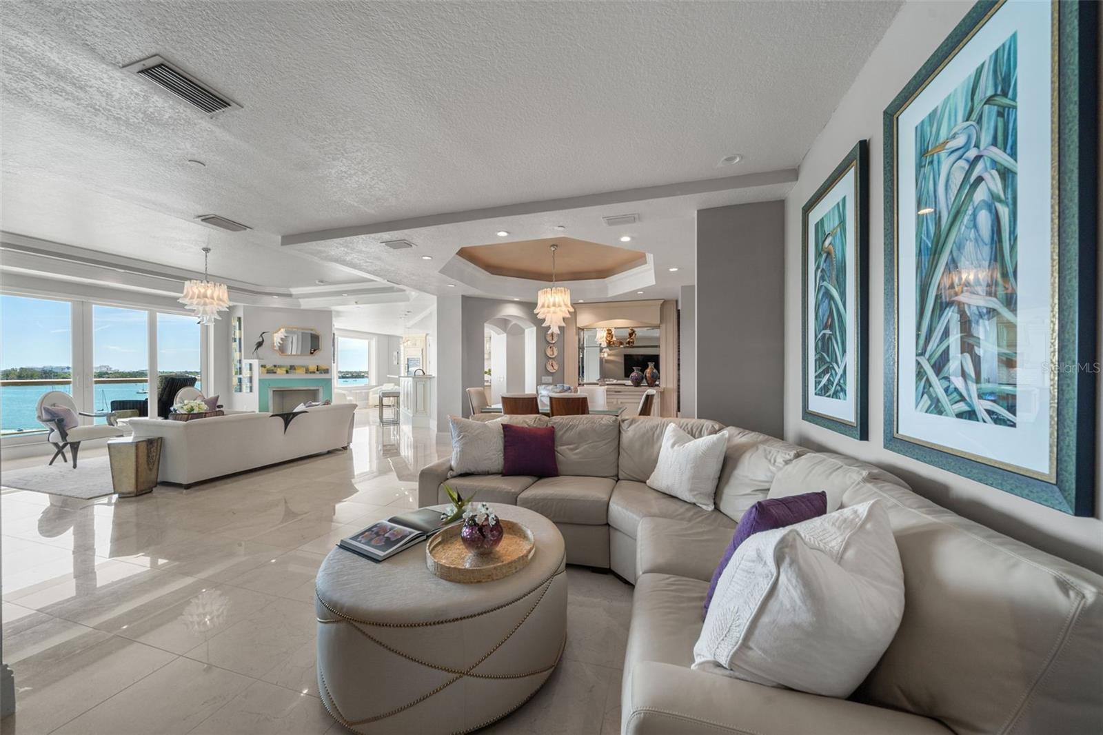 Com panoramas deslumbrantes da Baía de Sarasota, do horizonte do centro da cidade e das ilhas-barreira além, esta excepcional residência de 3 quartos e 4,5 banheiros em La Bellasara desfruta de um raro ponto de vista no 7º andar no cobiçado Golden Gate Point. Abrangendo mais de 3.490 pés quadrados e com piso de mármore neutro, a residência vive como uma casa privada à beira-mar - combinando interiores amplos, design refinado e acesso fácil ao coração do centro de Sarasota. A suíte principal é um verdadeiro retiro, diferenciada por dois banheiros masculinos e femininos completamente separados, oferecendo um nível incomum de espaço e privacidade. Um elevador privativo se abre para um elegante hall de entrada, dando o tom para interiores definidos por tetos altos, sancas e uma paleta leve e costeira. Paredes de vidro oferecem vistas da água e da cidade enquanto preenchem as áreas de estar e jantar de conceito aberto com luz natural. A espaçosa sala flui perfeitamente para os amplos terraços em frente à baía, criando um cenário ideal para entretenimento e vida cotidiana. A cozinha gourmet é cuidadosamente equipada com uma grande ilha central, balcão para café da manhã, armários personalizados e eletrodomésticos premium, incluindo fogão a gás Dacor de 6 bocas, refrigeração Sub-Zero, forno Wolf e gaveta de aquecimento (novo em 2025) e micro-ondas de convecção. Projetado para se conectar facilmente com as principais áreas de estar, oferece funcionalidade e estilo para jantares casuais ou hospedagem. A suíte principal tem acesso direto ao terraço, além de closets duplos e a rara distinção de dois banheiros completos separados, criando um verdadeiro retiro privado. Duas suítes adicionais, cada uma com banheiro privativo e acesso a terraços privativos, proporcionam conforto e privacidade para familiares e visitantes. A vida ao ar livre é igualmente atraente, com vários terraços que capturam vistas panorâmicas da baía e do horizonte. Uma cozinha de verão e uma churrasqueira a gás embutida melhoram a experiência, oferecendo o cenário perfeito para encontros ao pôr do sol ou noites tranquilas com vista para a água. La Bellasara é um condomínio íntimo e fechado à beira-mar com apenas 28 residências, que oferece a privacidade de uma casa unifamiliar com a facilidade de viver em um condomínio de luxo. Os residentes desfrutam de um conjunto completo de comodidades, incluindo serviços de concierge, piscina aquecida e spa em frente à baía, academia, teatro e salas sociais, além de uma doca de cortesia. Cada residência inclui uma garagem privativa para dois carros e, específico para esta residência, um ancoradouro com escritura. Idealmente localizado a poucos minutos do centro de Sarasota, de St. Armands Circle e das famosas praias da região, esta é uma rara oportunidade de desfrutar de uma vida refinada à beira-mar em uma das comunidades à beira-mar mais procuradas de Sarasota.