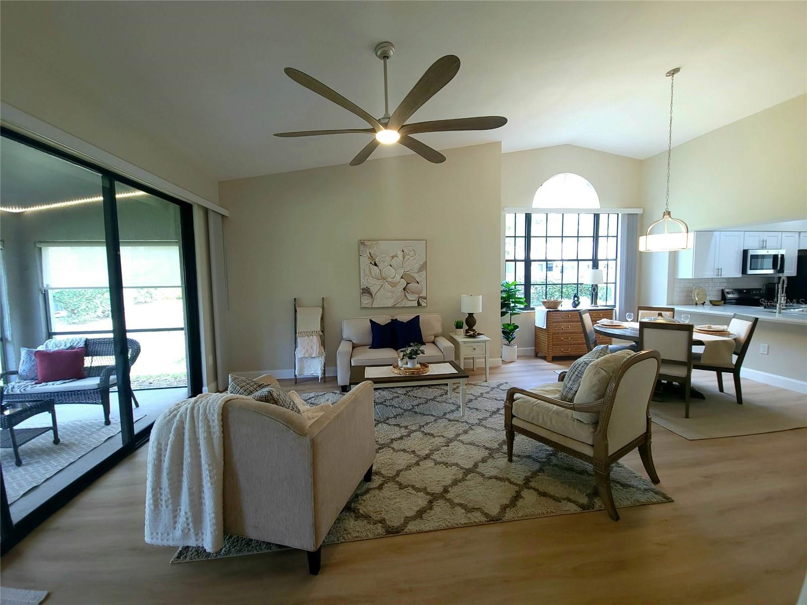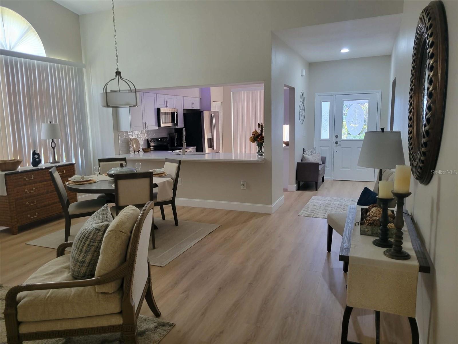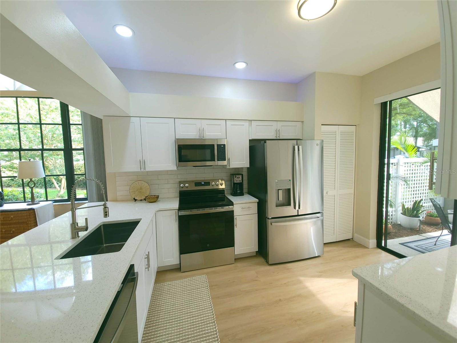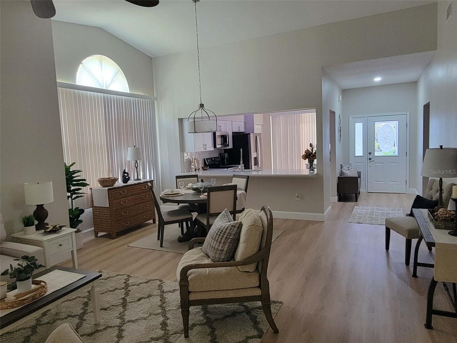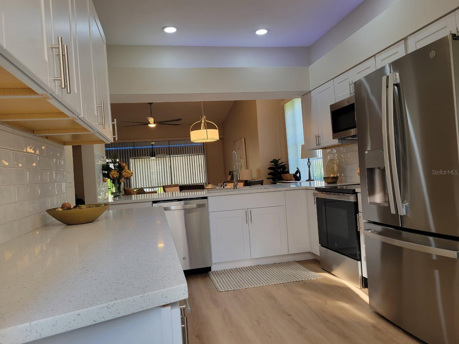 Esta casa está "MOVE IN READY"! Recentemente remodelado, dispõe de dois quartos e duas casas de banho, combinando acabamentos modernos com design clássico. Como unidade final, a villa possui tetos abobadados e luz natural abundante, criando uma atmosfera espaçosa e serena. O layout aberto, aprimorado com luxuoso piso de vinil, é ideal para entretenimento. A cozinha, projetada para qualquer chef doméstico, possui novos armários em estilo shaker, bancadas de quartzo branco, eletrodomésticos de aço inoxidável, backsplash de azulejos de metrô e balcão de café da manhã. A iluminação de destaque divertida na cozinha e na varanda oferece opções coloridas e reguláveis para se adequar ao seu humor. Os toques de designer são abundantes, incluindo ventiladores de teto modernos, paredes neutras recém-pintadas, novas persianas e iluminação atualizada por toda parte. Ambos os banheiros são claros e limpos, com pias novas, acabamentos elegantes de quartzo, acessórios contemporâneos e banheiras e chuveiros atualizados. A planta dividida garante privacidade em cada quarto, ambos oferecendo amplo espaço no armário. Esta casa construída em bloco também conta com um novo telhado instalado em 2024, proporcionando maior proteção e tranquilidade. Hampstead Heath é caracterizada por ruas arborizadas e paisagismo maduro, oferecendo moradias livres de manutenção e uma atmosfera de vizinhança amigável. O HOA instalou recentemente novos telhados, pintou exteriores, pátios atualizados e recapeou a piscina aquecida, tudo isso mantendo uma forte saúde financeira. A comunidade Meadows tem uma localização central, muitas reservas de vida selvagem, recursos hídricos e quilômetros de trilhas naturais. Apesar do seu ambiente tranquilo e semelhante a um parque, fica a poucos minutos do Parque Benderson, de lojas e restaurantes locais. O Meadows Country Club oferece golfe, tênis, paddle, piscina e academia. É importante enfatizar que tudo nesta vila é novo – ao contrário de muitos anúncios que são meramente “atualizados” ou “renovados” ao longo dos anos. O próximo proprietário será o primeiro a desfrutar desta renovação abrangente, que inclui novo sistema de ar condicionado, nova cozinha, novas casas de banho, novo telhado e muito mais.
