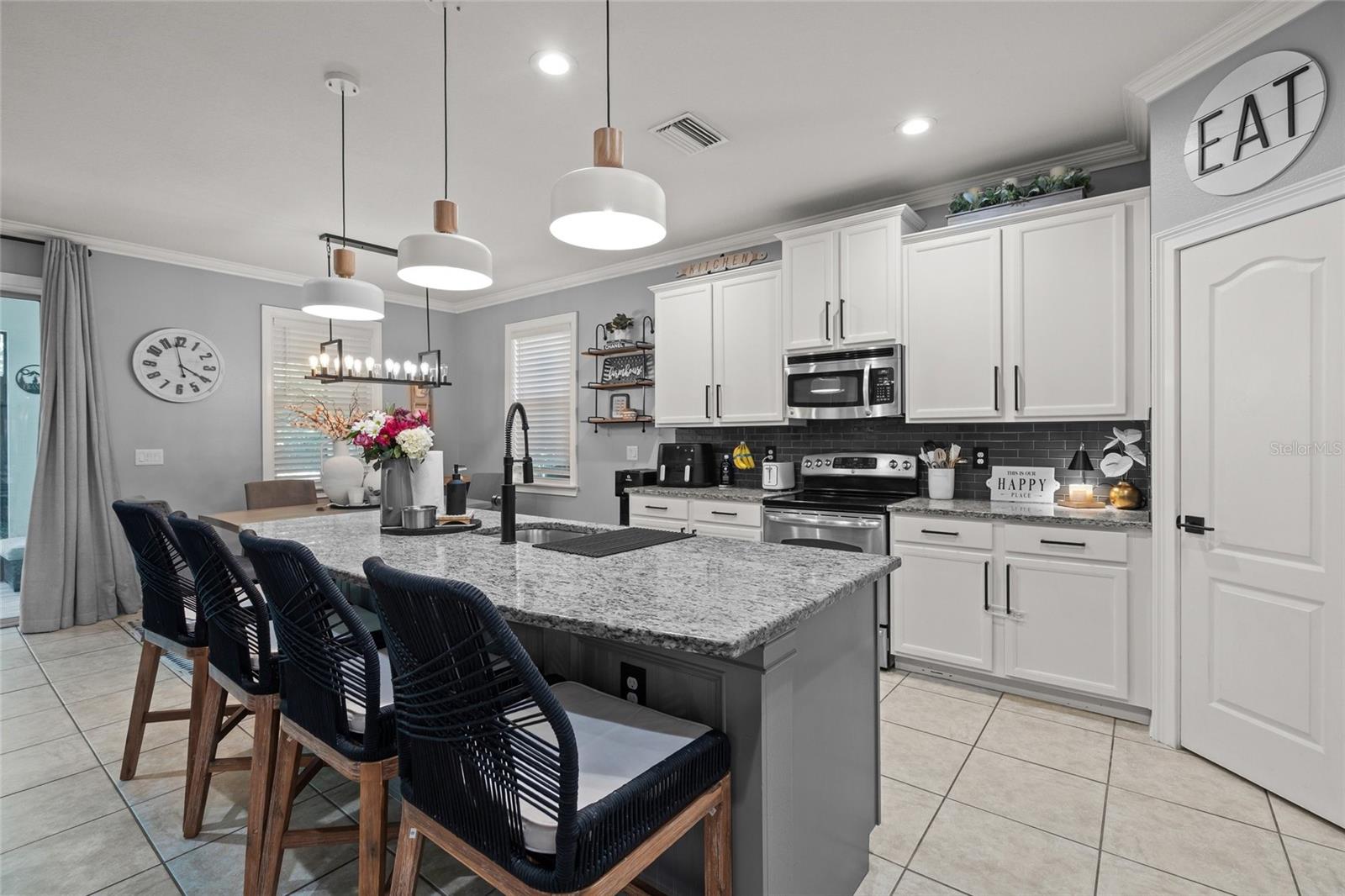 Bem-vindo ao condomínio fechado de Ashton Pointe, um enclave de 49 casas sem manutenção. Minutos para a I-75, Escolas A+ Classificadas e Chave Siesta. As baixas taxas de associação incluem entrada fechada, manutenção de gramado e paisagem, irrigação e playground comunitário sem taxas de CDD. Construção de qualidade construída pelo Dr. Horton, esta planta baixa é 2062 sq. Ft., 3 quartos, den, 2,5 banhos, garagem de 2 carros. Esta é uma casa com eficiência energética certificada pela FPL, com 15 videntes AC, revestimento de telhado de barreira radiante, janelas térmicas de baixo teor de panela. As características externas incluem teto de telha de barril, persianas de furacões, garagem e entrada da pavimentadora de tijolos, detalhes em pedra e propriedade cercada. As atualizações internas incluem moldagem por coroa, painéis interiores de lambris, revestimento de janelas e luminárias atualizadas. O piso de ladrilhos nas principais áreas de estar com piso laminado na cova e no quarto principal. A cozinha, liderada pela grande ilha/café da ilha/café da manhã e bancadas de granito, backsplash de azulejos, utensílios de aço inoxidável, armários escalonados de 42 "e uma despensa de canto. O piso de conceito aberto tem uma sala grande com toques de decoradores, e é o bem que o Bedroom de Selas de Selas de Selas e Selas de Selas de Selas e Selas de Selas. Vaidades duplas, tum de jardim, chuveiro de azulejos e armário de água privado.
