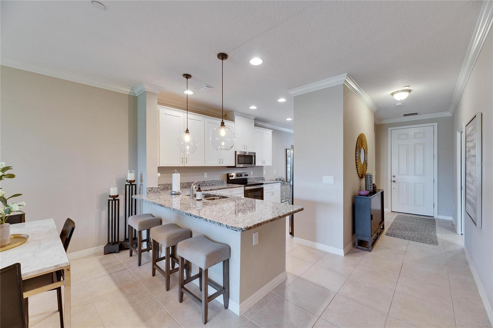 Condomínio luxuoso de 2 quartos no principal condomínio fechado de Sarasota, Esplanade no Palmer Ranch. Experimente o melhor de Sarasota que vive neste impressionante condomínio de 2 quartos e 2 banheiros, aninhado em um condomínio fechado lindamente paisagístico. Construído em 2019, esta residência de 1.526 pés quadrados possui decoração moderna, tetos altos de 9 pés e portas de bolso cuidadosamente projetadas para um fluxo sem costura. Desfrute de manhãs tranquilas em seu lanai, com vista para um lago tranquilo ou saia para o acesso direto a trilhas cênicas de caminhada. No interior, a expansiva suíte primária oferece um verdadeiro retiro, com dois armários walk-in, uma vaidade dupla, um armário de água e um espaçoso chuveiro. A cozinha gourmet e os banheiros exibem bancadas elegantes de granito, enquanto o layout de conceito aberto é perfeito para entretenimento. Uma lavanderia espaçosa acrescenta conveniência à vida cotidiana. As comodidades no estilo resort elevam essa comunidade, incluindo uma piscina de luxo com cabanas, um elegante centro comunitário, uma academia completa e um bar e restaurante no local. Os entusiastas do esporte vão adorar as oito quadras de pickleball, duas quadras de tênis e dois tribunais de bocha, enquanto os donos de animais de estimação apreciarão o parque de cães dedicado. Localizado a poucos minutos das praias mundialmente famosas de Siesta Key, vibrante centro de Sarasota e uma variedade de opções de compras, refeições e entretenimento, este condomínio oferece a melhor mistura de conforto, conveniência e charme costeiro. Não perca esta rara oportunidade - faça o seu tour privado hoje!