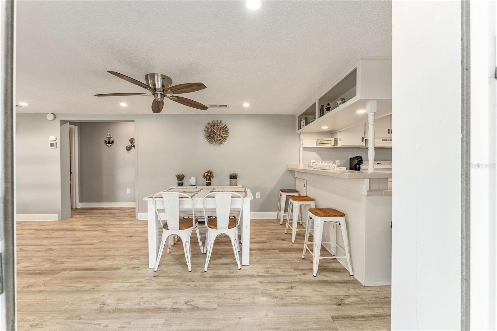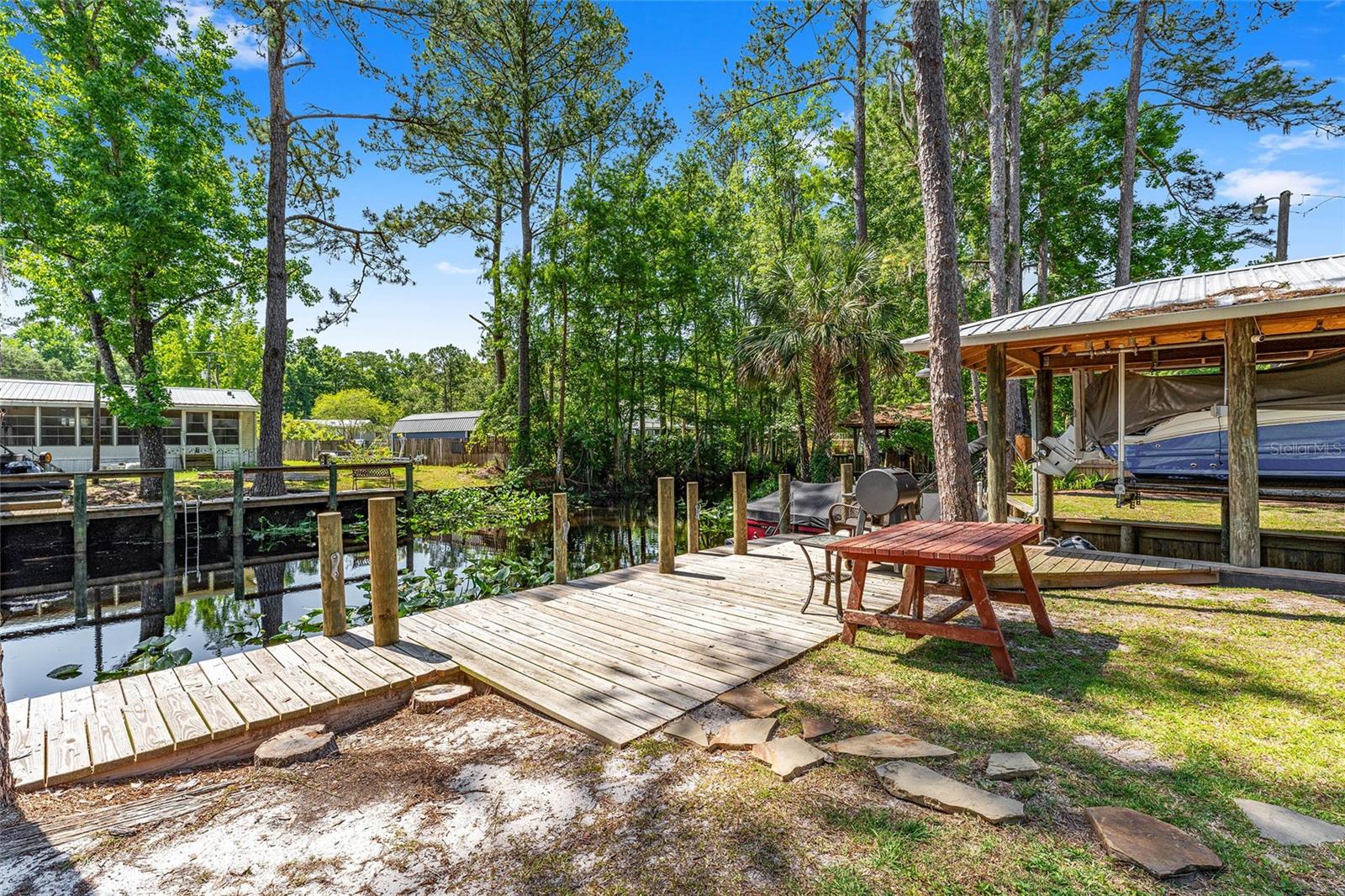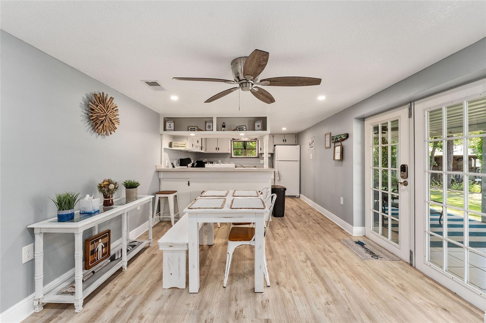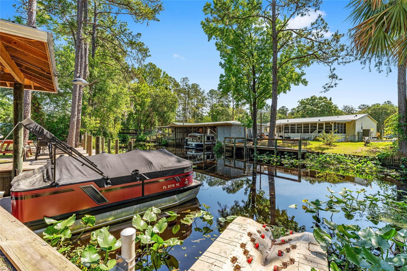 Bem-vindo ao lar em Dunns Creek! Esta casa está operando atualmente como um AirBnB bem-sucedido e gerador de renda, mas também serviria como um retiro de férias primário ou secundário desejável. Esta bela casa 3/2 oferece uma ampla varanda coberta nos fundos com vista para o riacho, além das inúmeras atualizações que incluem um novo telhado, fiação elétrica, AC, doca (2021), bomba de poço e tanque (2022) e nova pintura e andares (2023). Esta casa oferece uma combinação aberta e luminosa de área de estar e cozinha, com uma parede shiplap personalizada. Venha desfrutar da paz e serenidade que este imóvel permite. Traga seu barco, pesque no cais, você poderá até ver um ou dois peixes-boi. O vendedor está aberto a ofertas, incluindo móveis para toda a casa.