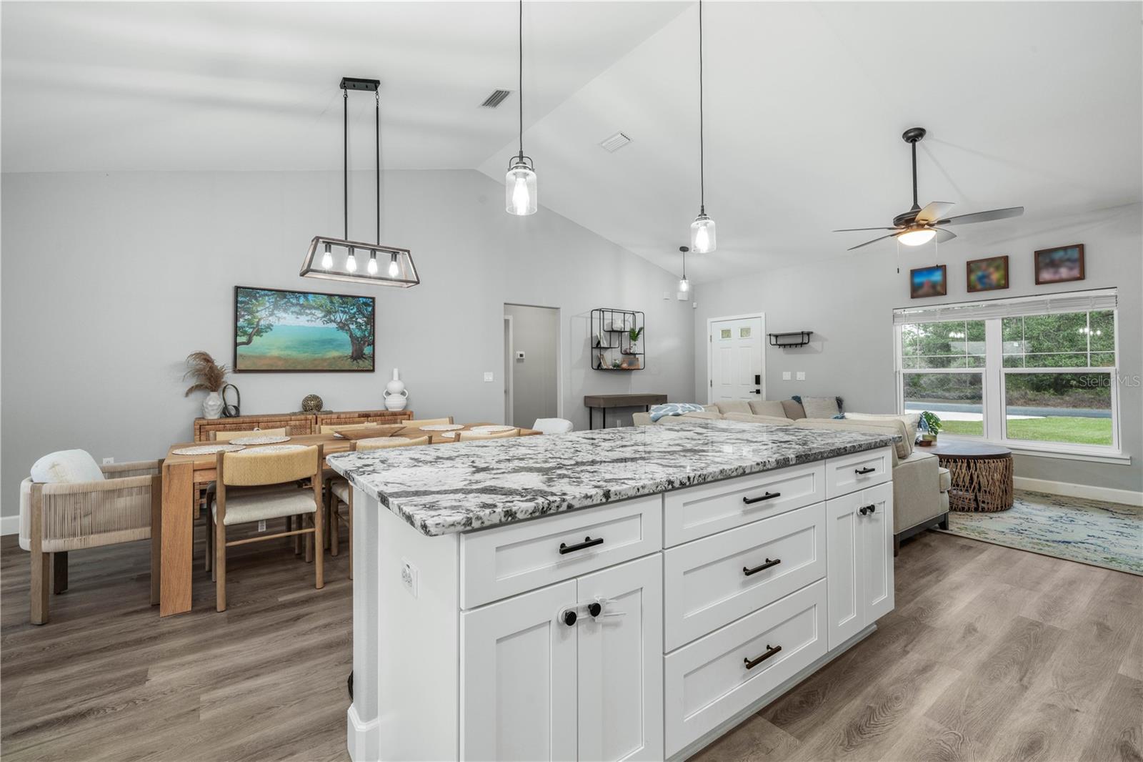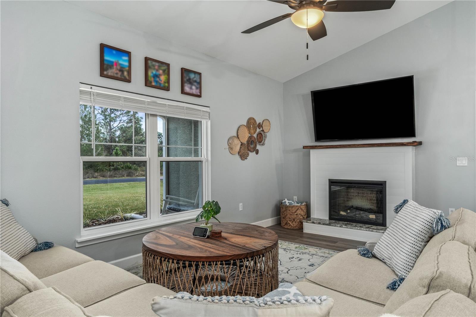 Não procure mais! Esta casa personalizada construída em 2022 mantida meticulosamente está pronta para seus novos proprietários! 3 quartos 2 banheiro em casa com tetos de 9 pés por toda parte. Entre no espaçoso piso plano aberto com um teto abobadado nos vivos, refeições e cozinha. A cozinha está perfeitamente equipada para entreter e cozinhar com uma grande ilha, granito de nível 4, armários de madeira compensada suave e despensa. Aconchegado pela lareira elétrica personalizada na sala de estar. Dias de lavanderia não são problemas para enfrentar com a lavanderia em casa! Quarto principal com toques personalizados como um teto de bandeja, caminhar no armário e passear de tamanho grande no chuveiro com gabinete de vidro completo! Entre na bela varanda, com vistas amplas do quintal. Desfrute de privacidade adicional à medida que a casa apoia a propriedade de propriedade de Sun N Lake. A varanda dos fundos está equipada com uma cozinha ao ar livre, perfeita para passar dias de desfrutando do tempo da Flórida. Não perca a chance de ver esta jóia!