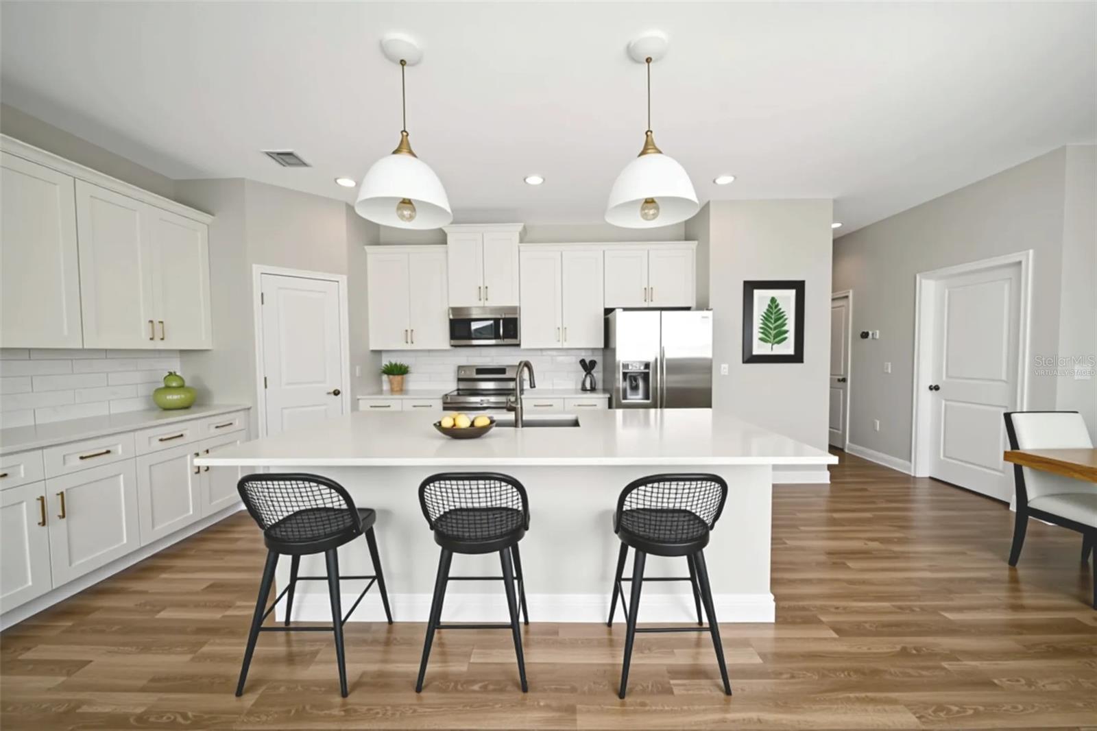 ** Redução de preços mais vendedores Oferecendo crédito $ para o custo de fechamento do comprador para fechar ** Bem-vindo a esta casa excepcional de 4 quartos e três quartos com uma espaçosa garagem de 3 carros, perfeitamente situada na altamente cobiçada comunidade Sun N Lake. Experimente o melhor da Flórida que vive com acesso a um campo de golfe de 36 buracos de classe mundial. Esta propriedade oferece um estilo de vida incomparável, com acesso a comodidades de estilo de primeira linha, incluindo quadras de tênis e pickleball, piscina e um clube vibrante. This home boasts impressive 9'4" ceilings that create an open and airy environment, complemented by waterproof and scratch-resistant LVP flooring throughout the common areas. Step into the heart of the home—the kitchen—featuring an entertaining island, Stunning quartz countertops, and all stainless-steel Samsung appliances, including a convenient pantry. The indoor laundry room is equipped with a new washer and dryer, ensuring added Conveniência. Compartilhando um salão de banheiro completo.