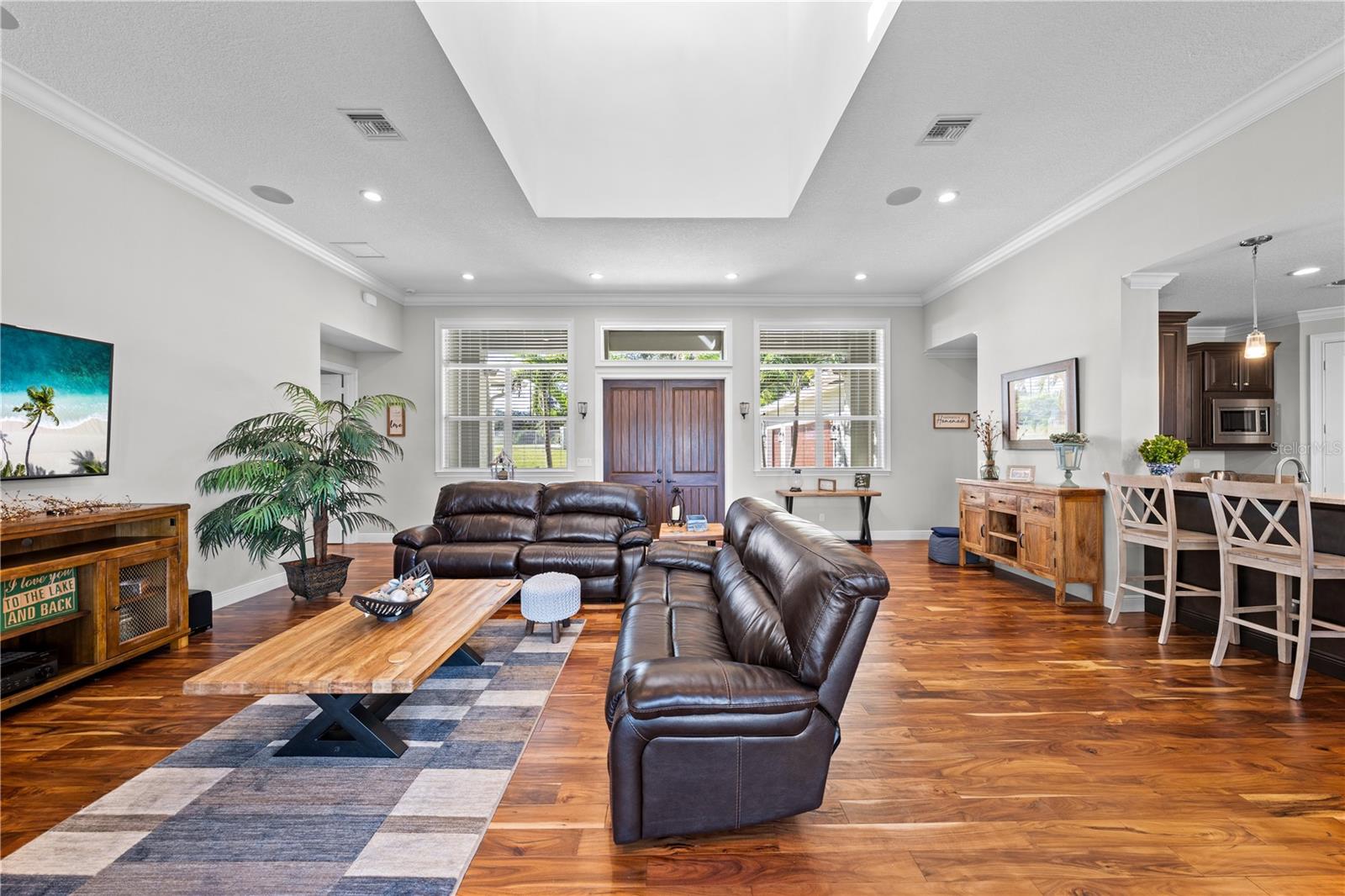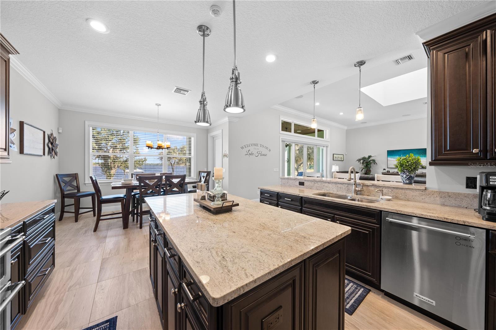Casa deslumbrante à beira do lago totalmente mobiliada com garagem para 3 carros e um lote adicional, localizada no condomínio fechado privado de The Bluffs em Red Beach Lake. Esta propriedade excepcional fica em uma área residencial de meio acre. Uma entrada fechada e um paisagismo exuberante dão as boas-vindas a esta moderna residência de 3 quartos e 2 banheiros com tetos altos, piso de madeira e belas vistas para o lago. A espaçosa sala de estar se abre através de portas duplas para uma varanda coberta à beira do lago com teto macho e fêmea, ideal para entretenimento ou relaxamento. A cozinha gourmet apresenta eletrodomésticos de aço inoxidável KitchenAid, bancadas de granito, backsplash de azulejos, ilha grande, assentos para café da manhã, iluminação sob o armário, armários deslizantes e uma grande despensa, com vista para o lago tanto da cozinha quanto da área de jantar. A suíte principal privativa oferece acesso à varanda, closets duplos e banheiro estilo spa com pia dupla de granito, banheira de imersão, box amplo com box de vidro, vaso sanitário e armazenamento de roupa de cama. Dois quartos adicionais e um banheiro de hóspedes oferecem espaço para a família, convidados ou um escritório. A lavanderia de grandes dimensões inclui armários, balcões de granito, pia, lavadora e secadora. A garagem para 3 carros possui piso em epóxi, acesso ao sótão, armários Gladiator e bancada de trabalho. Os destaques ao ar livre incluem um quintal parcialmente cercado, pátio, chuveiro ao ar livre, fogueira e um cais privado e casa de barcos com elevador para barcos, água e energia elétrica. Os recursos adicionais incluem janelas de impacto, isolamento de espuma em spray, fiação do gerador, sancas, som surround, portas de núcleo sólido, iluminação paisagística e aspiração central. Localizado na charmosa Sebring, recentemente apresentado na HGTV. HOA mantém áreas comuns e cercas.