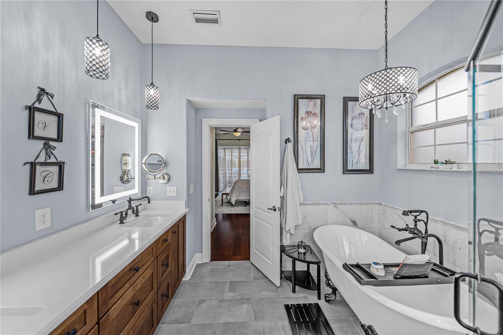 Descubra um retiro raro onde sofisticação, conforto e versatilidade se unem em uma propriedade lindamente projetada. Esta residência excepcional de três quartos e dois banheiros com escritório dedicado, academia doméstica, home theater completo e casa com piscina independente oferece uma experiência de vida intransigente com curadoria de relaxamento e entretenimento. Cuidadosamente atualizada e mantida, a propriedade combina acabamentos interiores refinados com comodidades externas premium, tornando-a um santuário ideal para a vida moderna. Dentro da casa principal, piso de bambu quente, marcenaria personalizada e sancas complementam uma ampla planta aberta projetada para fluxo sem esforço. O coração da casa é a cozinha inspirada no chef, onde bancadas de granito, uma ilha enorme com assentos envolventes e uma geladeira grande para bebidas e vinhos criam um ambiente convidativo para hospedagem e conveniência do dia a dia. Um micro-ondas embutido e um forno de convecção aumentam o apelo culinário, enquanto as linhas de visão abertas para a sala familiar tornam este um verdadeiro espaço de reunião. A sala familiar adjacente gira em torno de uma lareira a gás emoldurada por estantes embutidas personalizadas, oferecendo um ambiente aconchegante e sofisticado para noites de cinema, celebrações ou noites tranquilas em casa. A poucos passos de distância, um home office e uma academia doméstica oferecem a flexibilidade e a privacidade necessárias para o estilo de vida atual, garantindo que todas as necessidades sejam atendidas. A suíte principal é um retiro luxuoso com armários duplos e um banheiro verdadeiramente tipo spa. Delicie-se com a elegância de uma banheira de imersão clássica, pias duplas e um chuveiro com box de vidro equipado com um sistema programável Moen, criando uma experiência de banho personalizada e elevada. Dois quartos adicionais estão bem equipados, cada um oferecendo espaço generoso, e um com closet para maior comodidade. Para entretenimento incomparável, a casa possui uma sala de teatro totalmente equipada, localizada ao lado da área de estar. Com assentos de teatro, projetor de alta definição, som surround e banheiro privativo, este espaço envolvente rivaliza com o cinema e eleva cada noite de cinema. A experiência de vida ao ar livre é igualmente impressionante. O amplo deck da piscina possui várias áreas de estar e de descanso, uma cozinha externa completa e uma piscina aquecida de água salgada e spa. Todo o sistema de salinização e aquecedor da piscina foram substituídos recentemente, garantindo um funcionamento eficiente e diversão durante todo o ano. Além da piscina, uma notável garagem multiusos individual oferece uma flexibilidade extraordinária. Com altura livre de 14 pés, está totalmente equipado para armazenamento de trailers, armazenamento de barcos ou pode acomodar confortavelmente até seis veículos. Ideal como oficina, estúdio ou até mesmo um negócio doméstico, as possibilidades são infinitas – especialmente sem restrições de HOA. Completando a propriedade está uma casa com piscina com entrada privada, lindamente projetada, perfeita para vida multigeracional, acomodação de hóspedes ou renda de aluguel. Este retiro em estilo estúdio inclui cozinha completa, closet, banheiro completo e um quarto adicional atualmente decorado como uma combinação de sala de estar/escritório, proporcionando conforto e independência em um espaço bem equipado. Com seus interiores elegantes, comodidades em estilo resort, flexibilidade incomparável e localização privilegiada em Tampa, esta propriedade representa uma rara oportunidade de desfrutar de um estilo de vida verdadeiramente elevado - tudo dentro de seu próprio complexo privado.