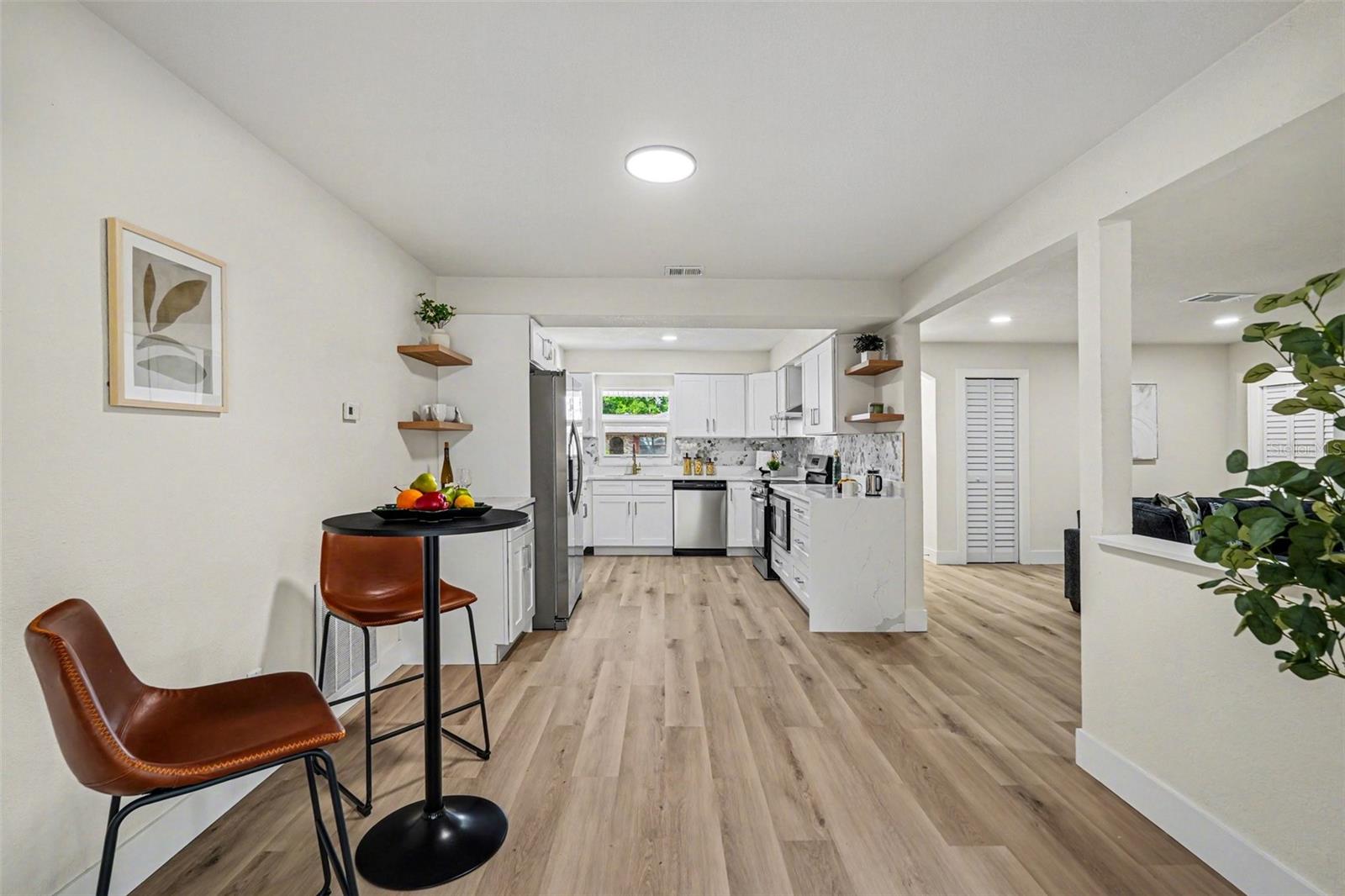 Linda casa de esquina localizada na tranquila e bem estabelecida comunidade de Shangri La em Seffner, a poucos minutos das principais rodovias, lojas e conveniências do dia a dia. Esta casa de 3 quartos e 2 banheiros oferece um toque moderno e fresco com acabamentos elegantes, detalhes de qualidade e espaços convidativos por toda parte. A cozinha se destaca com belos armários, elementos de design elegantes e elegantes bancadas de quartzo Calacatta que agregam estilo e funcionalidade. Ambas as casas de banho apresentam acabamentos elegantes e uma estética refinada e de inspiração luxuosa, concebida para oferecer conforto e estilo. A sala principal oferece calor e carácter com uma bela lareira, tornando-a no local perfeito para relaxar ou reunir-se com a família e amigos. Uma das características de destaque da casa é a espaçosa sala Florida repleta de luz natural a partir de suas grandes janelas, oferecendo infinitas possibilidades como segunda sala de estar, sala de família, sala de jogos, escritório ou espaço flexível. Saia para uma grande varanda com muito espaço para móveis de jardim, noites relaxantes e churrascos de fim de semana. O quintal privado é cercado por vegetação madura e oferece um ambiente externo tranquilo para desfrutar da vida na Flórida o ano todo. Pintura interna e externa fresca, bela luz natural e toques de design atenciosos tornam esta casa uma oportunidade verdadeiramente especial em um local desejável em Seffner. Agende sua exibição privada hoje mesmo!! Casas como esta não aparecem com frequência!!