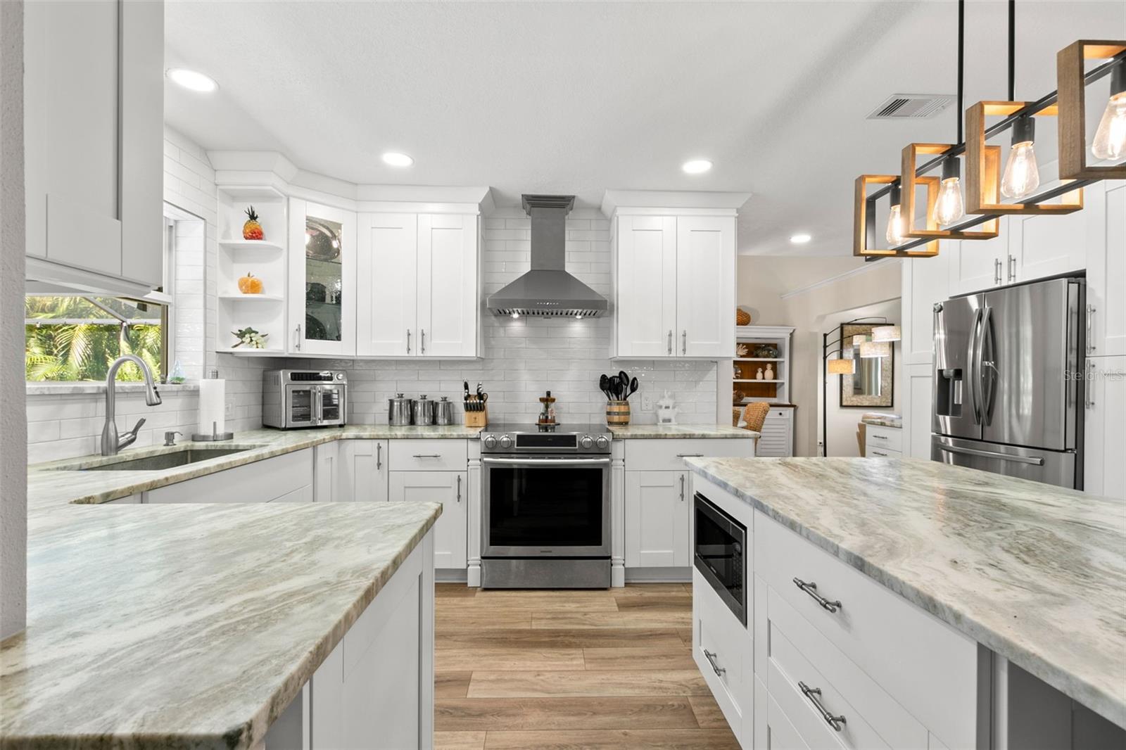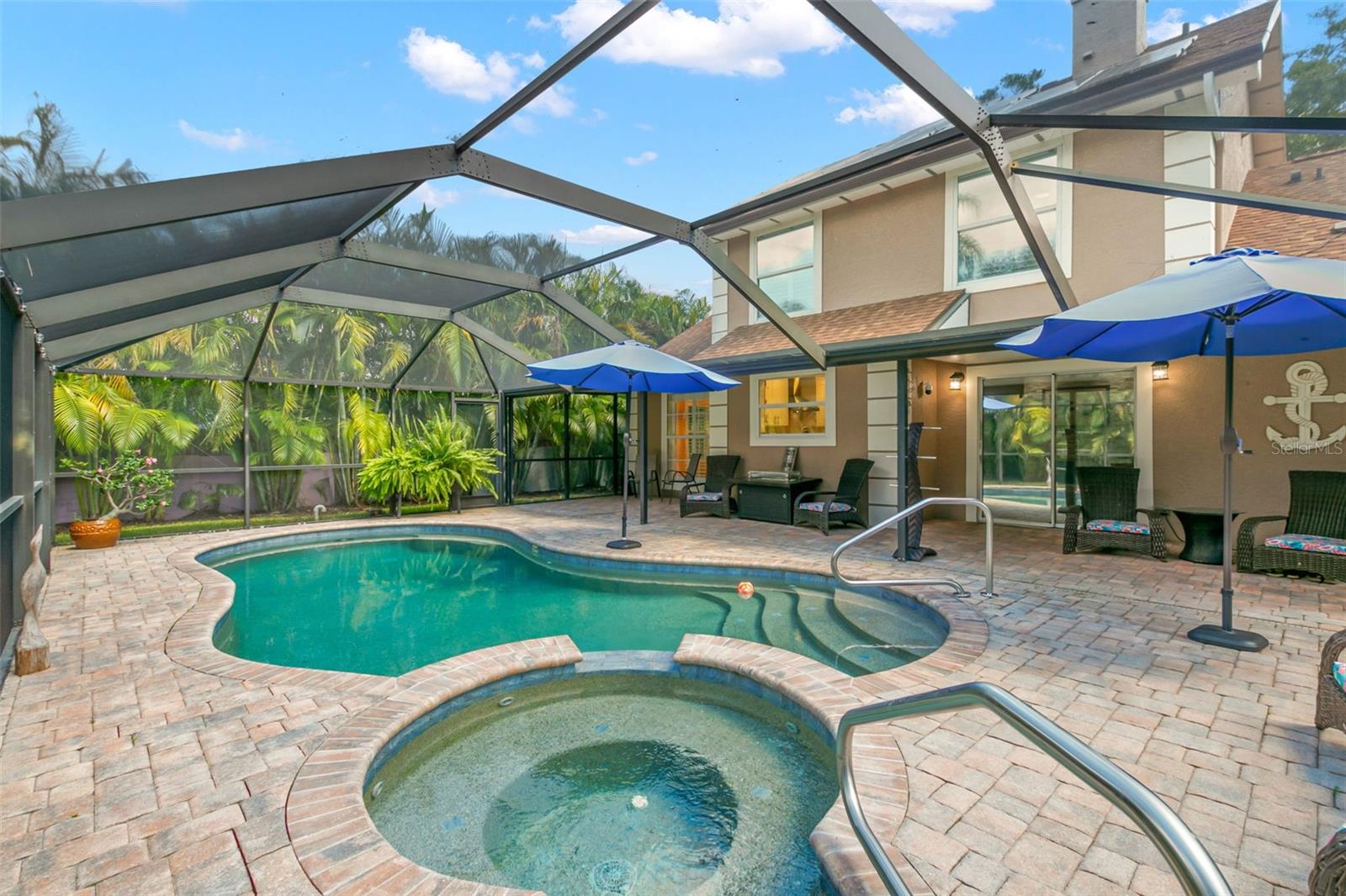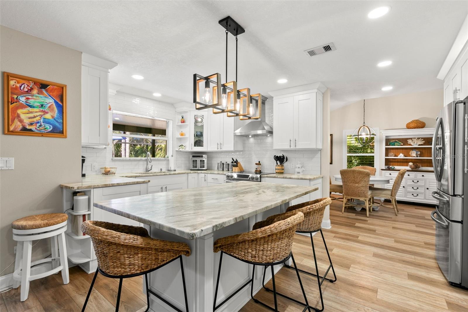 Esta casa é alta e seca em uma zona de inundação! Linda casa atualizada e bem conservada em área altamente desejável a apenas um passeio de bicicleta da praia. Esses recursos domésticos incluem piscina com derramamento sobre spa, acabamento em piscina tecnológica Pebble, deck da piscina com gaiola de pássaro para manter todas as criaturas fora. Novos armários de cozinha personalizados que são de três quartos de madeira real e belas bancadas de granito em couro. Telhado novo com painéis solares que são de propriedade e não arrendados. Belo paisagismo exuberante cercam toda a propriedade, incluindo sua enorme entrada de automóveis em círculo de estilo imobiliário.