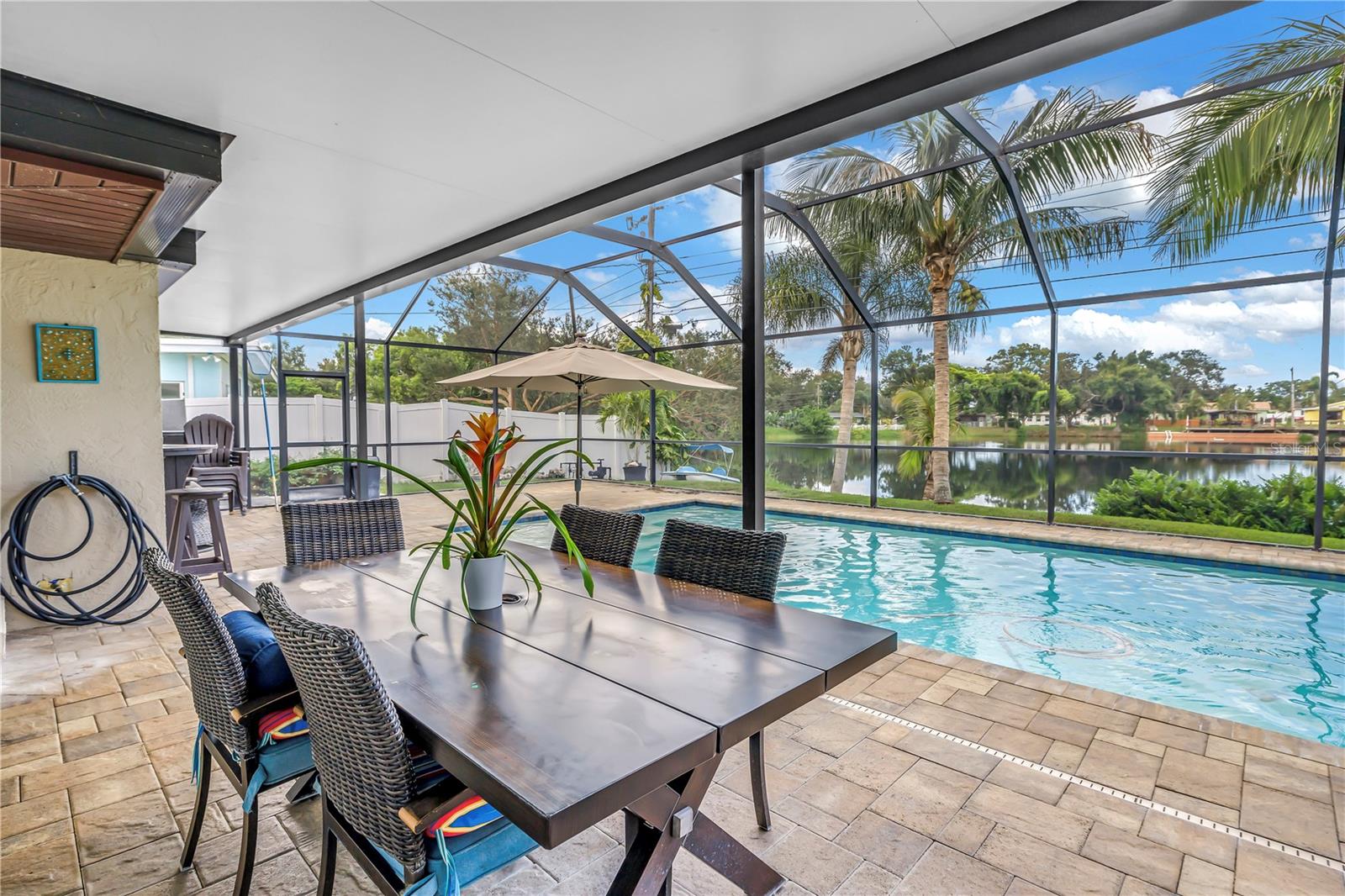 Sua piscina seminole à beira -mar aguarda você !!! Propriedade dos direitos da água do Lago Privado! Agora é a hora de possuir um pedaço do verdadeiro paraíso da Flórida: seu próprio oásis privado tem tudo, incluindo uma piscina cintilante construída em 2016 com o recinto exibido com vistas e sensação fantásticos. Novo telhado em 2021, novo paisagismo em 2025. Esta linda planta dividida inclui 3 quartos dois banheiros e sala de bônus ou escritório grande, garagem para dois carros e é dividida para escolas de seminole. Armários personalizados e moldagem por coroa. Aparelhos de aço inoxidável mais recentes 2021. O piso atualizado inclui pisos de madeira e ladrilhos de cerâmica neutra. Minutos para as praias, interestadual e centro de São Petersburgo. Não houve danos /inundações de furacões com as 2 tempestades em 2024, não é necessário seguro contra inundações. Fabuloso espaço ao ar livre para entretenimento, quarto principal e banheiro, jacuzzi e todas as plantas em vasos não transmitem.