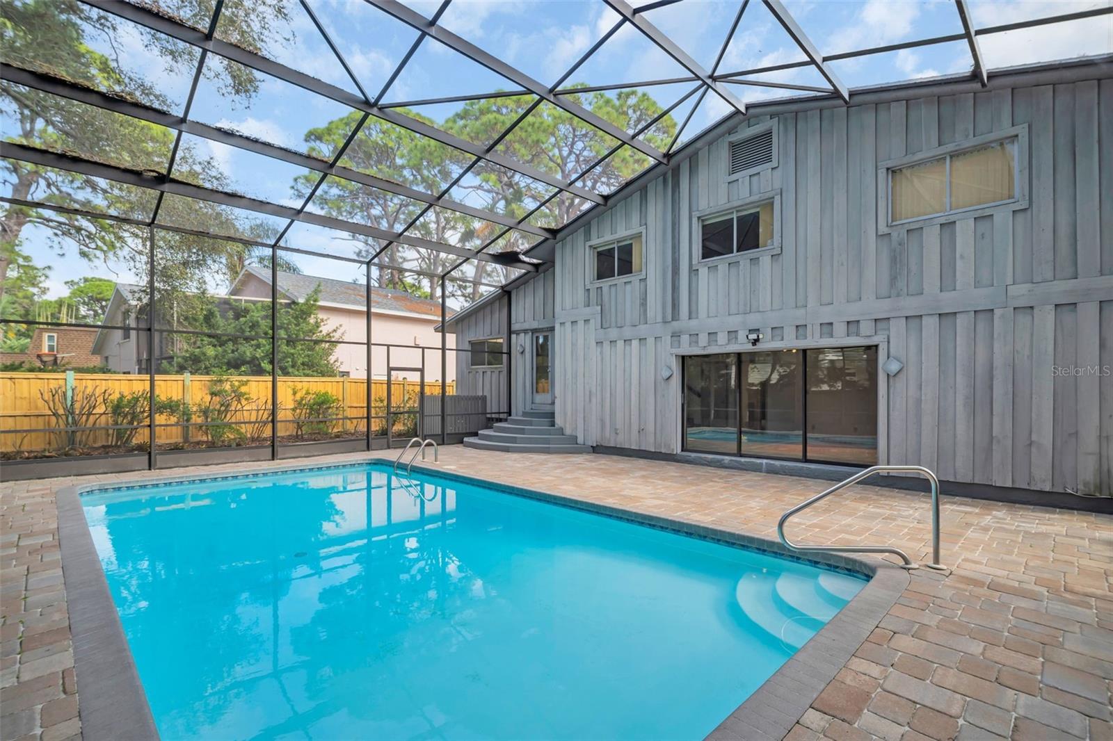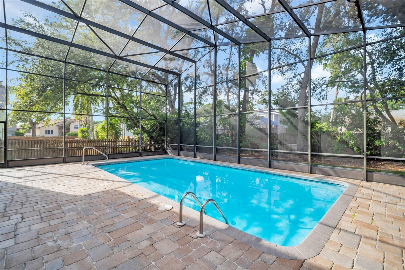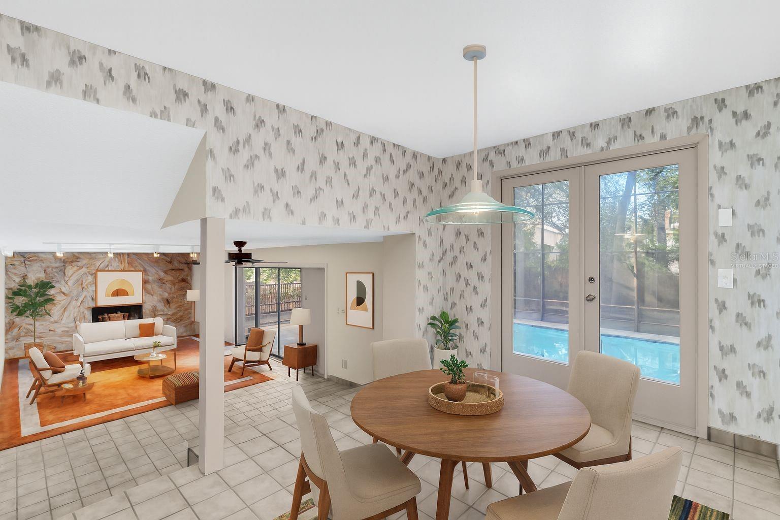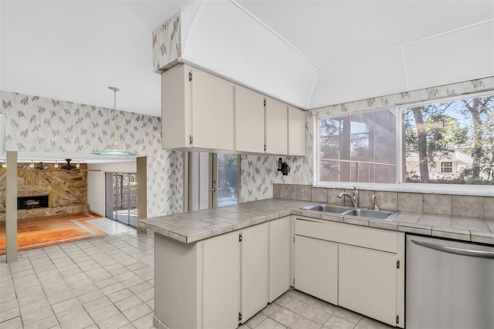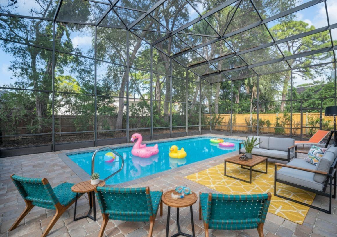 Uma ou mais fotos foram virtualmente encenadas. Propriedade e amada por uma única família há mais de 50 anos, esta obra-prima Seminole em estilo de meados do século está no mercado pela primeira vez desde que foi construída. Três quartos, 3 banheiros completos, um armário principal incrível, esta casa de 2.780 pés quadrados está repleta de elegância e personalidade. Você entra na casa de dois andares em um hall de entrada gigante e depois sobe para uma sala de estar e jantar com teto alto e janelas enormes com vista para magníficas árvores maduras e paisagismo. A cozinha bem equipada possui eletrodomésticos Frigidaire Gallery Stainless, uma barra de café da manhã e bancadas de azulejos. O nível inferior tem uma enorme sala familiar completa com lareira de pedra, perfeita para dias de jogos, noites de cinema e entretenimento familiar. Saia para a varanda pavimentada com uma enorme piscina subterrânea, protegida por um recinto de dois andares. No andar de cima estão três quartos de tamanho generoso, incluindo uma suíte principal e um segundo banheiro para facilitar a vida familiar. Precisa de espaço extra para suas regalias? O armário principal do tamanho de uma sapataria espera por você e seu inventário. Localizada em um beco sem saída entre um paisagismo maduro, a casa fica na altamente desejável seção Whispering Pines Forest de Seminole e fica perto de escolas, lojas e praias. TELHADO 2018 / HVAC (2 unidades) 2023 / AQUECEDOR DE ÁGUA 2018