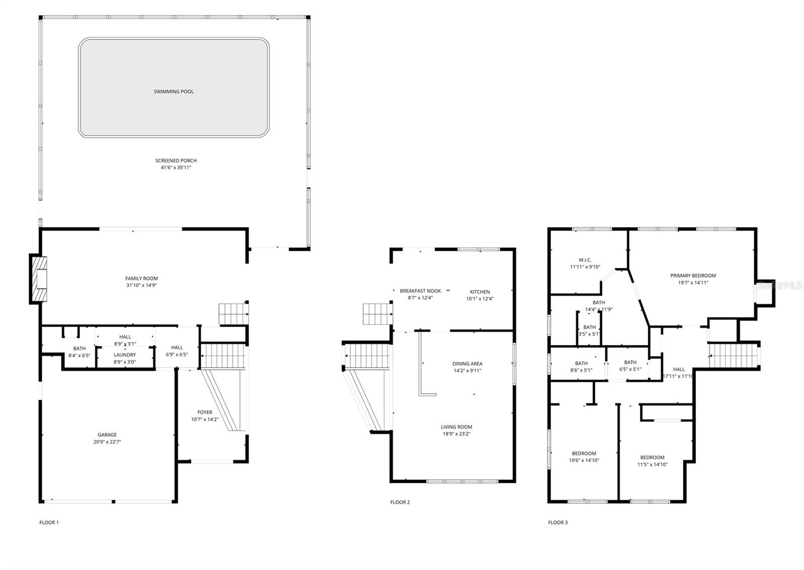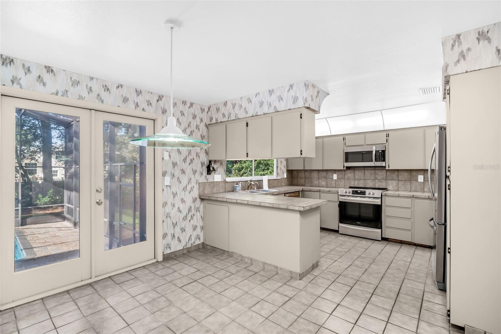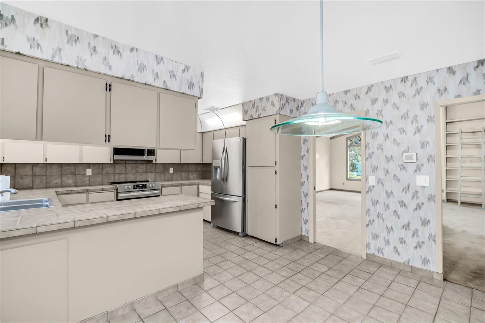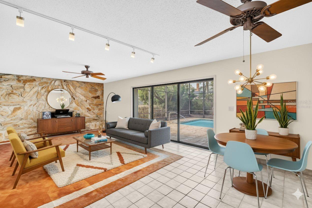 Uma ou mais fotos foram virtualmente encenadas. Propriedade e amada por uma única família há mais de 50 anos, esta obra-prima Seminole em estilo de meados do século está no mercado pela primeira vez desde que foi construída. Três quartos, 3 banheiros completos, um armário principal incrível, esta casa de 2.780 pés quadrados está repleta de elegância e personalidade. Você entra na casa de dois andares em um hall de entrada gigante e depois sobe para uma sala de estar e jantar com teto alto e janelas enormes com vista para magníficas árvores maduras e paisagismo. A cozinha bem equipada possui eletrodomésticos Frigidaire Gallery Stainless, uma barra de café da manhã e bancadas de azulejos. O nível inferior tem uma enorme sala familiar completa com lareira de pedra, perfeita para dias de jogos, noites de cinema e entretenimento familiar. Saia para a varanda pavimentada com uma enorme piscina subterrânea, protegida por um recinto de dois andares. No andar de cima estão três quartos de tamanho generoso, incluindo uma suíte principal e um segundo banheiro para facilitar a vida familiar. Precisa de espaço extra para suas regalias? O armário principal do tamanho de uma sapataria espera por você e seu inventário. Localizada em um beco sem saída entre um paisagismo maduro, a casa fica na altamente desejável seção Whispering Pines Forest de Seminole e fica perto de escolas, lojas e praias. TELHADO 2018 / HVAC (2 unidades) 2023 / AQUECEDOR DE ÁGUA 2018
