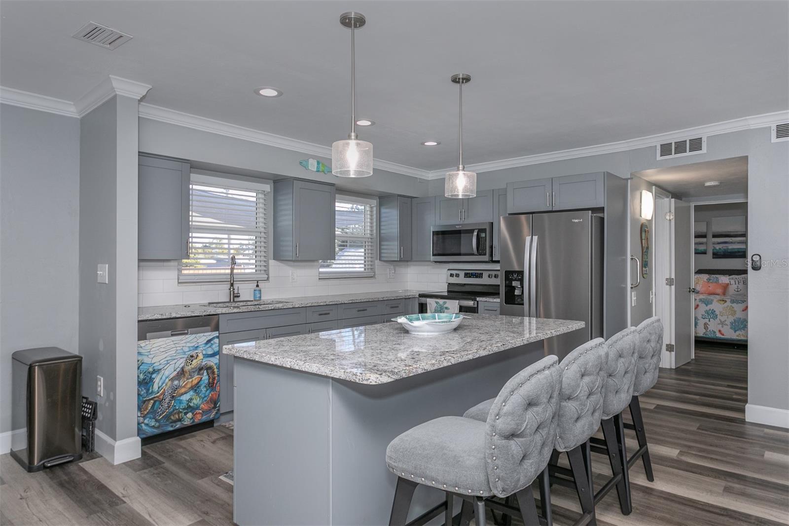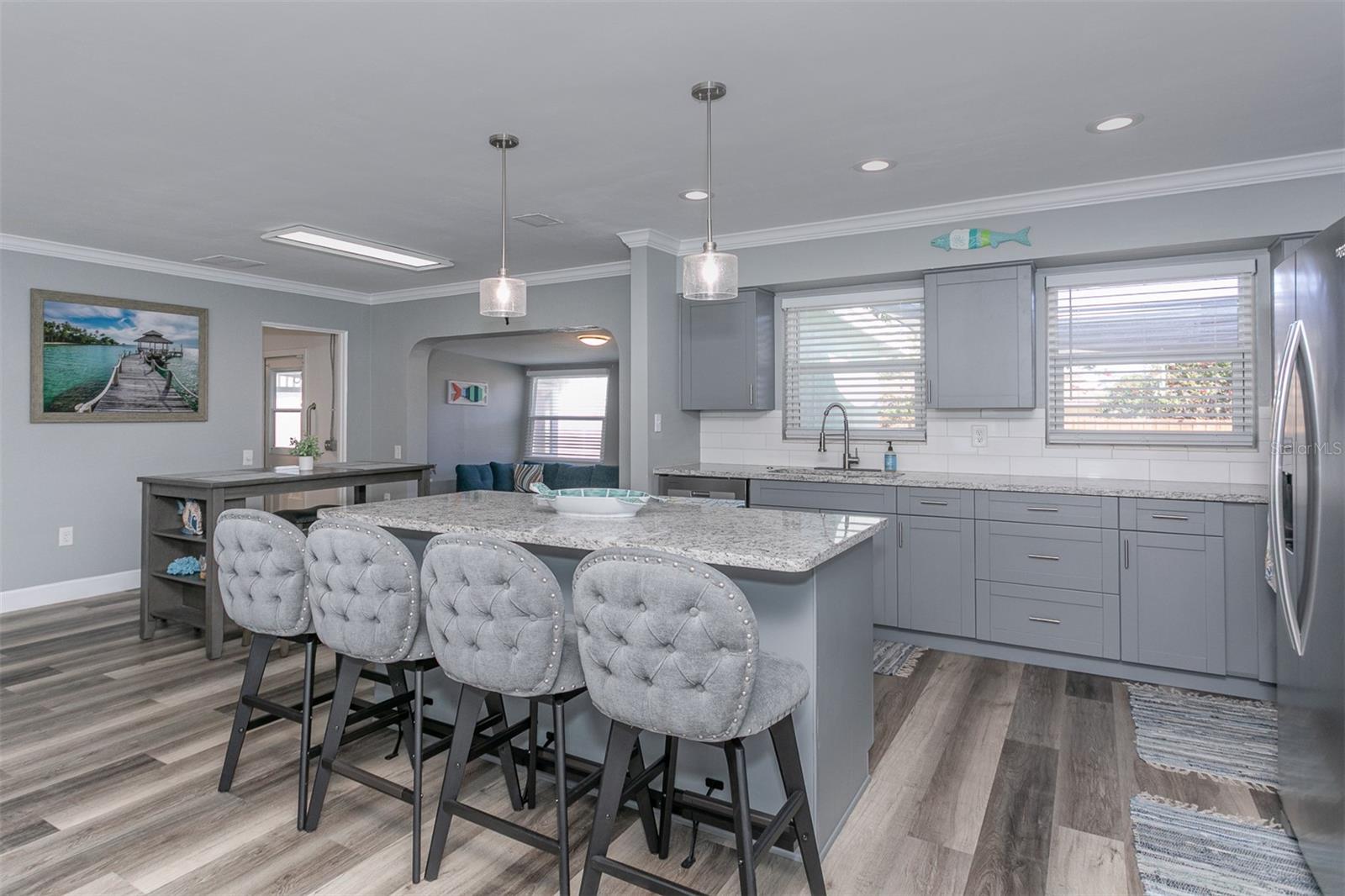 Bem-vindo ao "Paradise Found", localizado no coração de Seminole. Zona alta e seca sem inundação. Esta casa lindamente atualizada de dois quartos e dois banheiros está em perfeitas condições, pronta para morar e pode ser vendida completamente mobiliada, tornando-a ideal como um aluguel de férias de curto prazo pronto para uso ou uma casa de repouso perfeita. A casa foi completamente atualizada, com armários de cozinha de madeira estilo shaker cinza, bancadas de granito com uma ilha central e um backsplash clássico de azulejos de metrô. Desfrute de janelas, persianas e portas atualizadas, além de iluminação pendente e embutida por toda parte. A cozinha está equipada com um novo pacote de eletrodomésticos Whirlpool em inox. As atualizações adicionais incluem novos ventiladores de teto com luzes em todos os quartos, luxuoso piso de madeira vinílica, um novo sistema de amaciante de água e um sistema central de aquecimento e ar Trane 2019. O telhado de telha tridimensional arquitetônico de 2020 acrescenta tranquilidade. Um sistema de irrigação totalmente novo atende o gramado e o jardim, e a garagem é climatizada. Não há tetos de pipoca e ambos os banheiros foram totalmente atualizados. A vida ao ar livre é um prazer com uma varanda protegida, quintal cercado e pavimentação contínua ao redor da casa, perfeita para entretenimento. Esta localização privilegiada coloca você a poucos passos da Pinellas Trail, de 75 quilômetros, das quadras de tênis Seminole e do Seminole City Park. O novo Seminole City Center – com lojas, restaurantes, cinema e entretenimento ao ar livre – fica a poucos minutos de distância. Você também está perto do Boca Ciega Millennium Park, uma impressionante reserva natural de 186 acres, e a poucos minutos das praias de areia branca do Golfo do México. Plante os pés na areia e comece a viver o estilo de vida da Flórida.