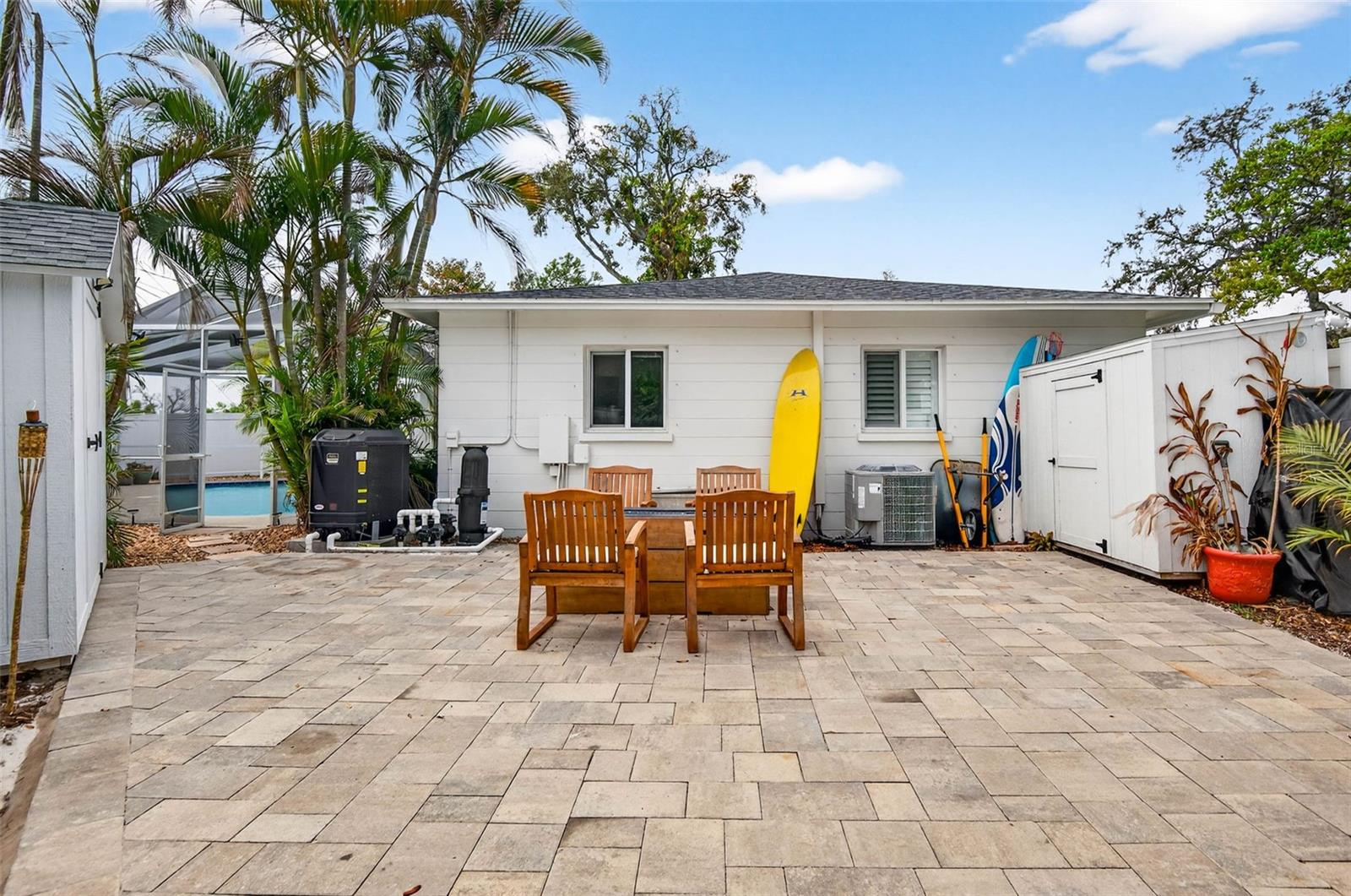 Esta casa de 3 quartos e 2 banheiros, pronta para morar, possui uma planta dividida e está localizada em um espaçoso terreno de esquina. As principais características incluem um quintal totalmente cercado, uma garagem e uma piscina aquecida em gaiola, além de irrigação de um poço. Com potencial de aluguel de curto e longo prazo, a propriedade está convenientemente perto da Trilha Pinellas, lojas, restaurantes e do Tyrone Mall. O telhado foi substituído em 2023 e há amplo estacionamento para trailers ou barcos. Além disso, fica a apenas 5 km da Praia da Madeira e está localizado numa zona sem inundações. Agente é proprietário.