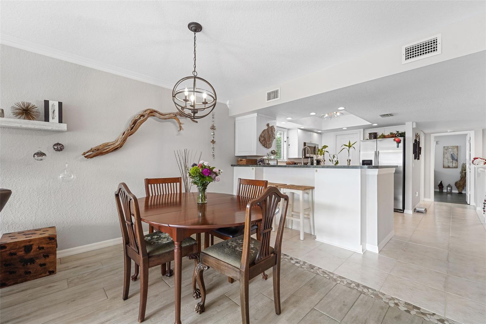 Esta casa mobiliada é uma vitória em todos os aspectos. É uma cobiçada unidade de canto localizada em uma área tranquila comunidade à beira-mar escondida em Seminole não incorporada. Oferece mais de 2.200 metros quadrados pés de área de estar com 3 quartos com acesso aos seus próprios banheiros privativos completos. Um quarto flexível a área de estar pode servir como um 4º quarto ou um lindo estúdio cheio de luz com seu próprio 4º banheiro completo e uma smart tv gigante de 80 polegadas. A luz natural destaca-se, com janelas e corrediças por toda parte a casa trazendo uma sensação luminosa e aberta que faz com que o espaço pareça ainda maior e mais convidativo. O layout oferece flexibilidade para vida em tempo integral, hóspedes, necessidades multigeracionais ou um configuração de trabalho em casa. Esta propriedade traz verdadeira tranquilidade com as atualizações que os compradores mais desejam. Está em uma inundação X zona e não inundou durante as tempestades recentes. As principais melhorias incluem um novo telhado, novo HVAC, carpete novo nos quartos do andar de cima, piso de cerâmica novo na sala principal, novo lavadora e secadora, nova pintura interna e novos ventiladores e acessórios de teto. A calha do filtro de folhas sistema na parte traseira da casa agrega ainda mais valor de baixa manutenção e é vendido totalmente mobiliado dá ao próximo proprietário uma rara opção pronta para morar, sem o estresse usual. O deck composto envolvente no primeiro andar é um paraíso para observadores de pássaros e adiciona um enorme bônus para atividades diárias e relaxamento, proporcionando o tipo de espaço ao ar livre que realmente se estende a área de estar. O sistema repelente de mosquitos Thermacell LIV instalado torna o deck agradável o ano todo. Caiaques e paddleboarders ávidos podem usar o lançamento manual do caiaque para acessam a hidrovia intracostal e os banhistas ficam a apenas 10 minutos de bicicleta do Indian Rocks Beach e dirija até a área de estacionamento da Pinellas Trail. A pesca no paredão e nas docas é uma ótima maneira de passar uma tarde. Se você deseja acesso fácil para desfrutar da vida ao ar livre ou espaço para relaxar, se divertir ou simplesmente aproveitar o clima da Flórida, esta configuração oferece. As comodidades da comunidade tornam esta ainda mais forte. A única entrada e saída para o comunidade torna este um espaço seguro e divertido para as crianças e o HOA cobre água, esgoto, lixo, cabos, e internet de alta velocidade, além de manutenção do belo paisagismo maduro, barco docas e acesso à piscina aquecida durante todo o ano. Esta é uma rara chance de conseguir espaço, atualizações, propriedade de baixo estresse e uma excelente localização, tudo em um.