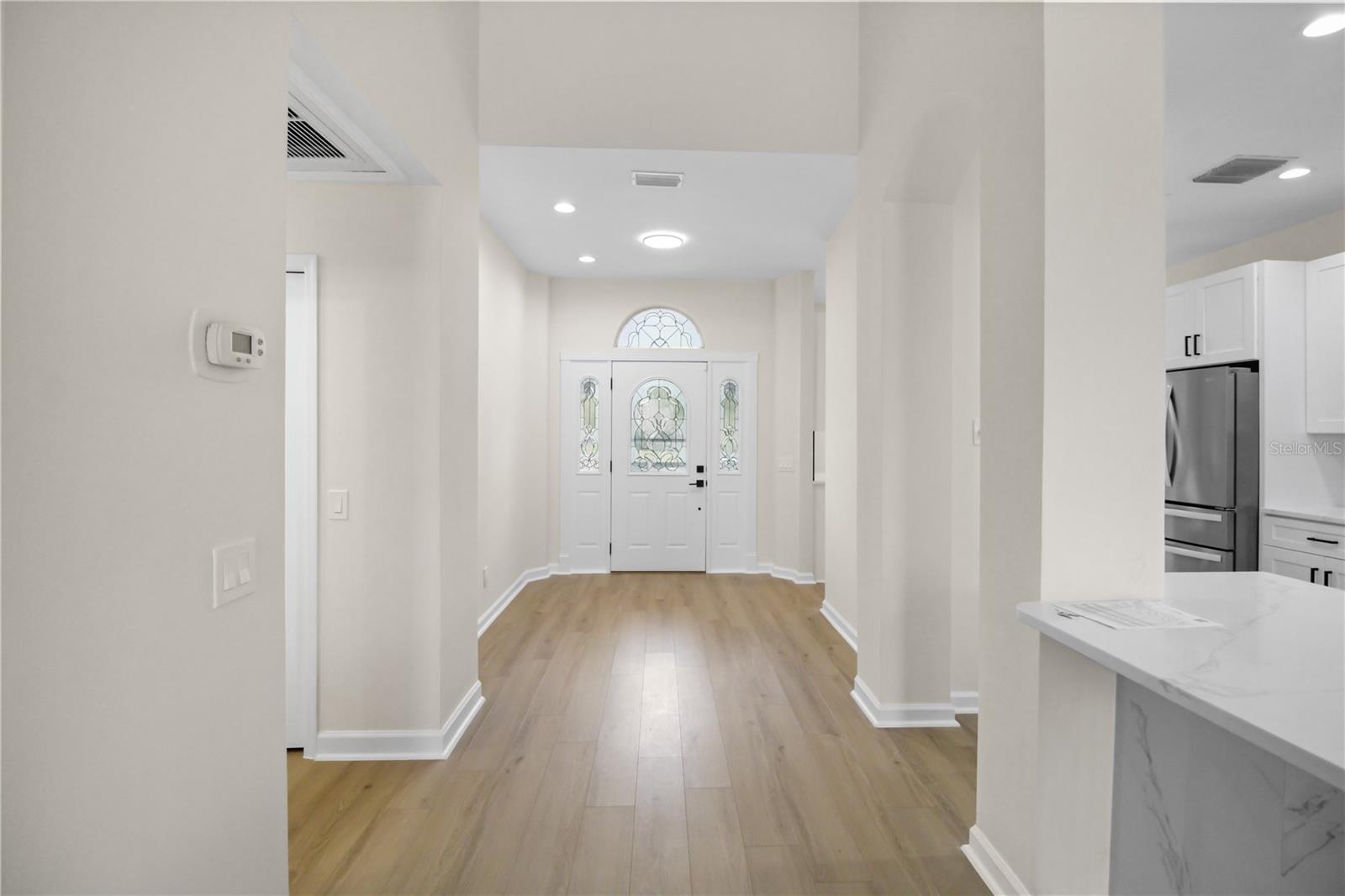 Bem-vindo a esta casa com piscina de 3 quartos, 2,5 banheiros e SALA DE BÔNUS ** totalmente renovada e pronta para morar, perfeitamente situada em um beco sem saída tranquilo em uma comunidade altamente desejável e bem conservada com segurança 24 horas. Chamando todos os AMANTES DO GOLFE - esta casa oferece vistas deslumbrantes do campo de golfe no seu quintal, criando um ambiente tranquilo e panorâmico para desfrutar todos os dias. Entre para encontrar pisos de pranchas de vinil de luxo totalmente novos e um interior lindamente atualizado, projetado para conforto e estilo. A cozinha moderna possui novos armários com fechamento suave, bancadas atualizadas e um fogão a gás, tornando-a perfeita para cozinhar todos os dias ou receber convidados. A área de estar é destacada por uma bela lareira elétrica, agregando calor e personalidade à casa. No andar de cima, você encontrará uma sala bônus versátil que pode facilmente servir como sala de família, sala de mídia, home office, estúdio ou até mesmo ser ***convertida em um quarto quarto***. Saia para a varanda do segundo andar, onde você pode desfrutar de vistas relaxantes da piscina e do campo de golfe. O oásis privado no quintal é perfeito para entretenimento, com piscina fechada e churrasqueira ao ar livre, ideal para receber amigos e familiares. Localizada a poucos minutos de supermercados, lojas locais, restaurantes, parques e cafés, esta casa combina privacidade, conveniência e vida em estilo resort. Não perca a oportunidade de possuir esta casa com campo de golfe lindamente atualizada e com piscina em um dos condomínios mais procurados da região.