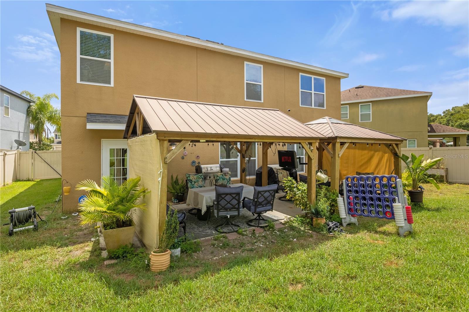 ELEGANTE E ESPAÇOSO Bem-vindo ao 34408 Alicante Ct, no sereno e procurado condomínio fechado de Sorrento Springs. Esta deslumbrante casa de 4 quartos e 2,5 banheiros oferece mais de 2.800 pés quadrados de vida elegante, perfeita para quem deseja conforto e espaço. A partir do momento em que você entra na garagem, a atratividade desta casa de dois andares bem conservada atrai você com seu charmoso exterior com detalhes em pedra e paisagismo bem cuidado. Entre para descobrir um layout aberto e arejado projetado para a vida moderna. A sala de estar é luminosa e acolhedora, com grandes janelas que permitem a entrada de luz natural, criando um ambiente acolhedor e convidativo, perfeito para noites divertidas ou tranquilas em família. A cozinha é uma delícia culinária com armários elegantes, backsplash de pedra e uma ilha espaçosa que funciona como balcão de café da manhã. Esteja você preparando um banquete ou saboreando o café da manhã, este espaço inspirará a criatividade. No andar de cima, uma versátil sala bônus oferece ainda mais espaço – perfeita para noites de cinema, um escritório em casa ou um retiro tranquilo para relaxar e se divertir. A suíte principal serve como um retiro tranquilo, oferecendo amplo espaço, closet e banheiro privativo com banheira de imersão, ideal para relaxar após um longo dia. Os três quartos adicionais são espaçosos e partilham uma casa de banho, garantindo que cada um tenha o seu próprio espaço. Uma das características mais exclusivas desta casa é o quintal suavemente inclinado, que oferece privacidade e diversão sem fim. A inclinação adiciona um toque especial de charme, tornando-a perfeita para eventos lúdicos ao ar livre, como aventuras familiares em tardes ensolaradas. Esteja você organizando um churrasco de verão ou apenas aproveitando o ar livre, o layout natural do quintal faz com que cada reunião pareça um evento. O pátio coberto com pérgula é ideal para relaxar, enquanto a encosta gramada se transforma em um local divertido para as crianças brincarem e aproveitarem o ar puro. Morar em Sorrento Springs significa que você terá acesso a comodidades fantásticas, como piscina estilo resort, academia, quadras de tênis e campo de golfe Eagle Dunes. Rodeado por uma vegetação exuberante e afastado da agitação, este condomínio oferece o equilíbrio perfeito entre privacidade e atividade. Não perca a oportunidade de personalizar esta linda casa. Agende sua exibição hoje e experimente o estilo de vida tranquilo que Sorrento Springs tem a oferecer!
