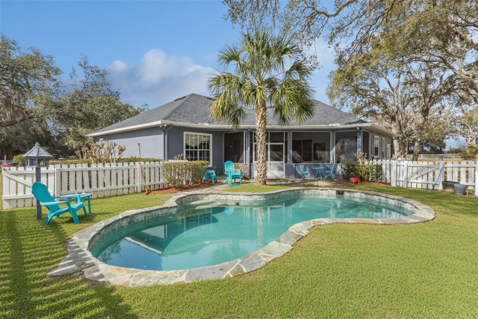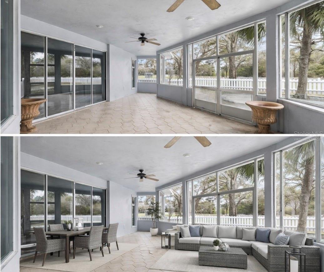 Uma ou mais fotos foram virtualmente encenadas. Amantes de cavalos, este é o que vocês estavam esperando! Uma oportunidade extraordinária de possuir uma propriedade equestre refinada em um dos locais mais cobiçados da Flórida Central. Situada atrás de portões em 7 hectares altos e secos totalmente cercados, esta propriedade excepcional oferece o equilíbrio perfeito entre vida luxuosa e instalações para cavalos de primeira linha. As comodidades equestres cuidadosamente projetadas incluem dois celeiros com um total de 8 baias e 8 piquetes separados, uma arena de adestramento iluminada de grandes dimensões e um curral redondo para treinamento. O celeiro com 5 baias no corredor central possui uma sala de alimentação e arreios, lavabo dedicado, lavatório com água quente e fria e compartimento de aparas. Um celeiro separado com 3 baias oferece participação direta e a flexibilidade de ser convertido em duas baias de reprodução de grandes dimensões - ideal para o equestre exigente. Passe pela elegante porta de entrada de vidro e entre em um espaço formal de estar e jantar destacado por tetos altos. As portas francesas se abrem para uma sala coberta da Flórida com vista para a piscina aquecida e cintilante, criando um fluxo interno-externo perfeito para entretenimento ou relaxamento tranquilo. A suíte primária privada é um verdadeiro retiro, completa com um amplo closet e janelas panorâmicas que emolduram vistas tranquilas da piscina e dos jardins circundantes. A banheira inspirada em spa oferece pias duplas, box amplo e uma banheira de imersão enorme sob uma janela panorâmica iluminada pelo sol, um lugar idílico para relaxar enquanto aprecia a vista da propriedade. No coração da casa, a cozinha de conceito aberto e a sala familiar combinam calor e sofisticação. A cozinha está equipada com uma grande linha Kenmore, geladeira, lava-louças, compactador de lixo e balcão para café da manhã, tudo fluindo facilmente para um recanto de jantar casual e um espaço de reunião convidativo. Uma suíte de hóspedes bem equipada com banheiro completo está situada fora da sala da família, enquanto um quarto e banheiro adicionais estão posicionados na parte traseira da casa. O banheiro traseiro também oferece acesso direto à piscina aquecida, que é cercada por uma charmosa cerca de estacas para uma sensação de propriedade atemporal. A iluminação Lutron em toda a residência e nos celeiros melhora o ambiente, a eficiência e a conveniência moderna. Novo telhado na casa e nos celeiros, novo ar condicionado 2020, nova bomba de poço em 25 de novembro, pintado por dentro e por fora, incluindo celeiros em dezembro de 2025 e muitas outras atualizações recentes! Veja a lista de atualização em anexo! Idealmente localizada a poucos minutos de Publix, Hendrix Feed Store, Mount Dora, Lake Mary, RedTail Golf Club e com fácil acesso à State Road 429, esta notável propriedade oferece uma rara combinação de privacidade, luxo e acessibilidade. Isto é muito mais que uma casa – é um estilo de vida! *OBSERVE QUE ALGUMAS FOTOS FORAM VIRTUALMENTE ESTACIONADAS as medidas são aproximadas e precisam ser verificadas pelo comprador/agente do comprador
