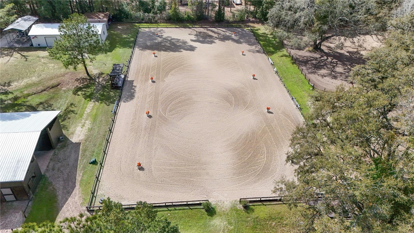 Design excepcional e planejamento cuidadoso definem esta propriedade equestre lindamente decorada, onde instalações para cavalos bem equipadas e espaços confortáveis se unem para criar uma propriedade para cavalos verdadeiramente pronta para uso. No centro da propriedade há um celeiro principal cuidadosamente projetado, construído com funcionalidade e fluxo de ar em mente. Um impressionante corredor central pavimentado de 16 pés leva a oito barracas espaçosas de 12' x 12', cada uma com entradas anexas que proporcionam flexibilidade e excelente ventilação. O celeiro está equipado com ventiladores de corredor de grandes dimensões, bebedouros automáticos, iluminação e tomadas elétricas em cada baia, dois lavatórios de 12' x 12', uma sala de alimentação e oito armários para armazenamento organizado. Uma kitchenette climatizada com água quente e fria acrescenta conveniência para as operações diárias do celeiro. O layout também permite a opção de adicionar um estábulo adicional ou expandir o armazenamento de feno e ração, se desejado. Um celeiro adicional de duas baias com lavatório está localizado dentro de um dos piquetes. As instalações de equitação são igualmente impressionantes. Uma arena de adestramento de competição em tamanho real de 100' x 200' nivelada a laser com base de fibra e irrigação fornece uma superfície consistente ideal para escolaridade e treinamento. Um mirante com espaço adicional no deck tem vista para a arena, oferecendo um local confortável para observar atividades de equitação. Cinco piquetes sombreados com irrigação e cercas proibidas proporcionam um espaço generoso de participação. Uma pequena trilha serpenteia pela parte de trás da propriedade, e há áreas designadas para compostagem e descarte de esterco. Melhorias adicionais incluem um celeiro com teto de 14 pés e estacionamento adjacente, proporcionando excelente espaço para reboques, tratores ou equipamentos. A garagem/oficina independente de 50 'x 25' possui duas portas de enrolar e várias opções de energia, incluindo serviço de 120 V 30 A, 240 V 50 A e 125 V 30 A. Acessada através de dois portões elétricos, a residência oferece privacidade e uma sensação acolhedora de chegada. A casa principal possui quatro quartos, três banheiros e um escritório dedicado, além de uma suíte privativa de um quarto e um banheiro com entrada separada, sala de estar e cozinha compacta. Pisos de concreto estampado percorrem as principais áreas de estar e são complementados por abundante luz natural. A sala possui uma lareira a gás que cria um ponto focal aconchegante para reuniões. Uma espaçosa sala familiar com banco de armazenamento embutido oferece espaço flexível, ideal para uma sala de mídia, área de exercícios ou espaço adicional. A suíte principal inclui closet e banheiro privativo com banheira de jardim. Os quartos dois e três compartilham um banheiro Jack-and-Jill, enquanto o quarto quatro está localizado perto de um banheiro completo adicional no corredor. Os espaços de convivência ao ar livre incluem uma área elevada de jardim e um pátio coberto com vista para um tranquilo lago de peixes dourados que leva à piscina, criando um ambiente tranquilo para relaxar ou se divertir. Localizada numa área conhecida pelo seu estilo de vida equestre, a propriedade oferece acesso conveniente a trilhos para passeios nas proximidades da Floresta Estatal de Seminole e da Floresta Nacional de Ocala. Também fica a uma distância confortável de carro de locais de espetáculos populares, incluindo Clarcona Horse Park, Grand Oaks e Florida Horse Park. Lojas, restaurantes e conveniências diárias estão a poucos minutos de distância, enquanto Ocala, Orlando, os aeroportos da região e as praias da costa leste da Flórida permanecem facilmente acessíveis.