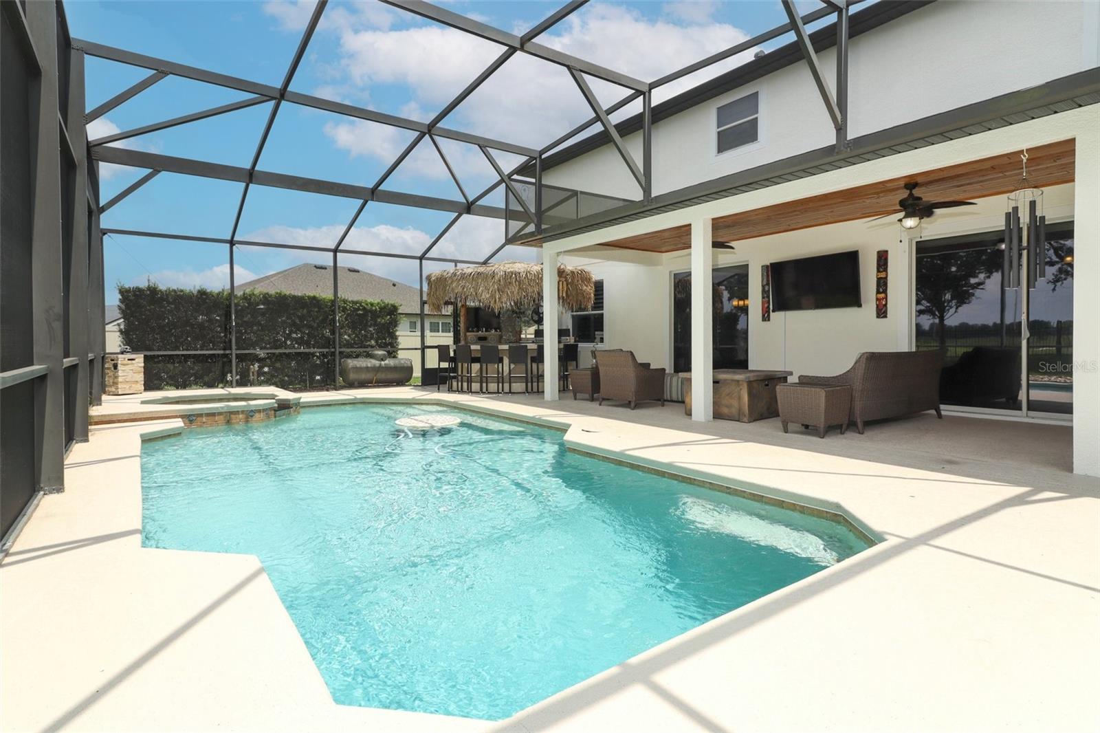Experimente viver nesta residência requintada situada em um campo de golfe fechado 24 horas em Sorrento Springs. Perfeitamente posicionada em um terreno de esquina de grandes dimensões, esta casa oferece privacidade incomparável, cercada por uma paisagem tropical exuberante e com vista para o 14º green do campo de golfe Eagle Preserve, sem taxas mensais ou necessidade de adesão. Entre no seu oásis privado, onde um espaço ao ar livre deslumbrante o aguarda. O quintal meticulosamente cuidado é um refúgio para relaxamento e entretenimento, com um bar Tahiti Tiki do Paradise Grills, uma cozinha externa totalmente equipada e uma piscina de água salgada Jandy AquaPure com spa aquecido. Desfrute do pôr do sol de tirar o fôlego em sua ampla varanda, completa com um teto Florida Cypress macho e fêmea e ventiladores tropicais, tudo fechado em um recinto reformado (2020) para diversão durante todo o ano. No interior, a casa é uma vitrine de elegância moderna, design inteligente e atualizações de luxo. O primeiro andar recebe você com um grande hall de entrada que separa graciosamente as salas formais de estar e de jantar, preparando o cenário para reuniões refinadas. Um quarto privativo neste nível é ideal para hóspedes ou familiares, enquanto um espaço flexível privado serve perfeitamente como escritório, sala de jogos ou estúdio criativo. Suba ao segundo nível, onde três quartos secundários e dois banheiros lindamente decorados oferecem conforto e privacidade. Um loft aberto oferece uma área versátil para relaxamento ou estudo, e uma espaçosa sala de jogos é perfeita para entretenimento. A suíte principal possui chuveiro de mármore italiano com pulverizadores corporais, portas de vidro de 1/2” e bancadas de granito lindamente atualizadas. A cozinha é o sonho de um chef, ostentando um bar de ilha de granito personalizado com uma pia enorme de aço inoxidável, eletrodomésticos de aço inoxidável de última geração e amplos armários de 42 ”para armazenamento. Com persianas de 5 ”em todas as janelas, persianas inteligentes Alexa na grande sala e cozinha e armários personalizados embutidos em todos os quartos, nenhum detalhe foi esquecido. Os recursos adicionais incluem som surround de teatro de sala familiar, pintura externa 2024 Sherwin-Williams Duration, novo piso LVP de 20 moinhos, telhado 2023 e calhas com telhas de 30 anos da SureTeed Landmark e um aquecedor de água quente 2022. A casa também está pré-instalada para um gerador de duplo combustível, garantindo tranquilidade durante qualquer tempestade. Esta extraordinária propriedade oferece não só espaços interiores e exteriores requintados, mas também a comodidade de um poço para irrigação, um amaciador de água com filtração para toda a casa e um sistema de arrumação SafeRack na garagem. Com apenas uma propriedade vizinha, esta casa proporciona uma sensação incomparável de privacidade e tranquilidade. Sorrento Springs oferece um estilo de vida excepcional em seu ambiente fechado e seguro. Os residentes têm acesso a uma variedade de comodidades: campo de golfe profissional, clube com piscina estilo resort, quadras de tênis e academia. O ambiente sereno da comunidade é ainda melhorado pela sua proximidade com reservas naturais, trilhas para caminhada e lagos, um paraíso para os entusiastas do ar livre. Convenientemente localizado, Sorrento Springs fica a poucos minutos do charmoso centro de Mount Dora, conhecido por suas boutiques, restaurantes sofisticados e vibrante cenário artístico. O fácil acesso às principais rodovias garante uma viagem rápida ao centro da cidade de Orlando, aos parques temáticos e ao Aeroporto Internacional de Orlando, enquanto escolas de alto nível e serviços essenciais estão todos próximos.