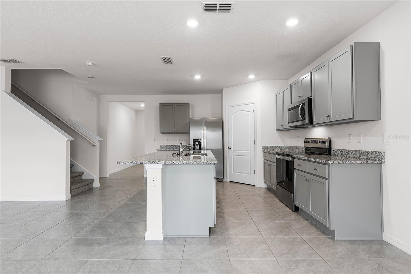Bem-vindo em casa dentro desta casa de 5 quartos e 3 banheiros, você encontrará 2.601 pés quadrados de espaço flexível e uma garagem para dois carros. Passe pelo hall de entrada da frente e você é recebido com uma sala flexível projetada para o trabalho ou o jogo. Faça o seu caminho para a cozinha no primeiro andar, com vista para a sala de jantar, para o pátio do quintal. A cozinha possui uma ilha central com espaço para assentos, armários abundantes, bancada de quartzo, utensílios de aço inoxidável e uma despensa que certamente virará a cabeça e facilitará a preparação das refeições. Os hóspedes podem puxar um assento neste espaço funcional. Um dos quatro quartos está localizado no primeiro andar e na parte de trás da casa para obter privacidade. Enquanto seguimos para o segundo andar, somos recebidos com o quarto principal que apresenta um banheiro na suíte, além de três quartos adicionais que cercam uma segunda área de estar, um banheiro completo e uma área de lavanderia. Se esses quartos se tornam quartos, escritórios ou outras salas de bônus, certamente haverá um lugar para todos.