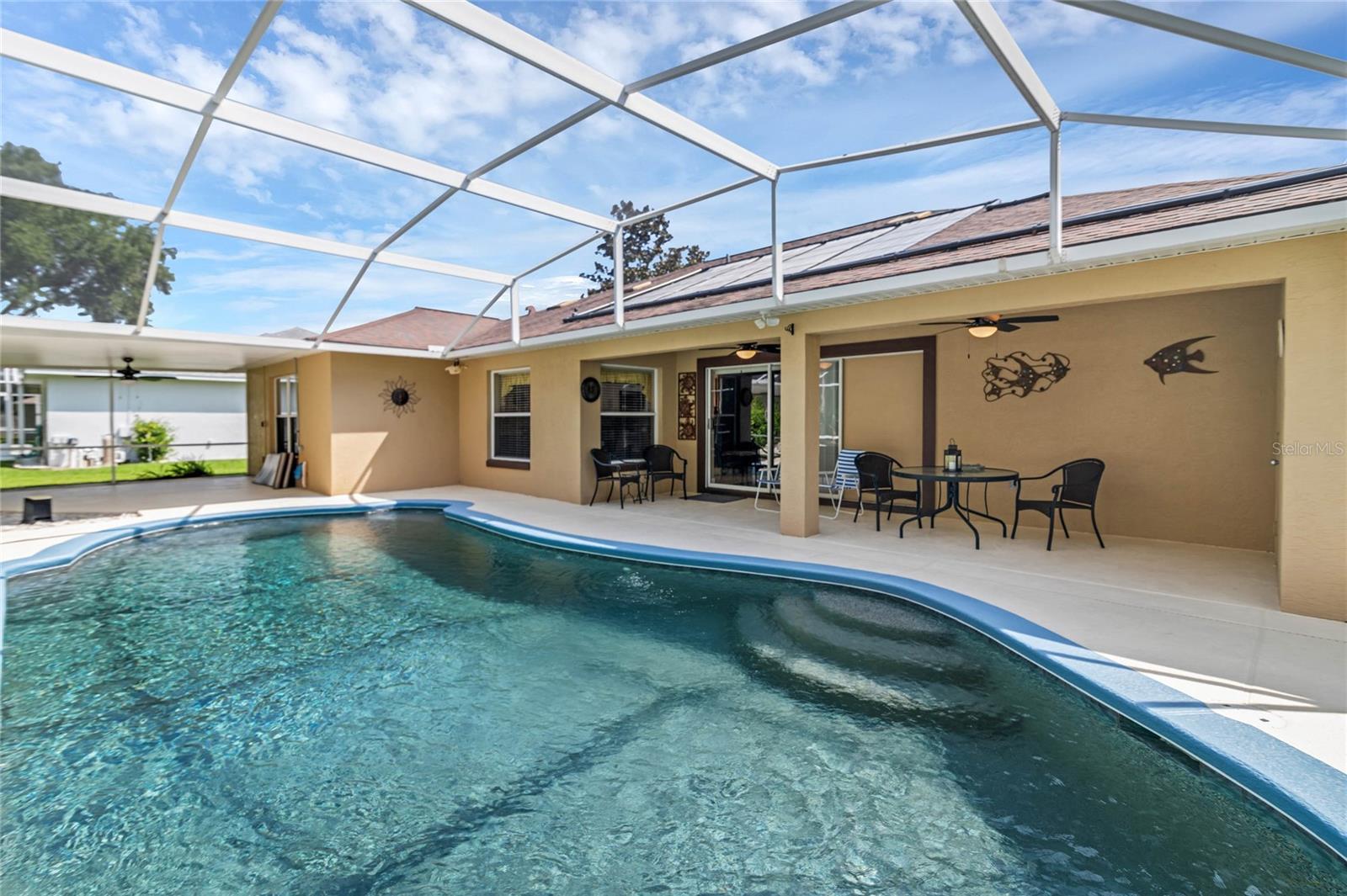 Não procure mais, esta casa não vai durar muito! Esta linda casa com PISCINA de 3 quartos pronta para morar está pronta para você chamar de sua. Sala bônus que pode facilmente ser usada como quarto adicional. Apresentando uma piscina aquecida movida a energia solar com acabamento WetEdge Technology Pearl Matrix Pebble, uma espaçosa área de estar ao ar livre e banheira de piscina atualizada no pátio! Bomba de piscina totalmente nova e sistema solar altamente eficiente no telhado para aquecimento da piscina. Esta casa é linda por dentro, com piso novo em todos os quartos e banheiros, rodapés novos em toda a casa, bancadas de granito modernas, armários de madeira maciça, acabamentos arquitetônicos exclusivos, tetos altos abobadados, novos ventiladores de teto externos e muito mais. Esta casa foi meticulosamente mantida e também possui um AC totalmente novo que acabou de ser instalado, o aquecedor de água tem apenas 2 anos, o telhado tem 12 anos e todas as janelas têm tonalidade reflexiva UV para otimizar a eficiência energética. Venha conhecer sua nova casa!