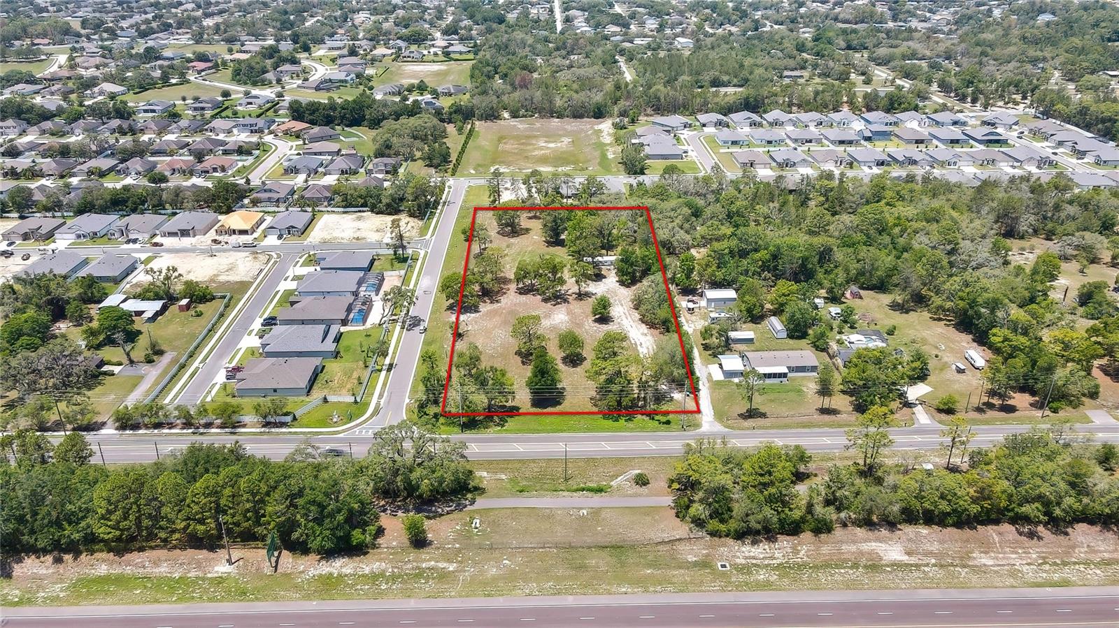 Quase 4 acres de terra dividida em zonas comerciais/multifamiliares em uma localização privilegiada. 2,46 acres zoneados multifamiliares. 1.39 Comercial zoneado. A Suncoast Parkway fica a aproximadamente 1,6 km de distância! Há uma casa móvel na propriedade que foi parcialmente remodelada há um ano (alguns novos pisos, drywall, bancadas, armários, teto selado). Contagem diária de tráfego de 25.000. Não perca esta fantástica oportunidade de investimento!