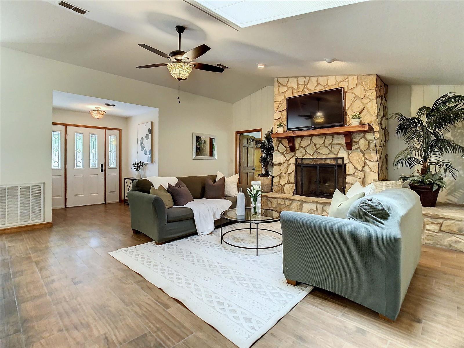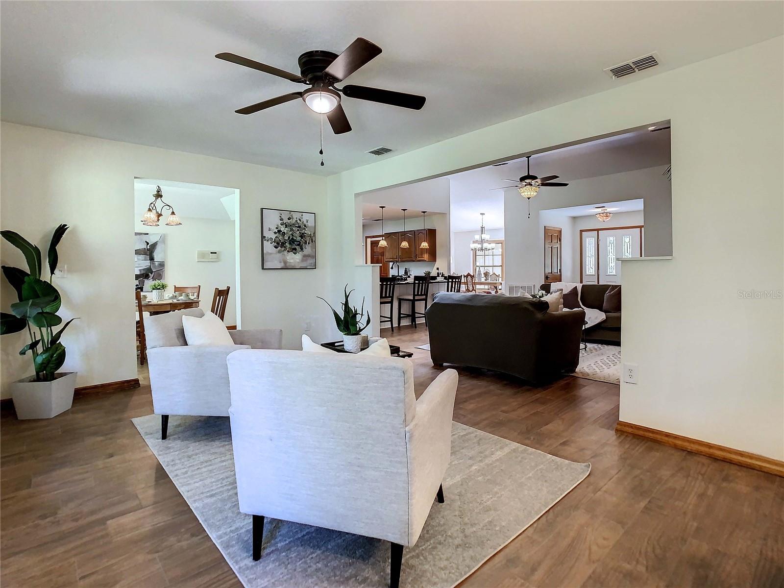 Luxo que vive no verde sem HOA. Aninhado no coração de um bairro tranquilo e arborizado, esta excepcional casa de 3 quartos e 2 banheiros é o epítome da elegância moderna. Esta residência está situada em um lote de acres, que pode ser cercado e oferece uma mistura idílica de conforto, estilo e beleza natural de tirar o fôlego. Ao entrar, você será recebido pelo abraço quente de pisos de madeira que o levam a um piso plano aberto com tetos altos e uma lareira aconchegante, criando uma sensação de espaço e arejamento. A suíte master é um refúgio de relaxamento, com um espaçoso closet e um banheiro privativo projetado para luxo e conforto. Dois quartos adicionais também oferecem armários generosos, garantindo que todos na casa tenham seu próprio espaço pessoal. Saia para a varanda dos fundos fechada, onde aguarda uma vista panorâmica do campo de golfe adjacente. Tome seu café da manhã ou relaxe à noite enquanto aprecia a beleza serena da paisagem exuberante. Com uma garagem extra-longa, há amplo espaço para todos os seus veículos e convidados. O bairro tranquilo garante um ambiente pacífico e privado, perfeito para quem procura um retiro da agitação da vida. Os recursos adicionais incluem uma sala de jantar formal, ideal para hospedar jantares e ocasiões especiais, e uma lavanderia interna por conveniência. Não perca a chance de tornar este próprio lar notável. Com suas comodidades modernas, vistas deslumbrantes e localização privilegiada no campo de golfe público, não estará disponível por muito tempo. Aproveite esta oportunidade e comece a viver a vida que você sempre sonhou. Agende sua exibição hoje e deixe a magia desta casa inspirar você a tomar medidas imediatas. O estilo de vida dos seus sonhos aguarda!