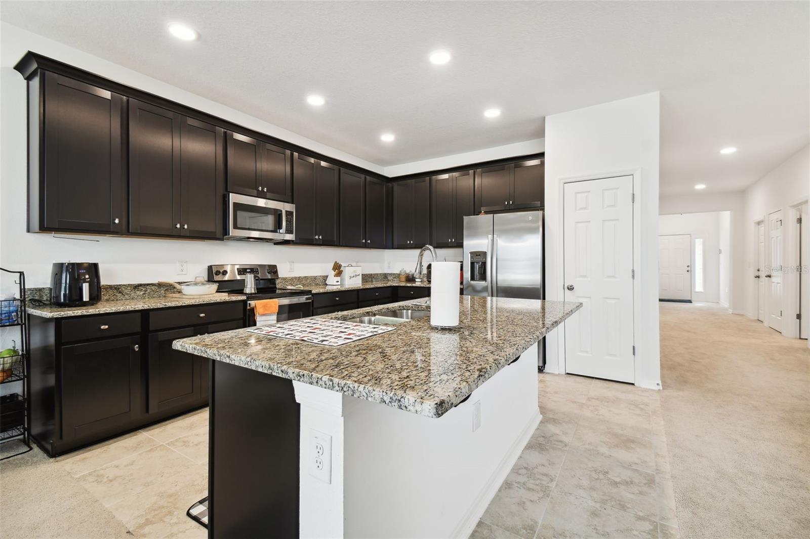 Bem -vindo a este belo conceito aberto, 2023 quase novo construído por Mi Home, na comunidade Talavera desejável. Lot de canto, cercado para privacidade, esta casa possui quase 0,5 de um hectare. Esses 4 quartos, com 3 banheiros em tamanho real e 3 garagens para sua família em crescimento, fornecerão espaço suficiente para todos da família. Um dos quartos secundários tem um banho completo ao lado de sua porta e pode ser seccionado como uma suíte sogra ou para dar mais privacidade aos seus convidados. O banheiro do proprietário possui um chuveiro luxuoso e uma banheira de imersão, garantindo que você tenha muito espaço para rejuvenescer após um longo dia. A cozinha abre para a grande sala. Possui muitos armários, pacote completo de aparelhos e um espaçoso recanto do café da manhã. A sala da família está no Hart of the House, seu Xtra grande, com espaço adicional para adicionar uma área de jantar formal, área de recreação ou espaço de escritório, para atender às suas necessidades. Esta casa está perfeitamente localizada a cerca de 1,6 km do SR-52 e dos EUA 41, para acesso rápido ao veterano/sucoast Expw e I-75. Esta é uma área em crescimento, com vários mega desenvolvimentos, como o novo Hospital Moffitt na comunidade de Angelina, além de planos futuros para restaurantes, supermercados e grandes empregadores. (Pls note que a lavadora/secadora GE na garagem ficará com o preço da casa)