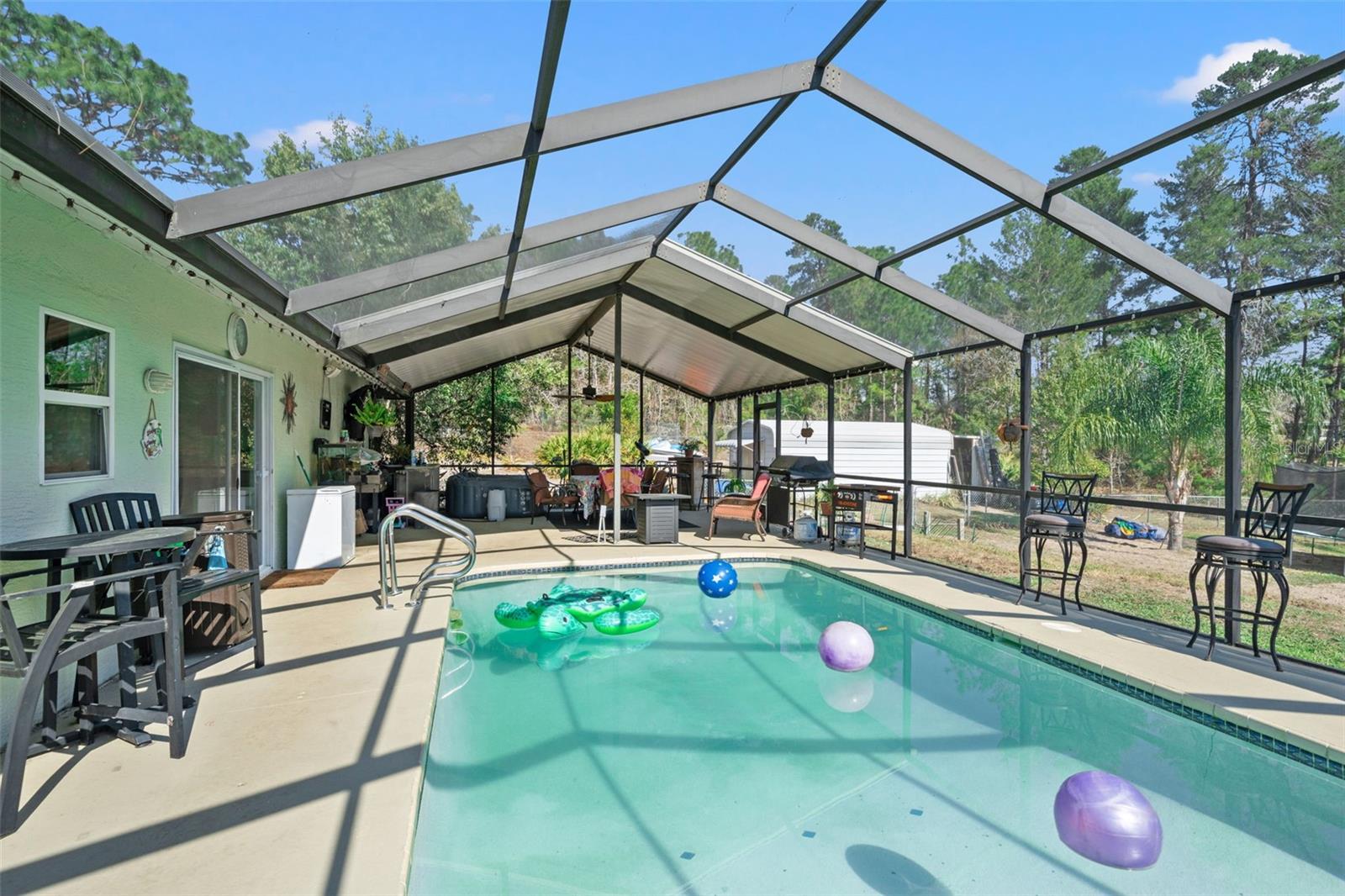 Você vai querer colocar esta casa atualizada com PISCINA de 3 quartos/2 banheiros em sua lista! Com localização central, mas com espaço para passear, esta casa está situada em pouco mais de meio acre! Sem restrições de HOA ou escritura, então traga os brinquedos! A varanda da frente com área de estar recebe você em casa. Entre na sala de estar aberta com tetos altos, piso de madeira projetada e controles deslizantes para a piscina. Cozinha equipada com electrodomésticos em inox, despensa, balcão, com fácil acesso à zona de refeições. O quarto principal possui um amplo closet. O banheiro privativo possui pia dupla, chuveiro grande e controle deslizante, proporcionando fácil acesso de e para a piscina. Planta dividida com dois quartos de bom tamanho e segundo banheiro com banheira de hidromassagem e penteadeira grande. Prepare-se para entretenimento ao ar livre! Passe dias mergulhando na piscina ou jantando ao ar livre na espaçosa varanda com ventilador e vista para o quintal cercado. Quintal dispõe ainda de barracão com água e electricidade - perfeito para oficina ou apenas arrumação adicional. Se necessário, já existem recursos acessíveis para cadeiras de rodas - porta da sala principal com 90 centímetros de largura, chuveiro principal acessível com barras e uma rampa de concreto para a porta da frente. Fossa séptica atendida em 2022. Convenientemente localizado perto de lojas, restaurantes e muito mais! Ligue hoje para marcar sua consulta para ver!