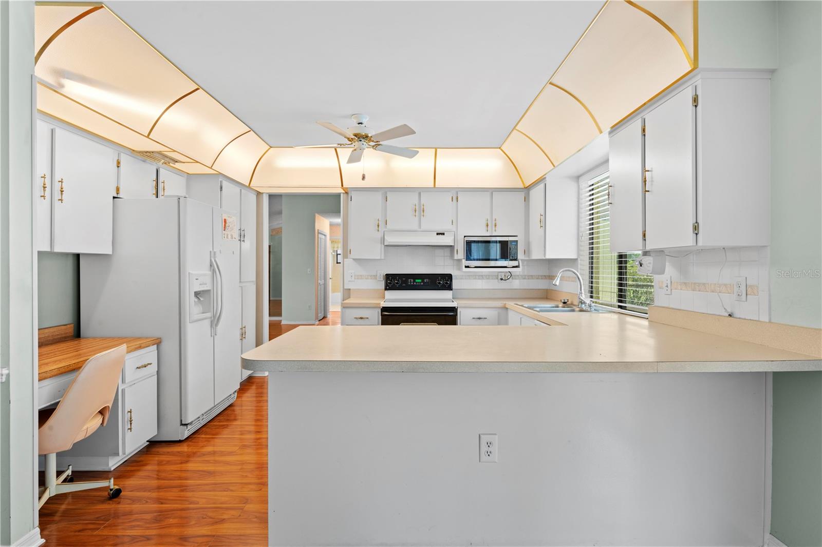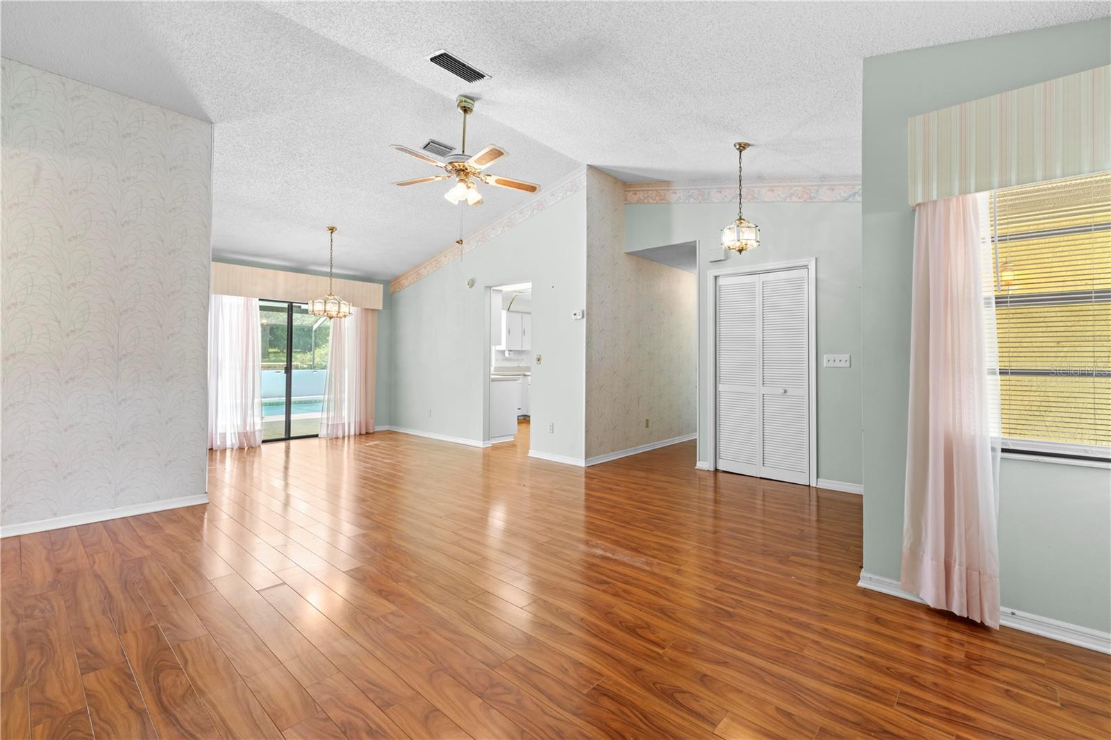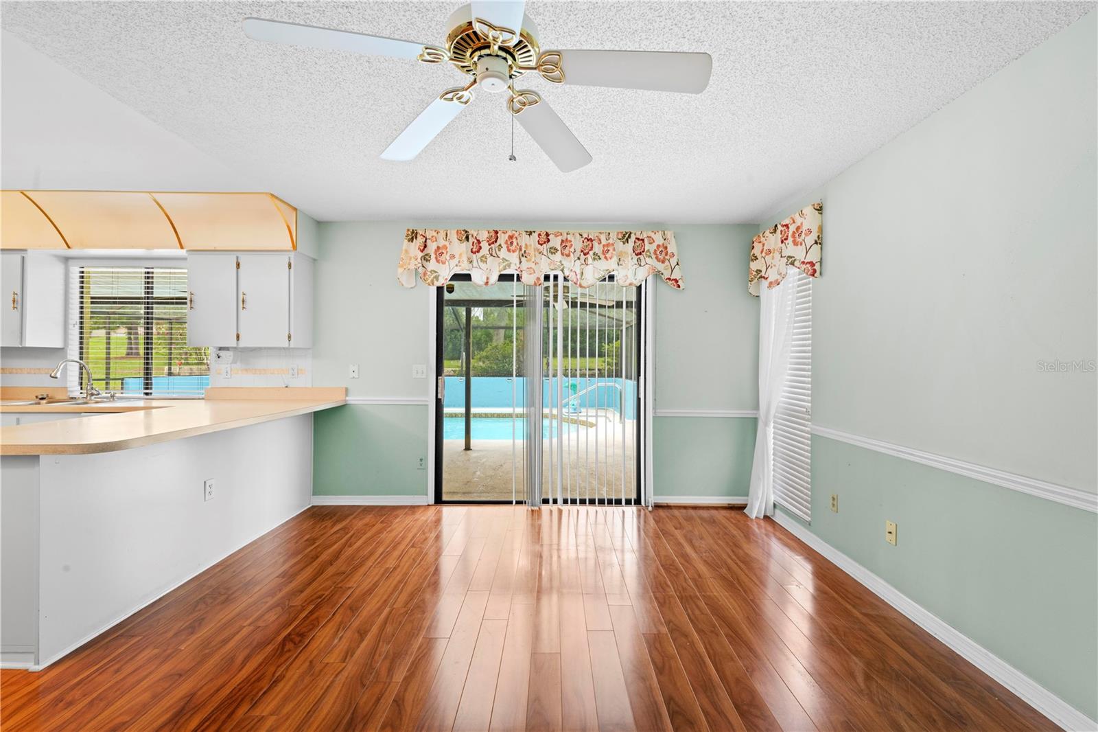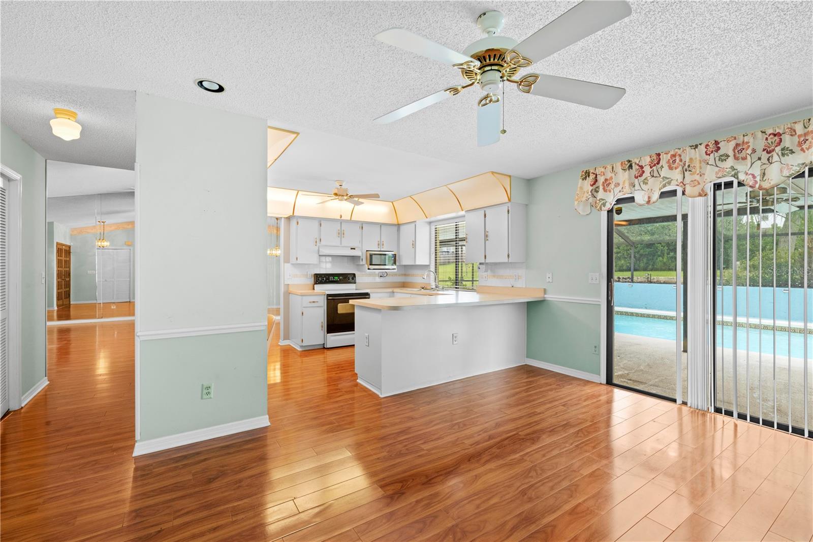 Bem-vindo a esta casa impecável de 2 quartos e 2 banheiros, aninhada em um lote espaçoso de .28 acres em Spring Hill. Com 1.481 pés quadrados, esta casa oferece uma mistura de conforto e estilo. Ao entrar, você é recebido por uma sala de estar formal e uma combinação de sala de jantar, perfeitamente posicionada para capturar vistas serenas da piscina pelas portas de vidro deslizantes. A suíte master, localizada à esquerda no corredor, possui armários duplos, um ventilador de teto e um banheiro privativo com uma única vaidade da pia, um chuveiro de azulejos e acesso direto à piscina, adicionando um toque de luxo à sua rotina diária. O banheiro adjacente de hóspedes oferece uma única vaidade da pia e uma combinação de banheira/chuveiro, enquanto o segundo quarto oferece amplo espaço com um grande armário e um ventilador de teto. No lado oposto da casa, a cozinha ampla é o sonho de um chef com muitos armários e uma barra de café da manhã conveniente com vista para a aconchegante área de estar. Este espaço é aprimorado por uma porta de vidro deslizante de panela dupla que leva diretamente para a área da piscina, tornando a vida inteira que vive uma brisa. O piso de ladrilhos laminado e de cerâmica flui perfeitamente por toda a casa, e uma garagem para 2 carros fornece armazenamento e estacionamento adicionais. A área de piscina exibida é o local perfeito para relaxar e desfrutar das noites de verão quentes em total privacidade. Não perca a oportunidade de fazer com que este home meticulosamente mantenha o seu - escemue uma exibição hoje!