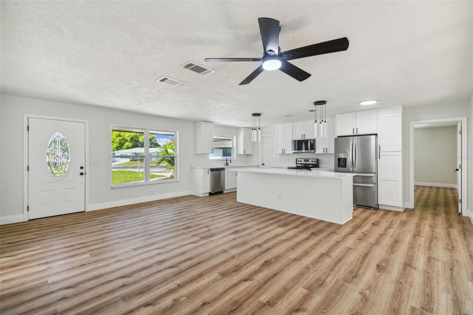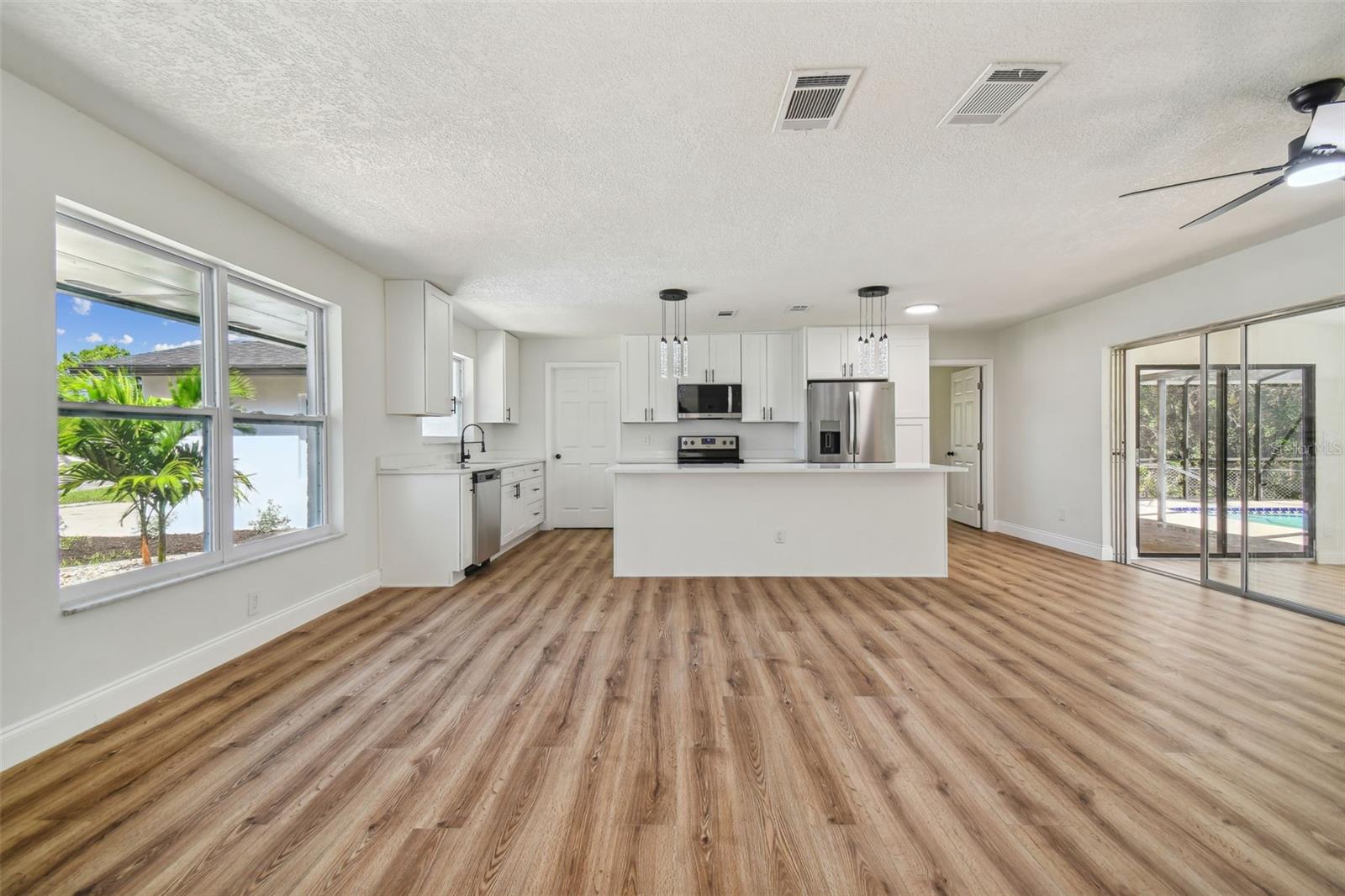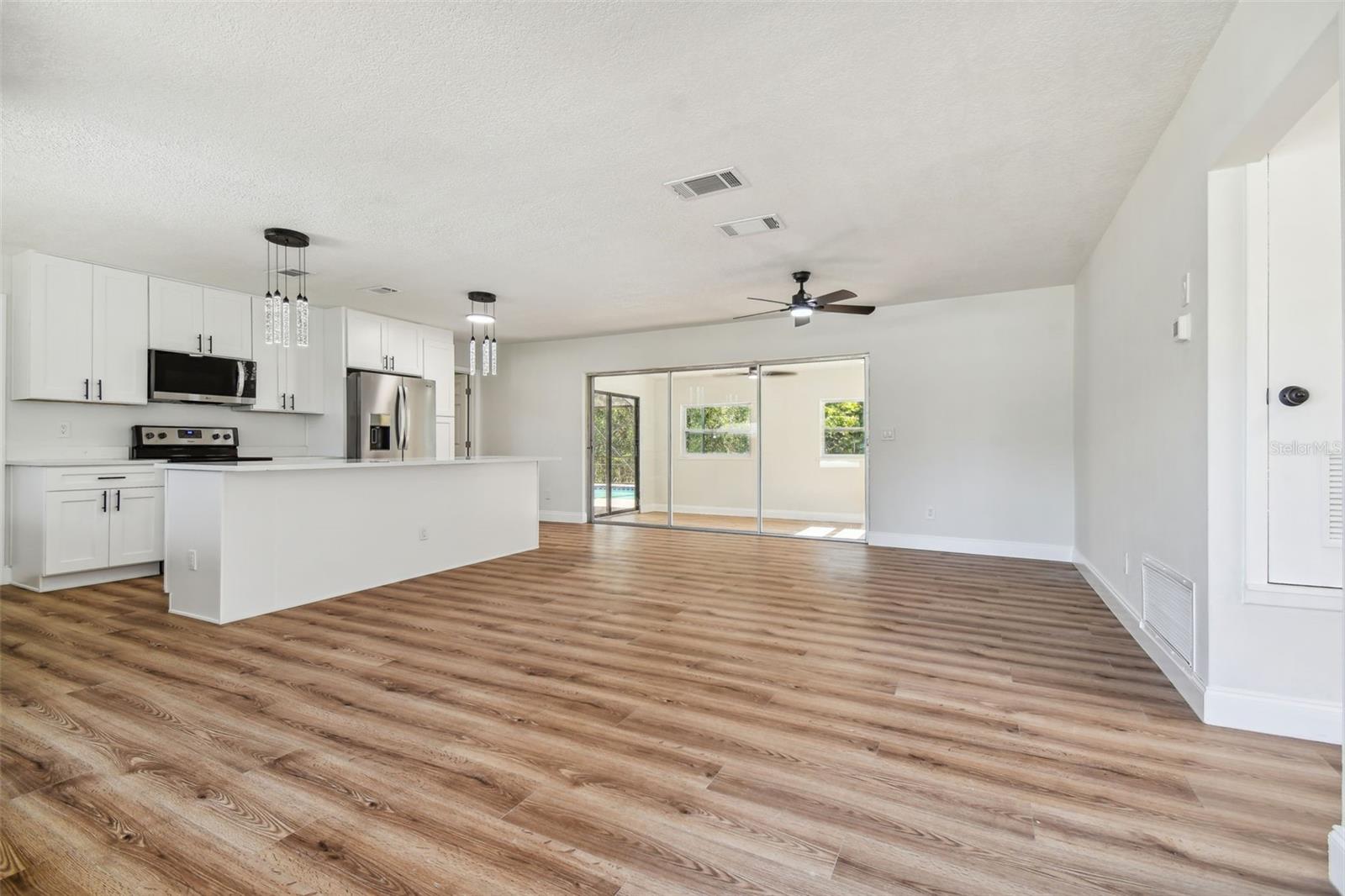 Esta bela casa está situada no tranquilo bairro de Hunters Lake, em Spring Hills, oferecendo uma experiência de vida serena. Depois de passar por uma reforma completa, esta casa conta agora com três quartos, dois banheiros e garagem para um carro. Ao entrar, você notará o novo piso que percorre toda a casa. O layout foi cuidadosamente projetado para maximizar a luz natural, e uma janela panorâmica tem vista para a piscina cristalina e cintilante. A cozinha foi completamente modernizada com novas bancadas de quartzo na ilha de grandes dimensões, armários atualizados e novos eletrodomésticos e janelas de aço inoxidável. Os banheiros também foram atualizados com bom gosto, com novas penteadeiras e encanamentos impressionantes. A casa foi atualizada com um novo telhado, pintura fresca, piso e luminárias. A privacidade é um destaque - localizada em uma rua sem saída com uma impressionante reserva como quintal, a propriedade oferece um terreno magnífico e claro.