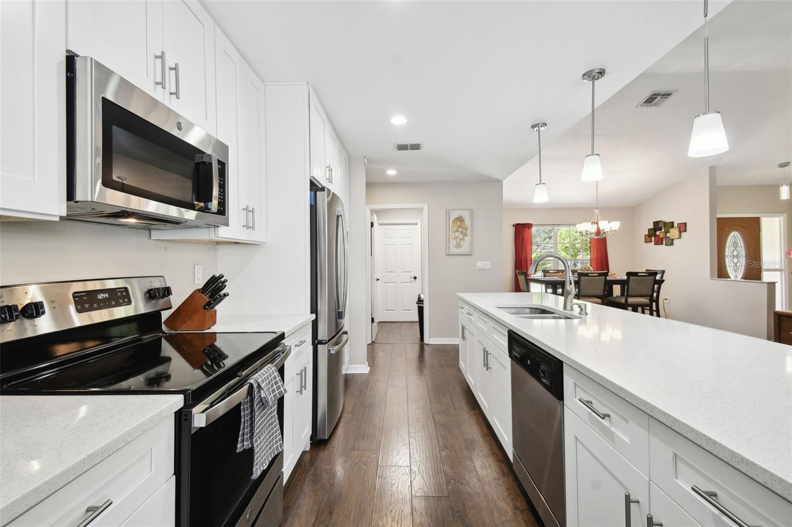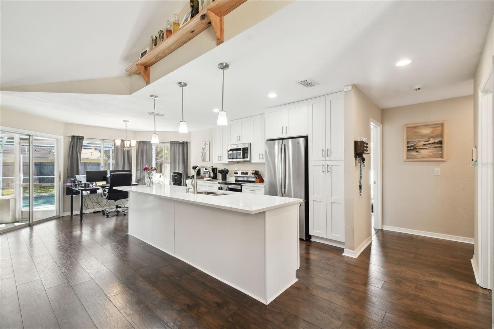 Recentemente, remodelado 2 BR, 2 Banho Completo, 2 carros para casa, pronta para casa, com uma varanda traseira, cercada no quintal e na piscina de exibição localizada em uma zona não-alvo, sem taxas de HOA. Esta residência unifamiliar maravilhosamente remodelada oferece um design de conceito aberto convidativo perfeito para a vida moderna. Ao entrar no hall de entrada, você ficará impressionado com a grande planta, tetos abobadados e pisos de tábua de vinil de luxo por toda parte. A sala de estar, a sala de jantar, a cozinha e o recanto do café da manhã estão todos à sua vista. O coração da casa é a cozinha completa com armários agitadores brancos elegantes, bancadas de quartzo e aparelhos de aço inoxidável. A grande ilha central oferece amplo espaço para preparação de alimentos e convidados divertidos. O recanto do café da manhã permite que o sol da manhã ilumine o quarto perfeito para desfrutar de café da manhã ou reuniões noturnas. Esta linda casa com uma verdadeira planta dividida, tendo quartos em lados opostos da casa, permite privacidade para você e seus convidados. O espaçoso EN-Suite primário tem uma porta deslizante que permite que a luz natural encha a sala, um grande armário e um armário padrão, fornecendo muito armazenamento de guarda-roupa. A grande área de vaidade de pia dupla com bancadas de quartzo, bastante armazenamento e torneiras iluminantes traz um toque de tecnologia e conveniência ao usar. O banheiro privativo com um chuveiro tem muito espaço. O segundo quarto é espaçoso com um armário completo. O 2º banheiro possui uma combinação de chuveiro/banheira e possui um armário de linho para armazenamento adicional. A conveniência é fundamental com uma lavadora/secadora em tamanho real na lavanderia interior dedicada. A varanda coberta convida você a relaxar e relaxar com vista para o espaçoso quintal cercado. Saia para a piscina exibida, convida você a nadar ou dar um mergulho para se refrescar. Localizado no coração de Spring Hill, situado em uma rua tranquila, esta casa oferece um retiro sereno enquanto ainda estava perto das comodidades locais. Não perca a oportunidade de tornar este próprio em casa deslumbrante! Agende sua exibição hoje. | A/C 2013 com novo motor no manipulador de ar | 2024 Aquecedor de água | Abridor de porta de garagem Wi-Fi | O sistema de segurança inclui 3 câmeras exteriores e câmera da campainha, detecção de quebra de vidro, sensores de portas abertas interiores e alarme de incêndio | Lavadora/secadora e todos os utensílios de cozinha 2021.