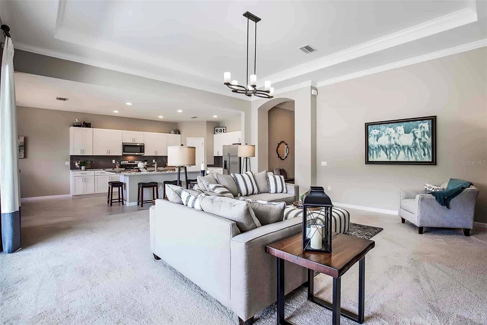 Bem-vindo a esta deslumbrante casa modelo totalmente mobiliada, localizada no sereno e privado condomínio fechado de Serengeti. Esta residência térrea lindamente projetada apresenta uma planta dividida desejável com 4 quartos, 2 banheiros e uma espaçosa garagem para 2 carros. Cada canto da casa reflete conforto moderno e elegância atemporal. A área de estar de conceito aberto se conecta perfeitamente a uma cozinha gourmet equipada com armários premium, bancadas de granito, eletrodomésticos de aço inoxidável e uma ilha generosa, ideal para refeições casuais e divertidas. Molduras de coroa personalizadas nos tetos das bandejas elevam a área de estar, adicionando um toque distinto de sofisticação que diferencia esta casa. A luxuosa suíte principal é privativa e inclui um banheiro tipo spa com pias duplas, box amplo e amplos closets para ele e para ela. Três quartos adicionais oferecem opções flexíveis para família, convidados ou escritório doméstico. Em toda a casa, acabamentos personalizados e molduras decorativas realçam o charme geral. Saia para o seu oásis privado com um pátio coberto e uma fogueira aconchegante - perfeito para noites descontraídas ou reuniões ao ar livre. Os destaques adicionais incluem construção com eficiência energética e uma lavanderia conveniente com armazenamento embutido. Situado perto da impressionante comunidade Angeline, você desfrutará de fácil acesso a futuros parques, trilhas, lojas e comodidades emocionantes. Não perca a chance de possuir este tesouro pronto para morar. Agende sua exibição privada hoje mesmo!