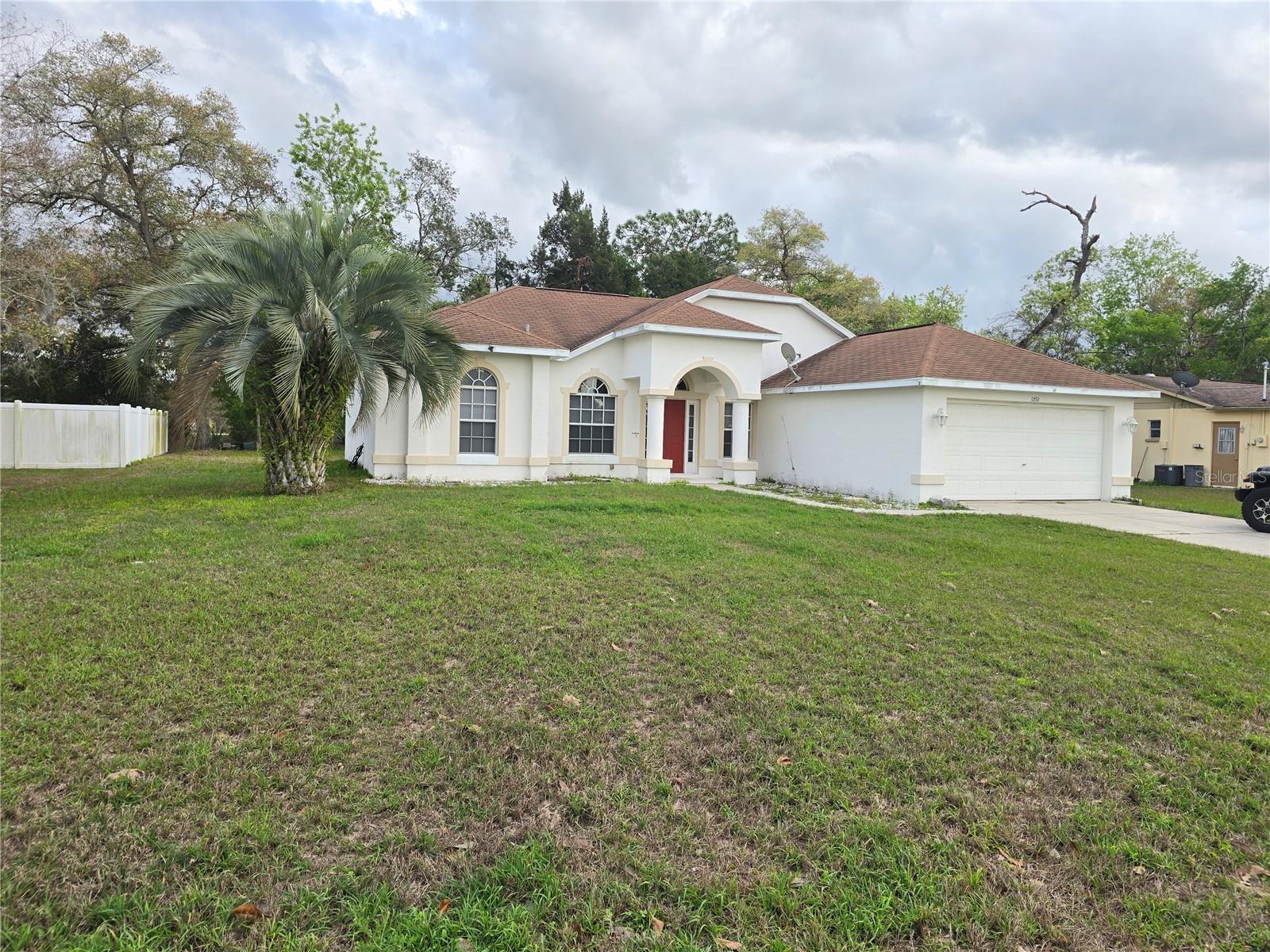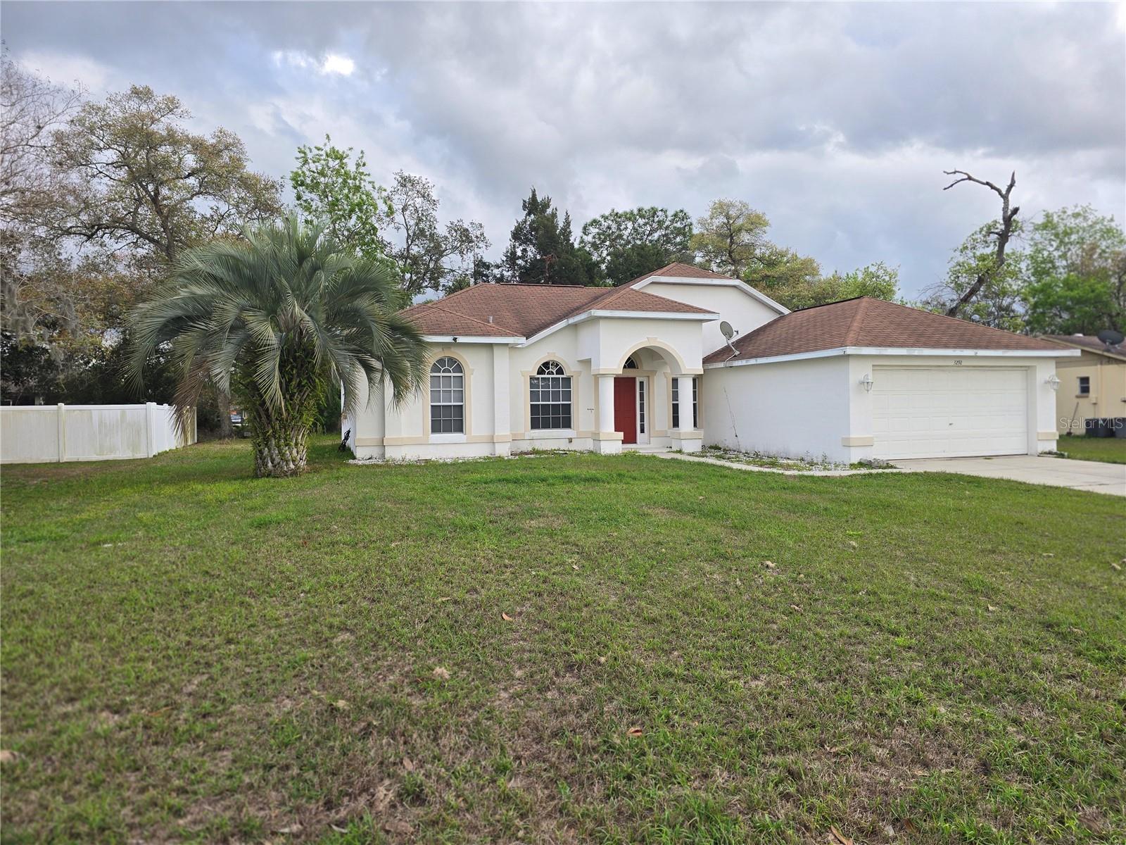 Esta casa de garagem 3/2/2 está pronta para um novo proprietário torná -lo próprio. This home has an open feel from the moment you walk in the front door to the expansive living area with vaulted ceilings, The oversized primary bedroom is off of the living area and separate from the other bedroom, the primary ensuite is incredible with a huge walk in closet, large walk in shower, separate tub, double vanity, extremely large kitchen with lots of counter space for the aspiring chef with a very nice eat in area. A varanda coberta é perfeita para grelhar ou apenas sentar em sua Lanai com vista para um grande quintal. Esta casa possui uma sala de serviços públicos internos, garagem de 2 carros, a casa fica perto das compras, da via expressa Suncoast e de tudo o que Spring Hill tem a oferecer. Se aberto e arejado, com muito espaço para se espalhar, é o que você está procurando, então este é o lar para você. O quintal de grandes dimensões tem muito espaço para uma piscina. Melhor se apressar por esse preço.