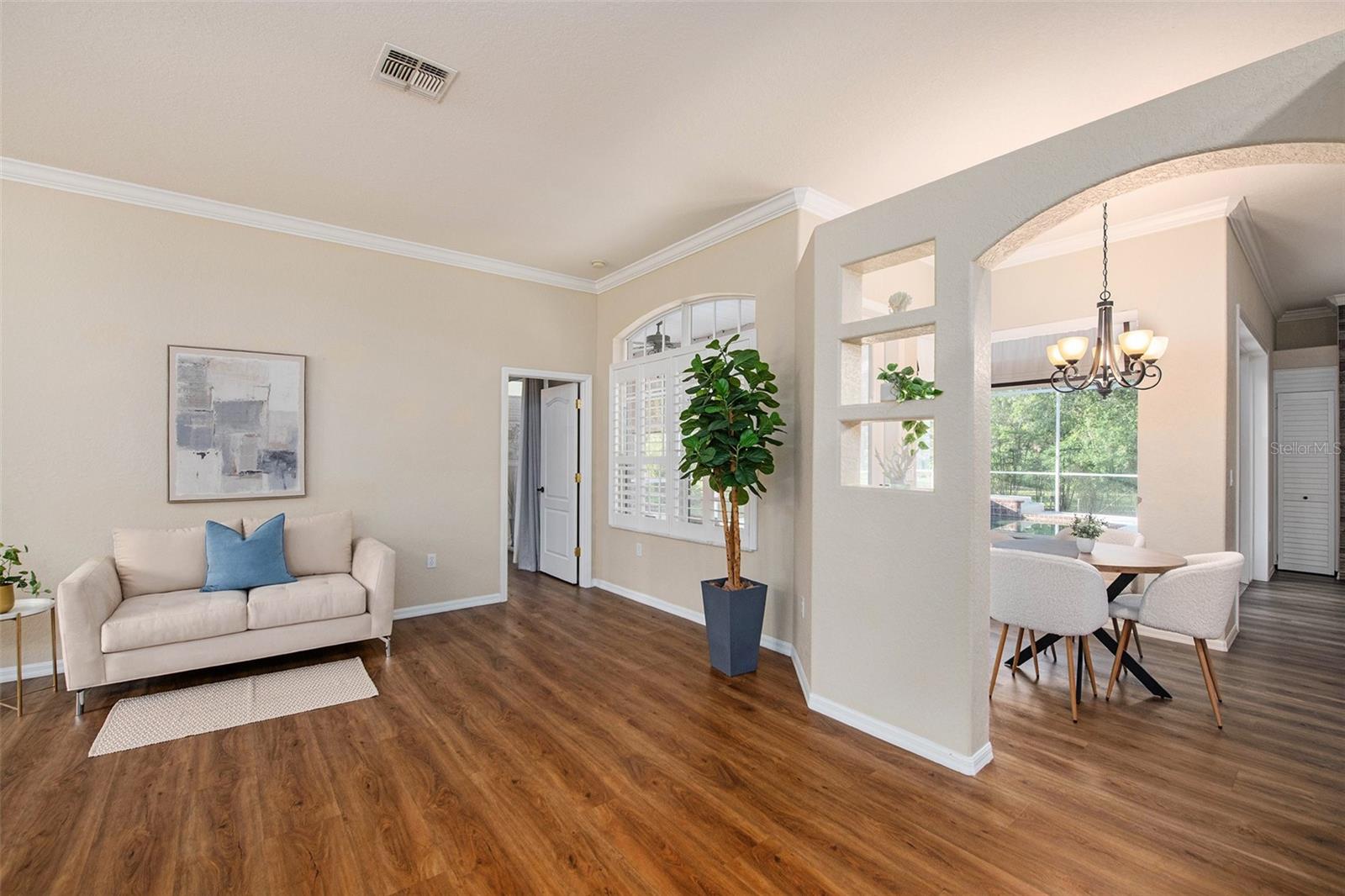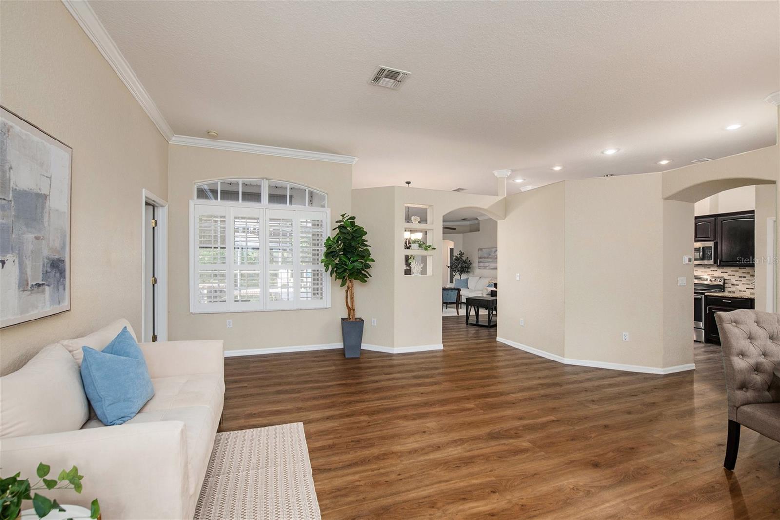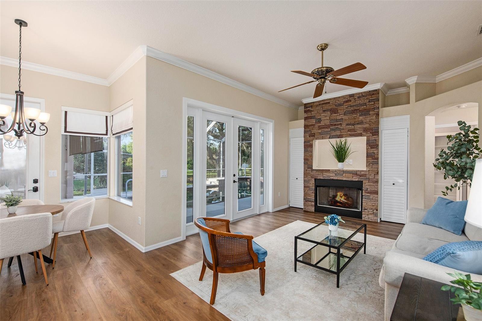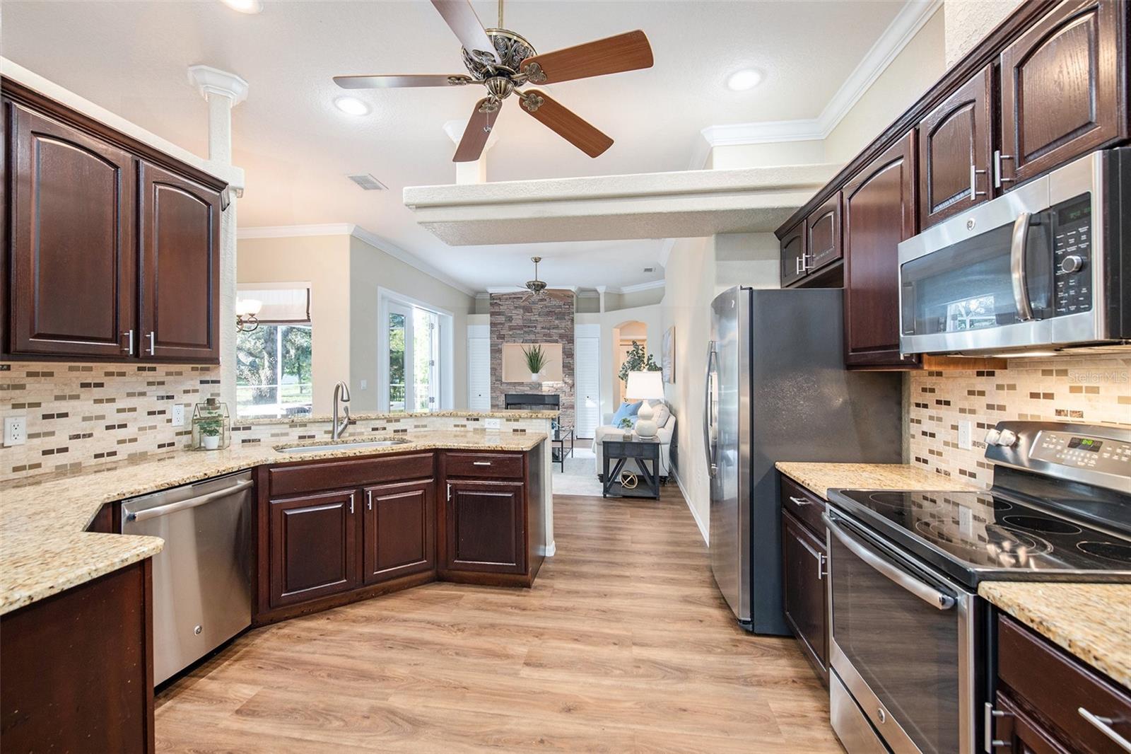 Bem-vindo a esta impressionante casa personalizada por casas artísticas, onde o design atemporal encontra o conforto diário. Aninhado em um estacionamento espaçoso com árvores maduras, esta casa oferece um retiro pacífico com uma piscina e spa com acabamento de seixos, perfeito para relaxar ou divertir. À medida que você passa pela grande porta da frente, seu olho é imediatamente atraído pela casa até o quintal exuberante, emoldurado por uma grande janela com persianas de plantações. Os tetos altos com moldagem por toda a coroa criam um fluxo elegante, e o piso de tábua de vinil de luxo acrescenta calor e durabilidade. A área de jantar formal fica na frente da casa com belas vistas do quintal paisagística e é complementada por uma área de estar aconchegante ao lado dela - ideal para leitura, conversa silenciosa ou espaço de entretenimento adicional. Fora à esquerda, a suíte primária é uma fuga tranquila, com iluminação recuada, armários duplos e portas de vidro deslizantes que se abrem para o Lanai. Comece o seu dia com uma xícara de café na varanda coberta, absorvendo o ar fresco e os sons pacíficos dos pássaros. O banho privativo inclui uma banheira de jardim, um chuveiro de azulejos separados e uma longa vaidade para maior conforto e conveniência. No coração da casa, a cozinha foi projetada para impressionar com armários de madeira maciça de 42 ”, bancadas em granito, prateleiras de puxar e uma despensa de armário. O recanto de café da manhã adjacente é embrulhado em duas janelas grandes e uma porta de vidro com persianas embutidas, inundando o espaço com luz natural. O convidativo Den apresenta portas francesas e uma deslumbrante lareira de gás de pedra do chão ao teto, criando um ponto focal aconchegante. A partir daqui, vá para o Lanai, nade ou desfrute de seu próprio oásis de quintal particular - perfeito para animais de estimação, jardinagem ou simplesmente relaxando. Dois quartos adicionais, ambos com armários walk-in, estão localizados no lado oposto da casa para obter maior privacidade. O espaçoso segundo banho inclui uma vaidade de maquiagem, armário de linho, combinação de banheira/chuveiro e acesso direto à área da piscina-ideal para os hóspedes. A lavanderia e a área do escritório terminam fora de casa. Destaques adicionais incluem: janelas coloridas com filme de furacão, novo telhado (2024), novo A/C (2022), galpão de armazenamento no quintal Esteja você hospedando amigos ou desfrutando de manhãs tranquilas na varanda, esta casa oferece conforto, estilo e o melhor da vida na Flórida.