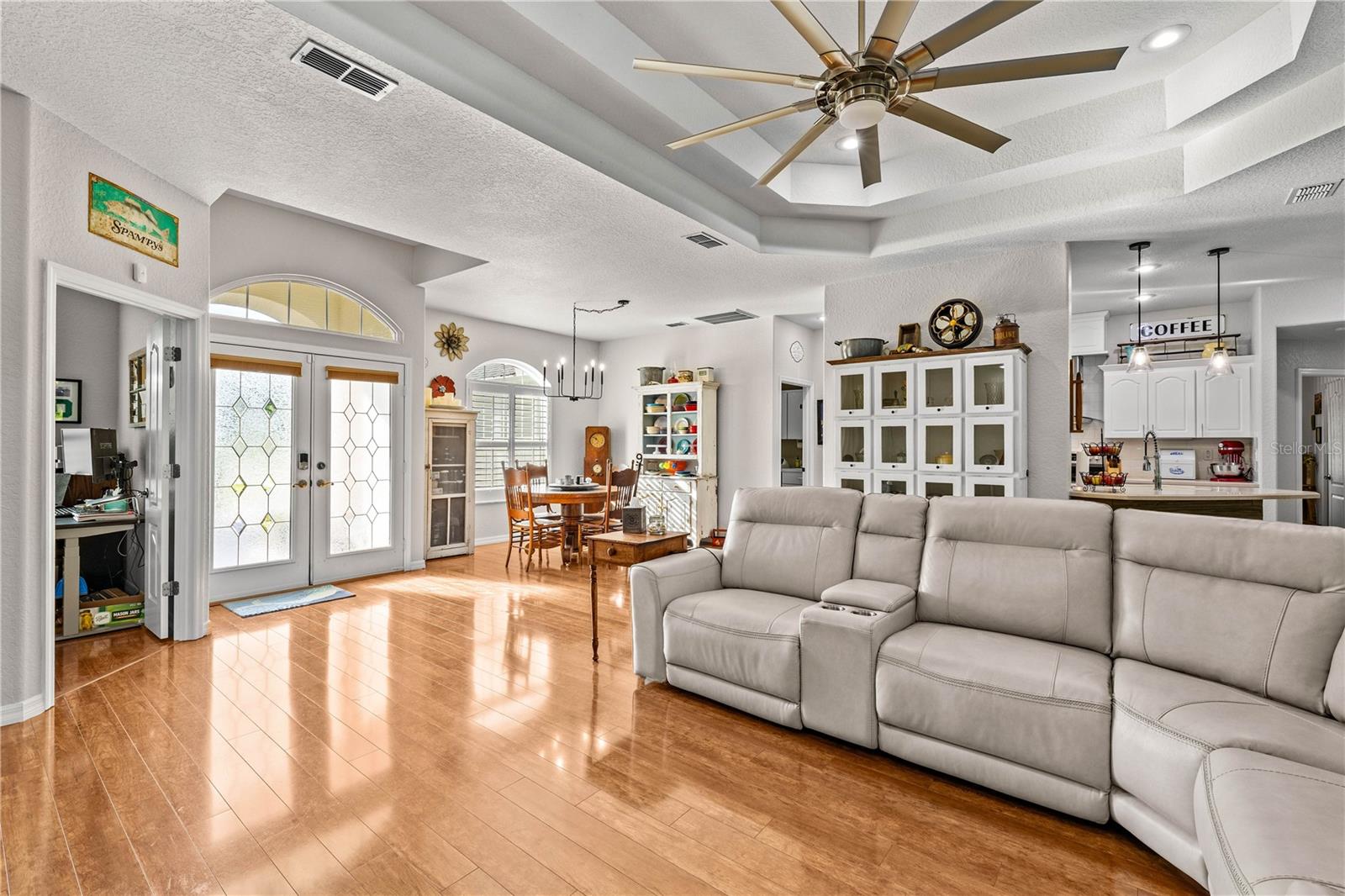 Tantas atualizações nesta impressionante casa unifamiliar de Alexander Custom Built estão perfeitamente situadas no 15º buraco do campo de golfe de Oak Hill, oferecendo vistas panorâmicas do fairway. A casa recebe você com uma grande entrada de portas duplas que leva a um piso aberto com tetos de 9 pés e um elegante teto de bandeja na área de estar. A cozinha está equipada com utensílios de aço inoxidável e iluminação atualizada, melhorando seu apelo moderno. Sliders triplos expansivos abertos a um lanai fechado adornado com pavimentadoras de tijolos, uma pérgola de madeira, um balcão projetado para bancos de bar e um banco embutido para assentos confortáveis. O quintal cercado é lindamente paisagístico de árvores frutíferas e mantido por um sistema de irrigação que usa água bem, combinando luxo com vida ao ar livre prática. Esta casa combina perfeitamente espaços internos sofisticados com comodidades ao ar livre convidativas, ideais para o campo de golfe. Teto substituído em 2022, HVAC substituído em 2022 e persianas de plantações por casa, sistema de segurança Vivint com a campainha do anel, trava de porta do teclado, câmeras de segurança, interrupção de vidro, sensores de porta, sensor de água para aquecedor de água quente e entrada de ginástica clara, feita ao ar livre, muitas atualizações nesta casa impressionante!