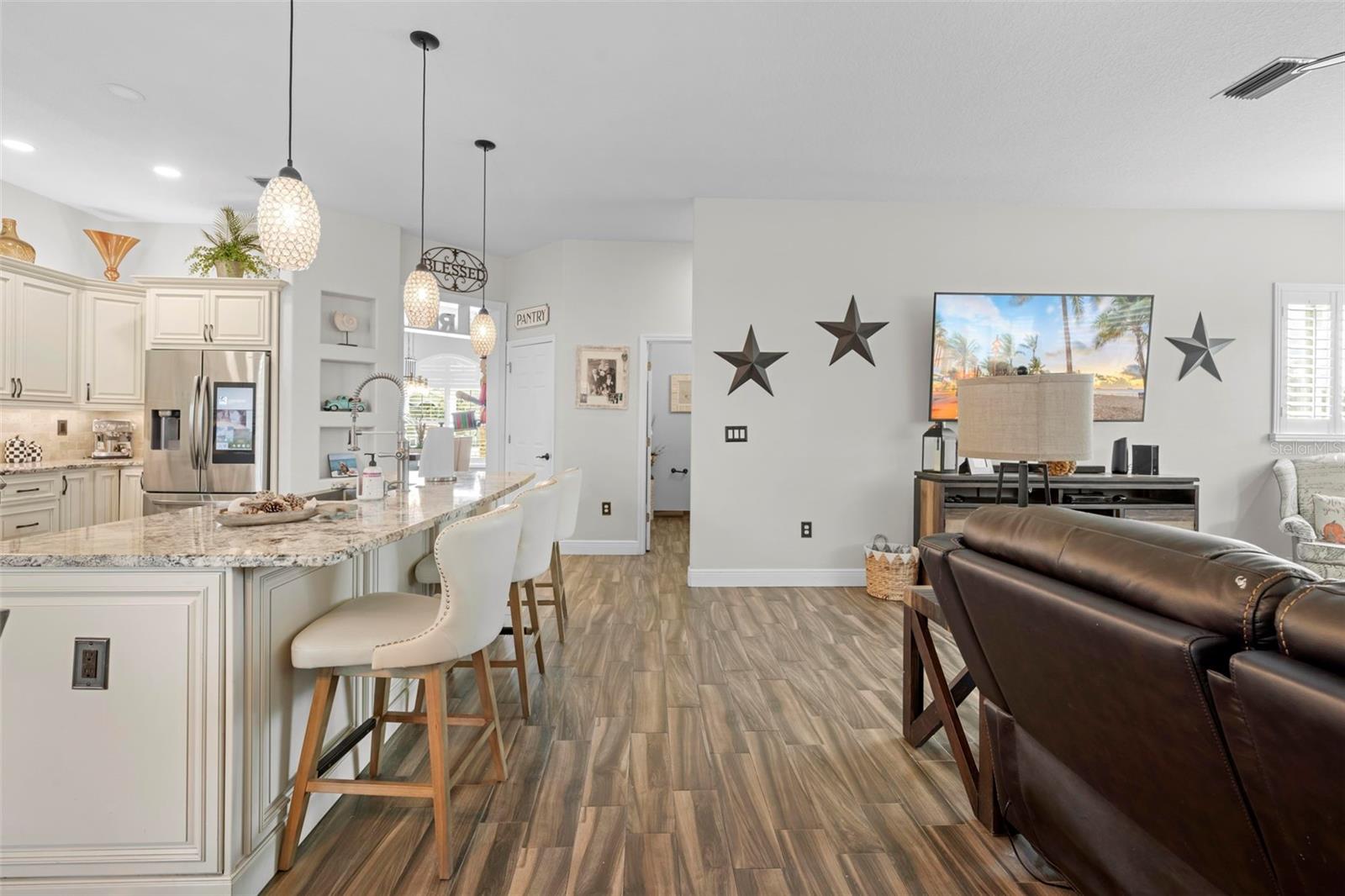 Bem-vindo à casa com piscina dos seus sonhos em um dos condomínios fechados mais desejáveis de Spring Hill, Pristine Place! Esta linda casa de 4 quartos e 2 banheiros oferece uma combinação excepcional de elegância, conforto e funcionalidade - depois de entrar, você nunca mais vai querer sair. A casa possui um apelo requintado com um telhado mais novo (2017), passarela de tijolos e deck de piscina correspondente. Através das mais novas portas de entrada dupla com tecnologia de fechadura inteligente, descubra uma planta de quartos divididos cuidadosamente projetada, aprimorada por acabamentos neutros, iluminação decorativa, janelas escuras e elegantes pisos de vinil e azulejos. As áreas formais de estar e jantar apresentam revestimentos de azulejos personalizados com aparência de madeira e teto duplo, adicionando um toque refinado. Um impressionante bar de vinhos com acabamentos coordenados e uma adega refrigerada elevam o espaço para refeições. A cozinha completamente remodelada impressionará qualquer chef com seus armários de madeira de alta qualidade, bancadas de granito, pia de casa de fazenda e eletrodomésticos de aço inoxidável mais recentes, incluindo uma nova linha de fritadeiras de ar Samsung de vidro. O espaçoso quarto familiar oferece o lugar perfeito para relaxar com lareira a gás e estantes embutidas. Retire-se para a luxuosa suíte principal com área de estar, closets para ele e para ela e um banheiro tipo spa com pias duplas, banheira de hidromassagem, chuveiro separado e detalhes elegantes de blocos de vidro. Três quartos adicionais de tamanho generoso oferecem conforto para familiares ou visitantes. Saia para o seu oásis privado! A ampla varanda possui um teto macho e fêmea e uma cozinha externa totalmente equipada com eletrodomésticos de aço inoxidável Blaze, grelha plana, geladeira e geladeira. A piscina recapeada Diamond Bright Bahama Blue (água salgada convertida em 2020) apresenta iluminação de nebulosa, uma cachoeira e um motor de piscina mais recente. Logo além do recinto protegido, aproveite as noites junto à fogueira com vista para o quintal cercado. Pristine Place oferece comodidades em estilo resort, incluindo clube, piscina comunitária, academia, playground e biblioteca. Convenientemente localizado perto da Suncoast Parkway para viagens rápidas a Tampa e ao Aeroporto TPA. O Veterans Memorial Park, o Anderson Snow Park, o Weeki Wachee Springs, o Pine Island e o Roger's Park estão todos a poucos minutos de distância. Esta é uma casa imperdível – agende sua exibição privada hoje mesmo!