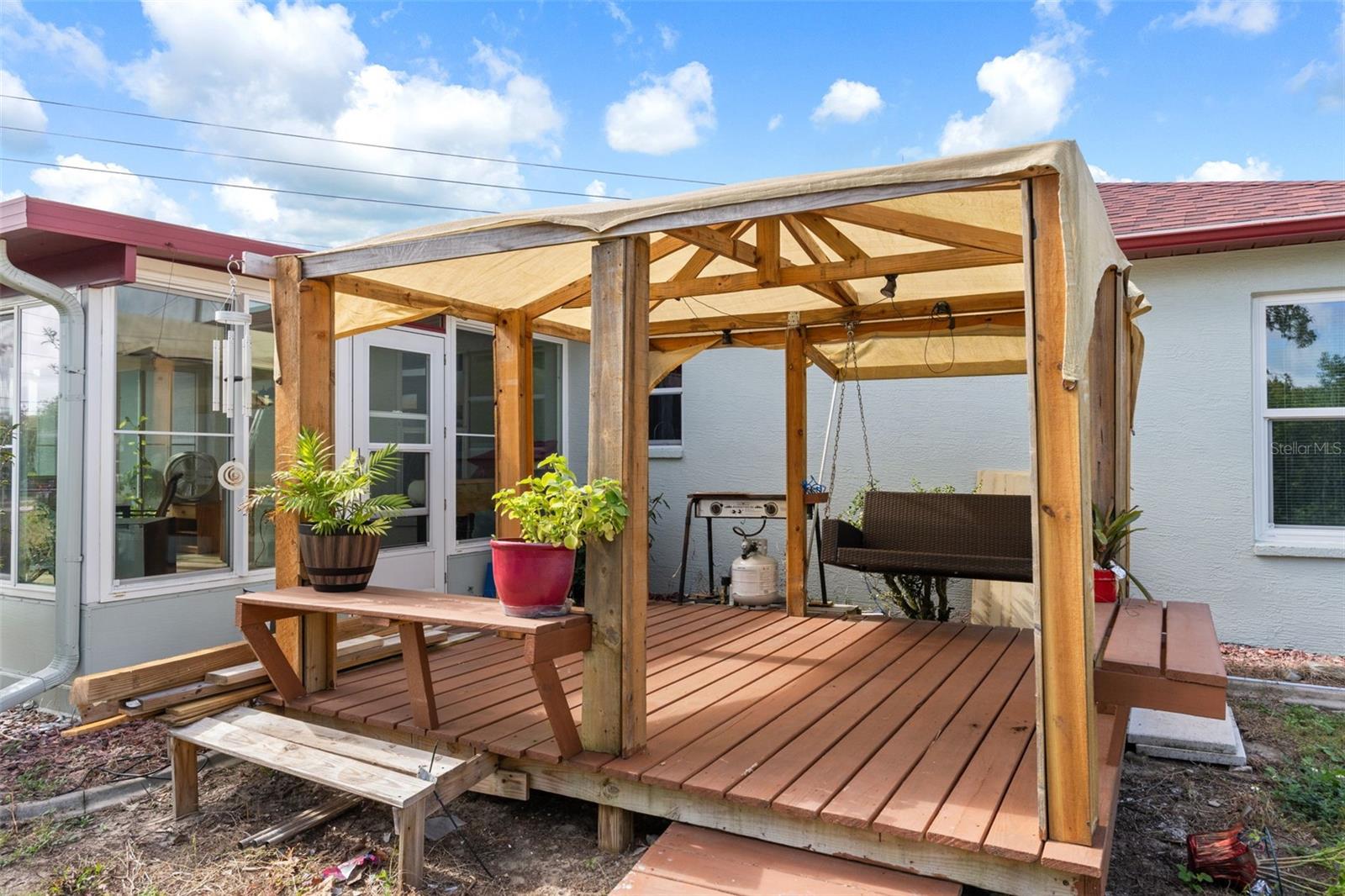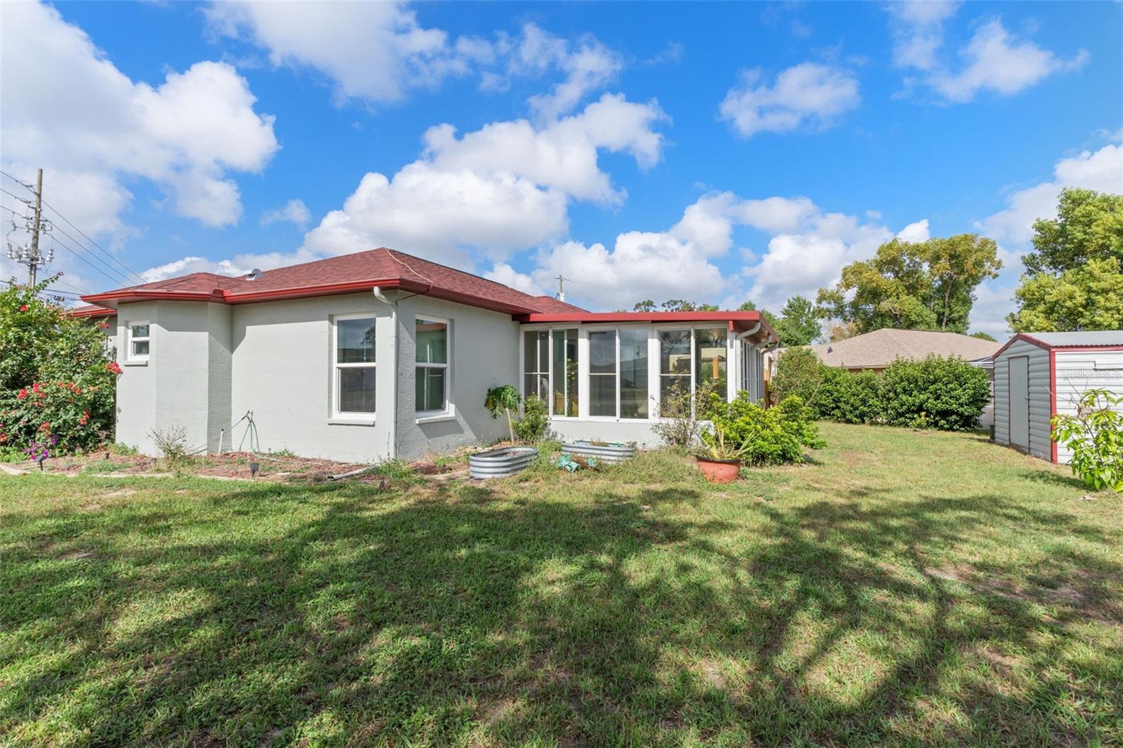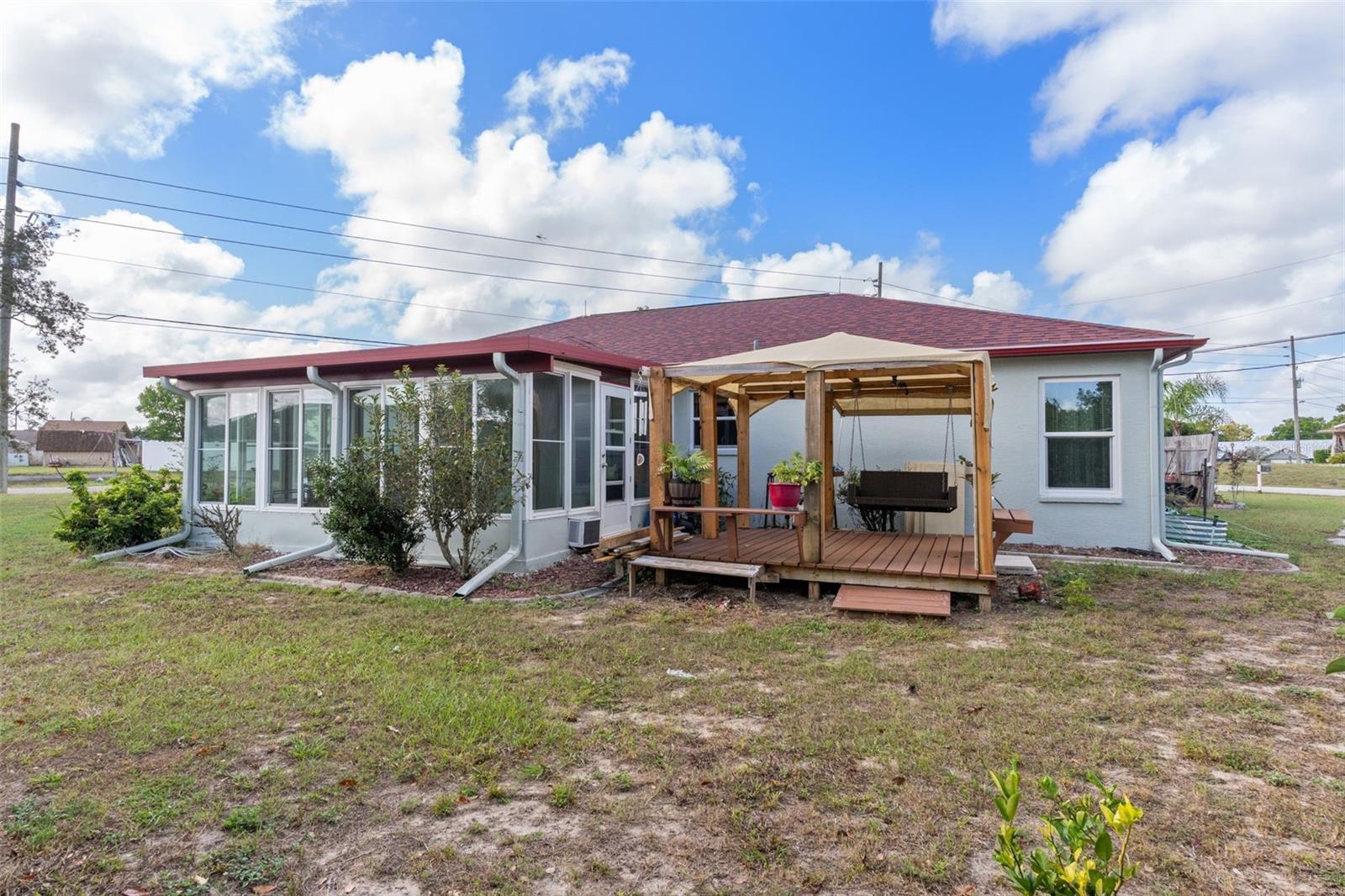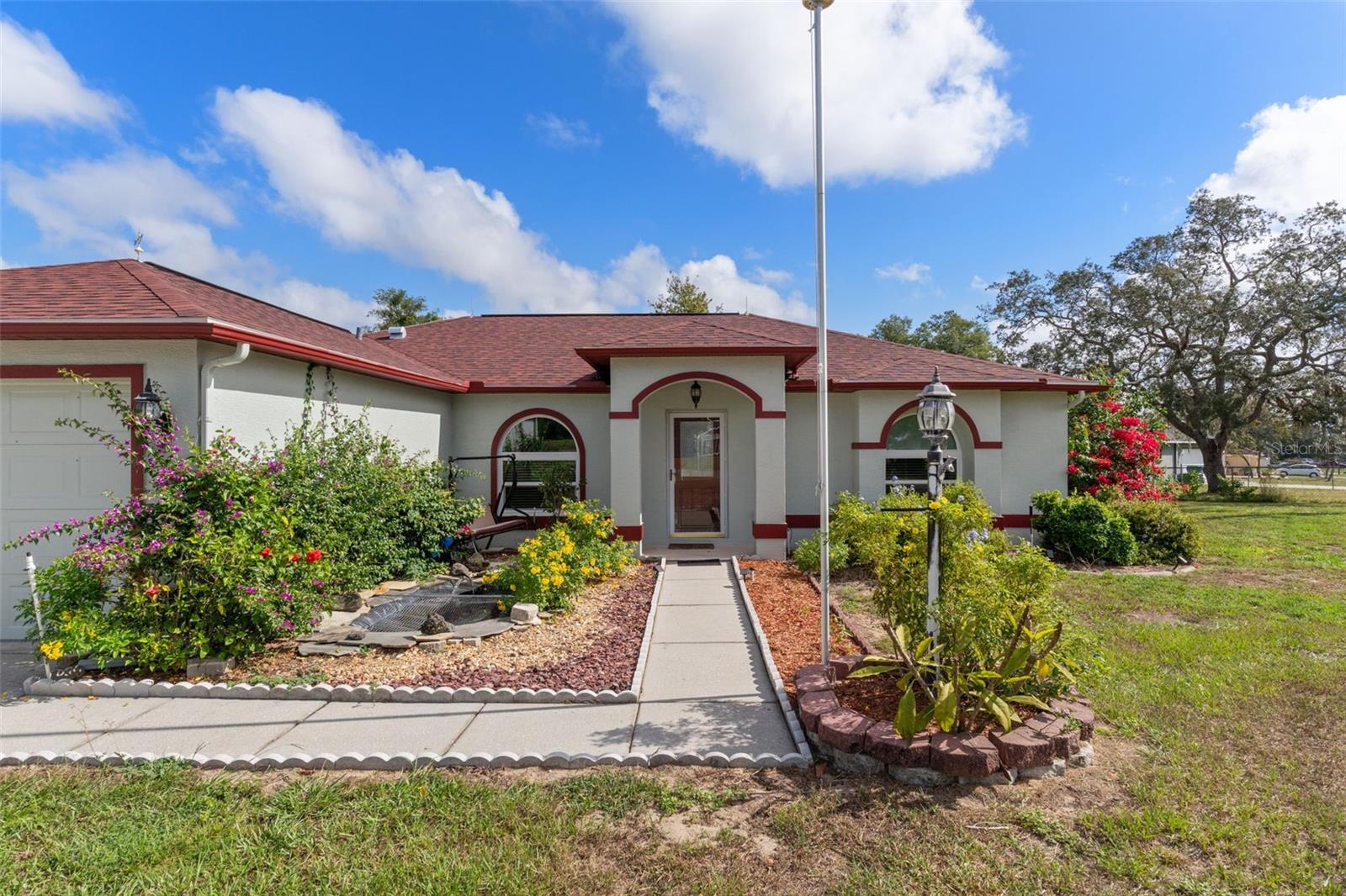 Casa de 3 quartos, 2 banheiros, impecavelmente conservada, em um amplo terreno de esquina com quintal sombreado e deck. Telhado substituído há 3 meses; exterior pintado há 4 meses. A maioria das janelas foi atualizada para painel duplo. Quarto Florida de azulejos para as quatro estações, com janelas deslizantes de vidro duplo e unidade de ar condicionado dedicada. Bancadas de granito na cozinha com área de alimentação, iluminação personalizada e torneiras ativadas por movimento. Planta baixa aberta em estilo Greatroom com tetos altos e paredes/tetos texturizados desmontáveis. LVP à prova de vida e piso de cerâmica por toda parte. Grandes quartos de hóspedes. Lavanderia interna com lavadora e secadora de altura confortável (2017). Campo de drenagem substituído nos últimos 2 anos. Galpão de utilidades independente 10x12 incluído. Garagem para 2 carros com porta resistente a furacões, acesso retrátil ao sótão, bancadas de trabalho e estantes. Recursos de eficiência energética e conveniência tornam esta casa realmente pronta para morar!