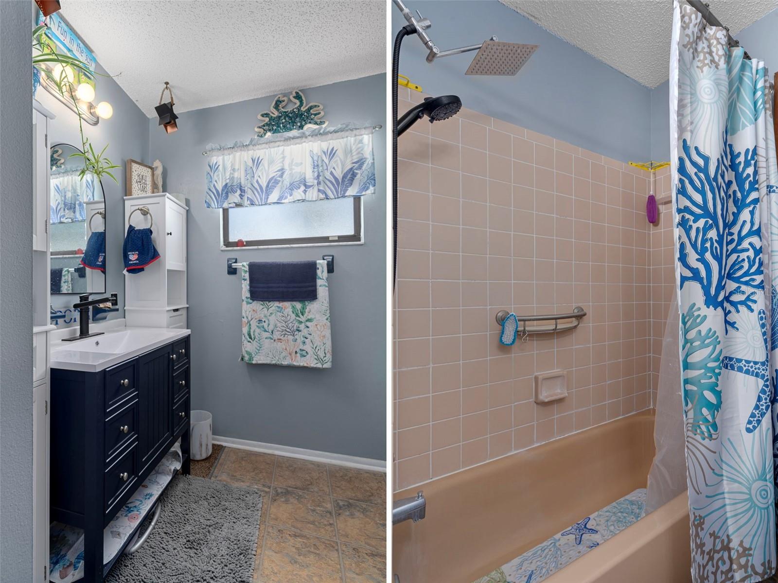 Lindamente atualizada, 2 quartos, 2 banheiros, garagem para 2 carros, CASA COM PISCINA em um grande terreno de esquina CERCADO. Entre em um interior claro e aberto com uma COZINHA RECENTEMENTE ATUALIZADA com ARMÁRIOS DE AGITADOR DE QUALIDADE, eletrodomésticos de aço inoxidável premium e acabamentos refinados. O espaçoso salão/quarto familiar oferece vistas serenas da PISCINA AQUECIDA DE GUNITE e da exuberante paisagem tropical. Desfrute do melhor da vida ao ar livre com uma BANHEIRA DE HIDROMASSAGEM relaxante LANAI e jardins artisticamente projetados cercados por uma NOVA CERCA DE PRIVACIDADE DE VINIL. Com armazenamento abundante, incluindo TRÊS GALPÕES, esta casa combina luxo, conforto e charme costeiro - seu retiro privado o aguarda. Vaidades e luminárias atualizadas nos banheiros. CAMPO DE DRENAGEM RECENTEMENTE SUBSTITUÍDO, novo abridor de porta de garagem acionado por correia, hidrante na frente da casa.