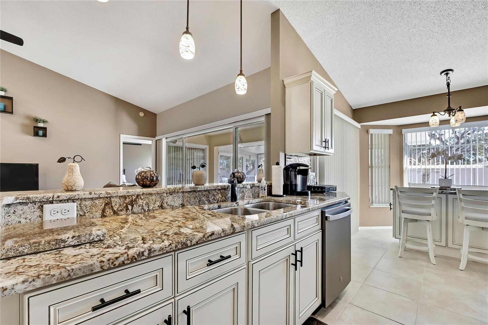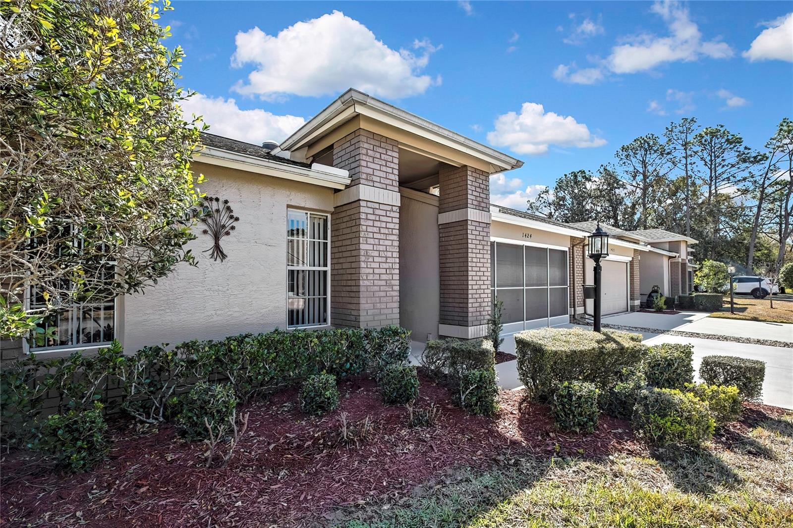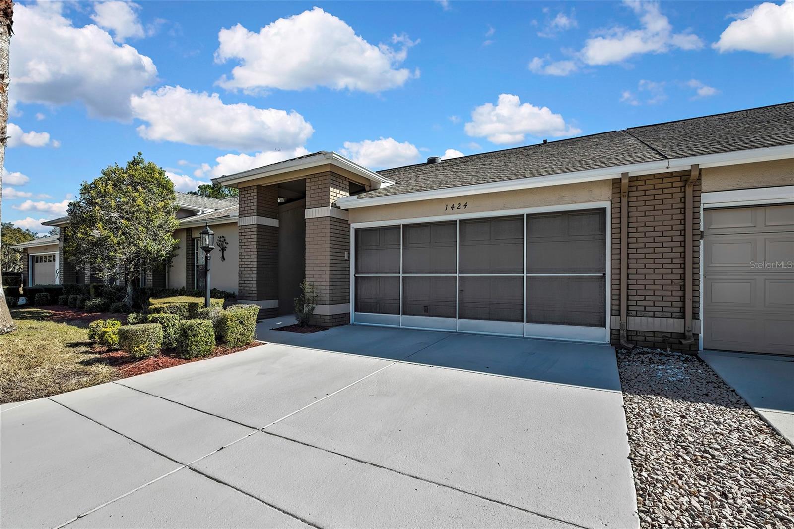 Vila em Timber Pines 55+ Comunidade. Vila lindamente atualizada com 2 quartos, 2 banheiros e garagem para 2 carros, oferecendo um layout aberto espaçoso e atualizações de qualidade por toda parte. Entre na grande sala com tetos altos de catedral, piso de madeira e um tubo solar que preenche o espaço com luz natural, fluindo para uma área de jantar separada, ideal para entretenimento. Portas de vidro deslizantes levam à varanda fechada de grandes dimensões (aproximadamente 14 x 18) com piso de cerâmica, tetos isolados, uma grande clarabóia adicional, janelas deslizantes mais novas e uma porta externa, tudo com vista para um quintal privado sem vizinhos traseiros. A suíte principal inclui piso em carpete, acesso à varanda, dois closets e banheiro privativo com clarabóia, pias duplas, piso de cerâmica, box amplo e porta de correr. A cozinha atualizada apresenta armários novos, bancadas de granito, pia embutida, gavetas extraíveis da despensa, piso de cerâmica, eletrodomésticos pretos de aço inoxidável, tetos de catedral, copa com janela saliente e portas de correr para a varanda. O segundo quarto oferece piso em carpete com luz e ventilador atualizados, enquanto o banheiro de hóspedes possui tubo solar, penteadeira mais recente, sancas, piso de cerâmica e uma combinação de banheira/chuveiro. As características adicionais incluem lavanderia interna com armários e lavadora / secadora, garagem para 2 carros com piso pintado, telhado substituído em 2023 e sistema HVAC (2012). Localizada no altamente desejável condomínio fechado Timber Pines 55+, Villa (sem cães). Os residentes desfrutam de segurança vigiada 24 horas, quatro campos de golfe profissionais, clube de campo e restaurante, centro de fitness e bem-estar, centro de artes cênicas, quadras de tênis, pickleball, bocha e shuffleboard, trilhas para caminhada e ciclismo, várias piscinas comunitárias, um calendário social ativo com clubes e eventos, além de uma piscina privada adicional exclusiva para a vila de vilas, oferecendo um verdadeiro estilo de vida adulto ativo em estilo resort.
