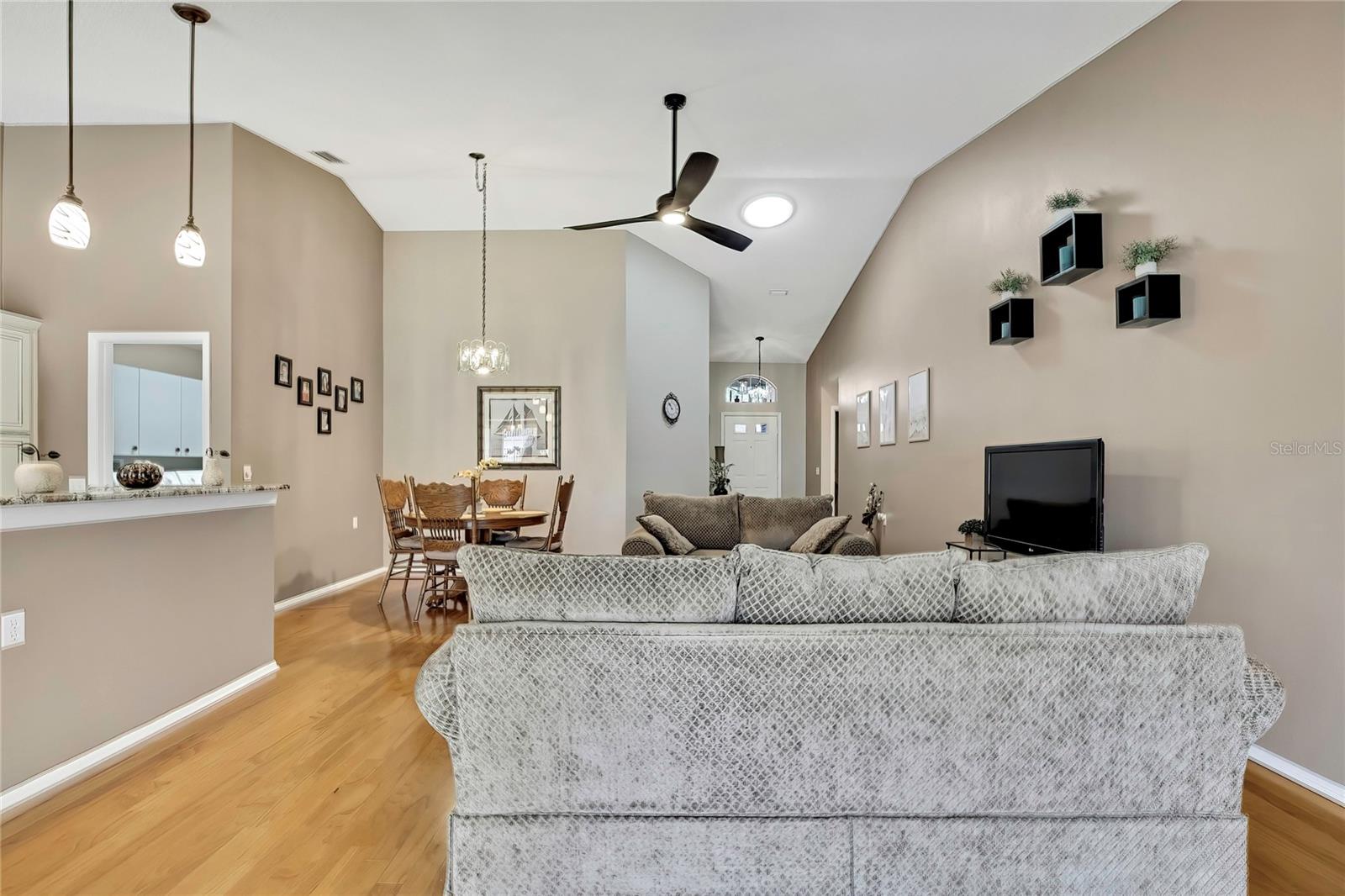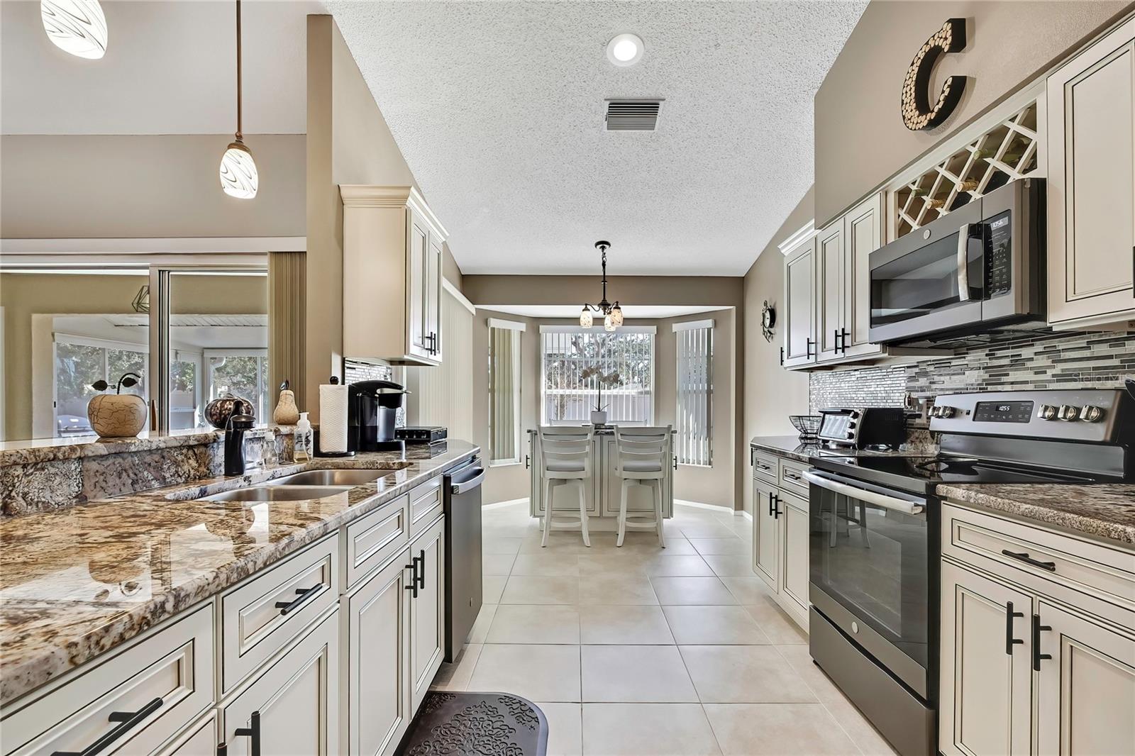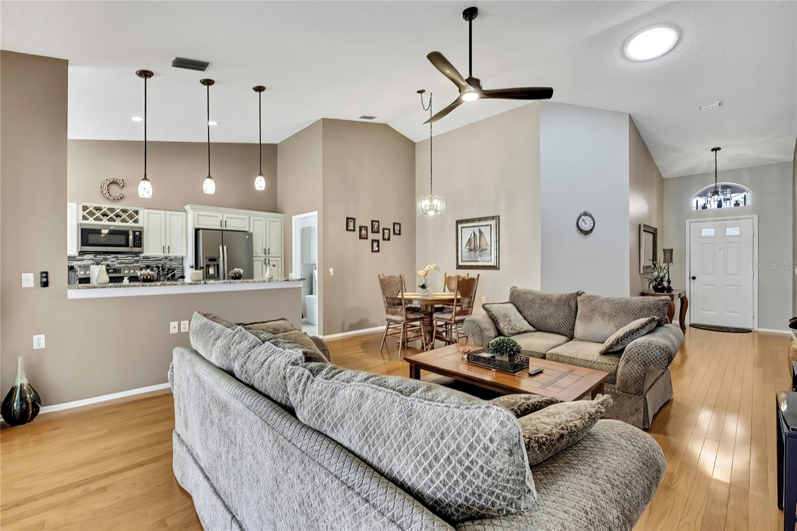 Vila em Timber Pines 55+ Comunidade. Vila lindamente atualizada com 2 quartos, 2 banheiros e garagem para 2 carros, oferecendo um layout aberto espaçoso e atualizações de qualidade por toda parte. Entre na grande sala com tetos altos de catedral, piso de madeira e um tubo solar que preenche o espaço com luz natural, fluindo para uma área de jantar separada, ideal para entretenimento. Portas de vidro deslizantes levam à varanda fechada de grandes dimensões (aproximadamente 14 x 18) com piso de cerâmica, tetos isolados, uma grande clarabóia adicional, janelas deslizantes mais novas e uma porta externa, tudo com vista para um quintal privado sem vizinhos traseiros. A suíte principal inclui piso em carpete, acesso à varanda, dois closets e banheiro privativo com clarabóia, pias duplas, piso de cerâmica, box amplo e porta de correr. A cozinha atualizada apresenta armários novos, bancadas de granito, pia embutida, gavetas extraíveis da despensa, piso de cerâmica, eletrodomésticos pretos de aço inoxidável, tetos de catedral, copa com janela saliente e portas de correr para a varanda. O segundo quarto oferece piso em carpete com luz e ventilador atualizados, enquanto o banheiro de hóspedes possui tubo solar, penteadeira mais recente, sancas, piso de cerâmica e uma combinação de banheira/chuveiro. As características adicionais incluem lavanderia interna com armários e lavadora / secadora, garagem para 2 carros com piso pintado, telhado substituído em 2023 e sistema HVAC (2012). Localizada no altamente desejável condomínio fechado Timber Pines 55+, Villa (sem cães). Os residentes desfrutam de segurança vigiada 24 horas, quatro campos de golfe profissionais, clube de campo e restaurante, centro de fitness e bem-estar, centro de artes cênicas, quadras de tênis, pickleball, bocha e shuffleboard, trilhas para caminhada e ciclismo, várias piscinas comunitárias, um calendário social ativo com clubes e eventos, além de uma piscina privada adicional exclusiva para a vila de vilas, oferecendo um verdadeiro estilo de vida adulto ativo em estilo resort.