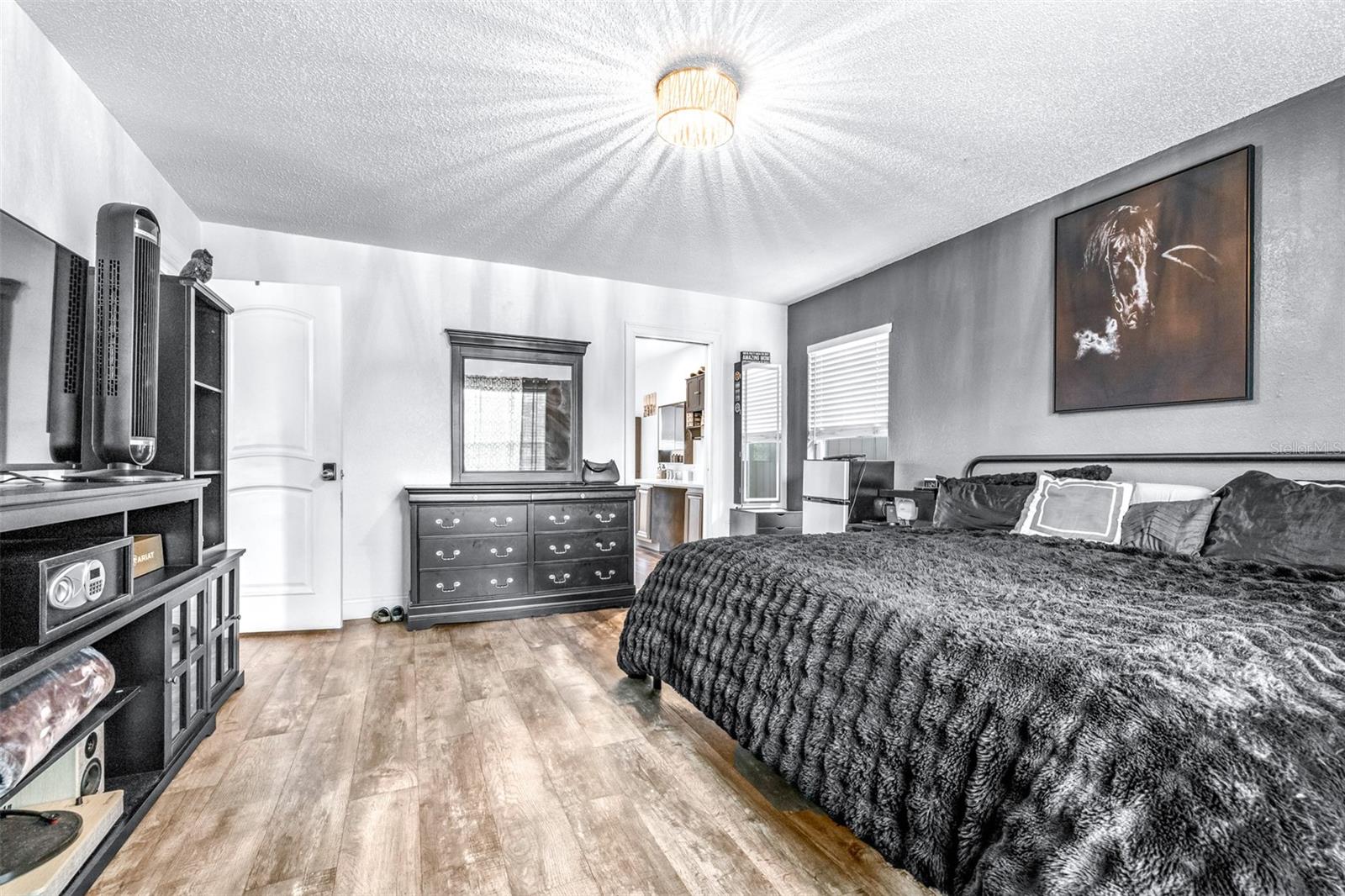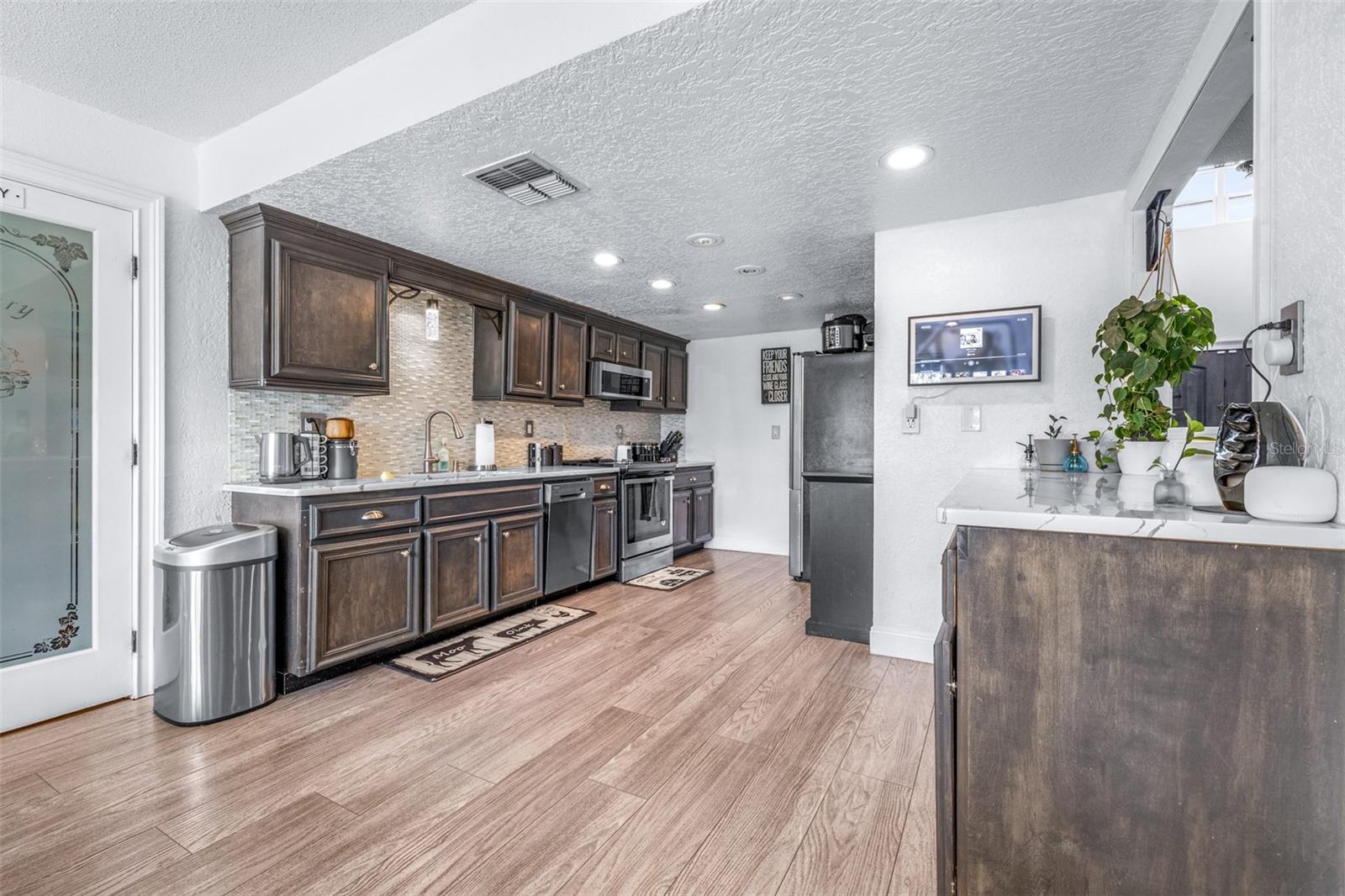 Dois quartos flexíveis podem ser convertidos em mais quartos** Uma casa estilosa e personalizada em um lindo terreno! Venha conferir esta casa unifamiliar de 4 quartos, 2 banheiros e meio e 2.315 pés quadrados, situada em 0,21 acres em um beco sem saída! Ao passar pelas portas da frente em estilo fácil de falar, você é saudado com um lustre e um elegante piso de cerâmica! Imediatamente à sua esquerda e à direita estão duas salas flexíveis de amplo tamanho, perfeitas para escritórios, salas de jogos ou facilmente convertidas em quartos, se preferir! Passando pela escada você chega a uma sala de estar aberta com vista para o lindo quintal. A sala de estar flui suavemente para a sala de jantar e cozinha, mantendo ao mesmo tempo os seus próprios espaços formais. Há uma área de bar do lado de fora da cozinha, perfeita para entretenimento! A cozinha possui iluminação embutida, bancada em granito, gavetas e armários com fechamento suave, torneira embutida e backsplash personalizado! Há uma geladeira LG (compressor substituído recentemente), um fogão Whirlpool e micro-ondas e uma máquina de lavar louça Frigidaire. Há também uma despensa com porta de vidro gravada personalizada! A sala de jantar oferece muito espaço para uma mesa muito grande e fica ao lado das janelas, permitindo muita luz natural e vista! Do outro lado da sala fica a entrada para a suíte master. O grande quarto principal possui uma luminária moderna e grandes janelas que oferecem uma vista direta do seu oásis privado no quintal. O banheiro principal possui um armário de parede, pias Jack e Jill e um box amplo com porta de vidro deslizante, azulejos personalizados, um chuveiro “lata de chuva” e uma área de estar! Caminhar de volta em direção à porta da frente da casa leva você até a escada com corrimão de madeira (que combina com o tema do resto da casa) que leva você a três quartos formais adicionais! O primeiro quarto à sua esquerda tem painéis de madeira personalizados, portas de armário de celeiro e estantes embutidas? Todos os três quartos extras possuem ventiladores de teto. O corredor do andar de cima é “aberto”, proporcionando fácil visão do andar de baixo. A casa dispõe de ampla garagem para 2 carros, com arrecadação nas laterais, bem como sótão! Há um pátio protegido conectado à sala de estar. Por último, mas não menos importante, o quintal desta propriedade é enorme e tem vista para o lago (cheio na maior parte do tempo). A propriedade está totalmente vedada e a casa foi “impermeabilizada”. Venha entrar em sua nova casa!