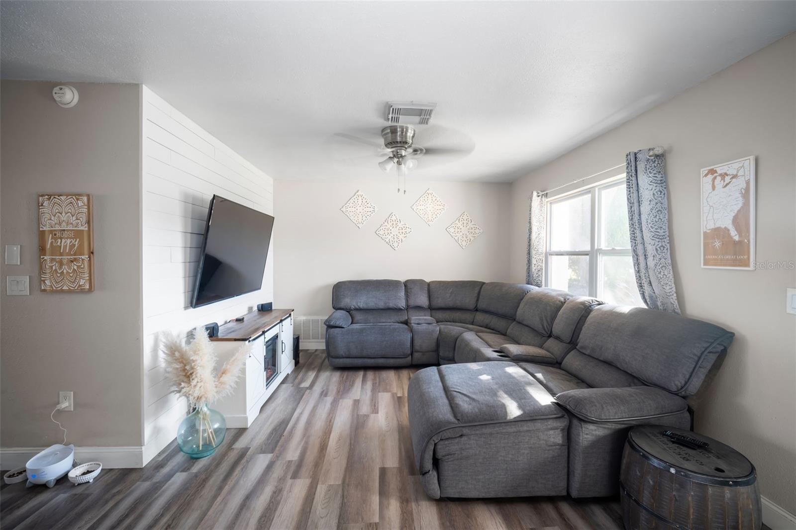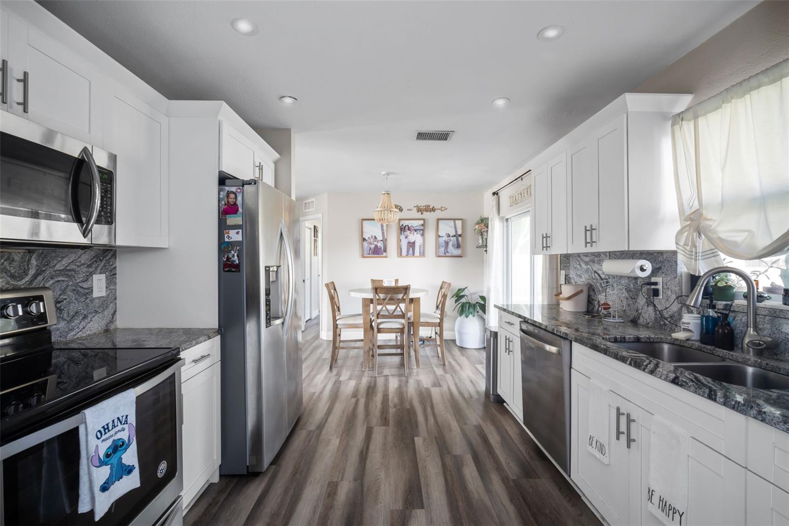 Esta casa moderna de 3 quartos e 2 banheiros atualizada e atualizada é perfeita para o cultivo de famílias, oferecendo uma mistura de luxo e conforto. A espaçosa planta aberta é adornada com novos pisos de vinil de luxo, estabelecendo um tom elegante que se estende para a cozinha, que possui utensílios de aço inoxidável elegante, bancadas de granito impressionantes e um elegante backsplash de granito. Aninhado em um bairro tranquilo e isolado, esta jóia de um andar inclui uma garagem de um carro e uma generosa Lanai, coberta de tamanho coberto. O Lanai tem vista para um grande quintal privado e totalmente cercado - ideal para atividades ao ar livre, armazenando seus brinquedos favoritos ou adicionando uma piscina. Esta casa está completamente pronta, com um novo telhado, uma substituição completa do sistema CA e um sistema séptico recém-bombeado, todos concluídos em 2021. A conveniência está à sua porta, com comodidades essenciais como supermercados, cafeterias, restaurantes e a Westside Elementary School, a uma curta caminhada.