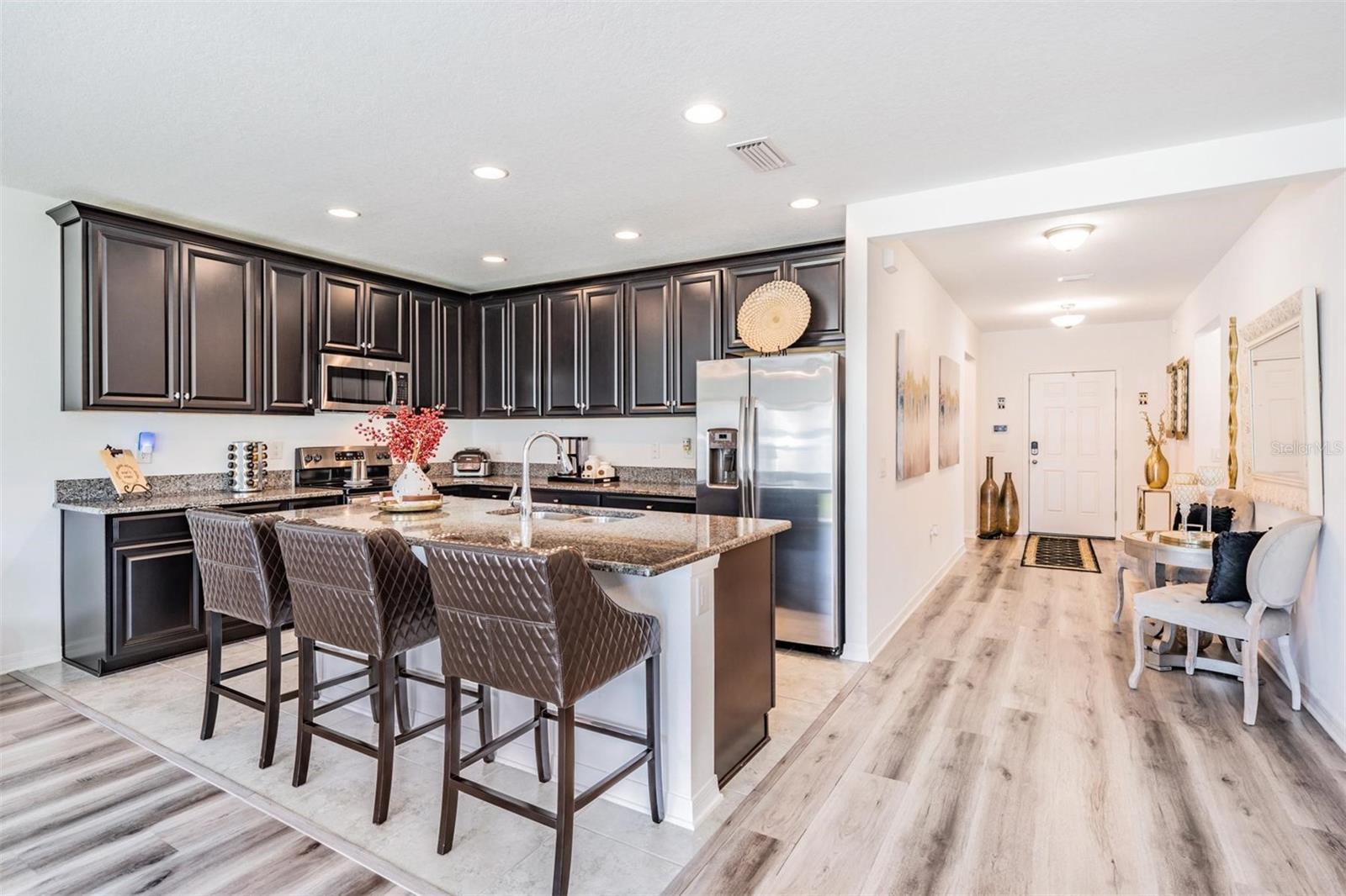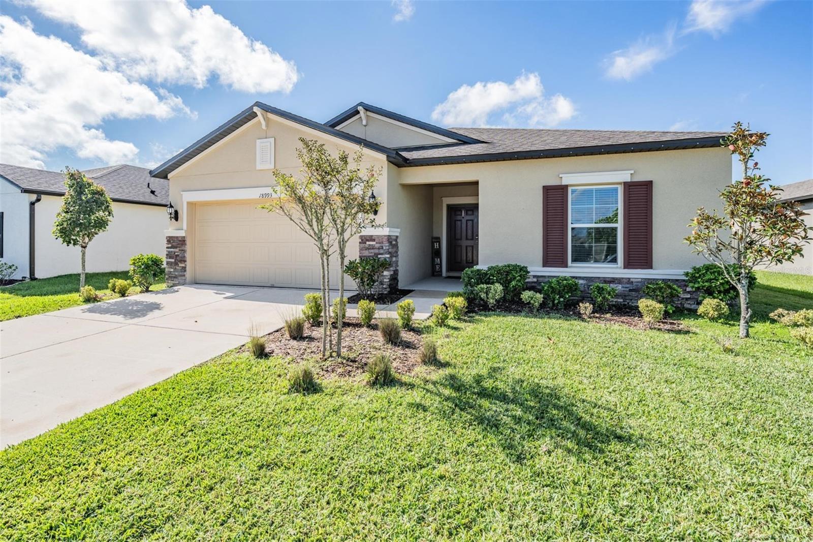 Bem-vindo ao 18993 Alfaro Loop na comunidade Talavera perto de Land O’ Lakes! Construído em 2019 pela renomada M/I Homes, este impressionante modelo Sentinel combina elegância moderna com vida confortável. Ao entrar, você é saudado por um layout cuidadosamente projetado. De um lado, dois quartos partilham uma casa de banho completa. No lado oposto, uma sala versátil oferece o espaço perfeito para um escritório em casa, uma sala de jogos ou um quarto de hóspedes adicional. O coração da casa é a cozinha aberta. Possui armários de madeira escura, bancadas em granito, uma ilha central desejada para preparação de refeições ou jantares casuais e um armário despensa. A cozinha flui perfeitamente para a Grande Sala, banhada por luz natural e perfeita para entretenimento. Os eletrodomésticos em inox e a ilha dão um toque de sofisticação moderna. A suíte principal é um retiro privado localizado nos fundos da casa. Possui banheiro privativo com box amplo e closet espaçoso. Portas duplas de vidro deslizantes na Grande Sala levam ao quintal, que é perfeito para reuniões ao ar livre. Este imóvel dispõe de painéis solares, que serão integralmente pagos pelo Vendedor no fecho. Esses painéis oferecem economias significativas nas contas de energia e aumentam o apelo ecológico da casa. As comodidades de Talavera melhoram o estilo de vida da comunidade. Eles apresentam uma piscina em formato de coração do tamanho de um resort com splash pad, clubhouse, quadras de tênis e basquete, cabanas e playground. O bairro é projetado com calçadas por toda parte, o que o torna perfeito para passeios. Convenientemente localizada, esta casa oferece acesso rápido às principais rodovias, incluindo I-75, Suncoast Parkway, SR 52 e US Hwy 41. Não perca a oportunidade de tornar esta bela casa sua e desfrutar do estilo de vida vibrante de Talavera!