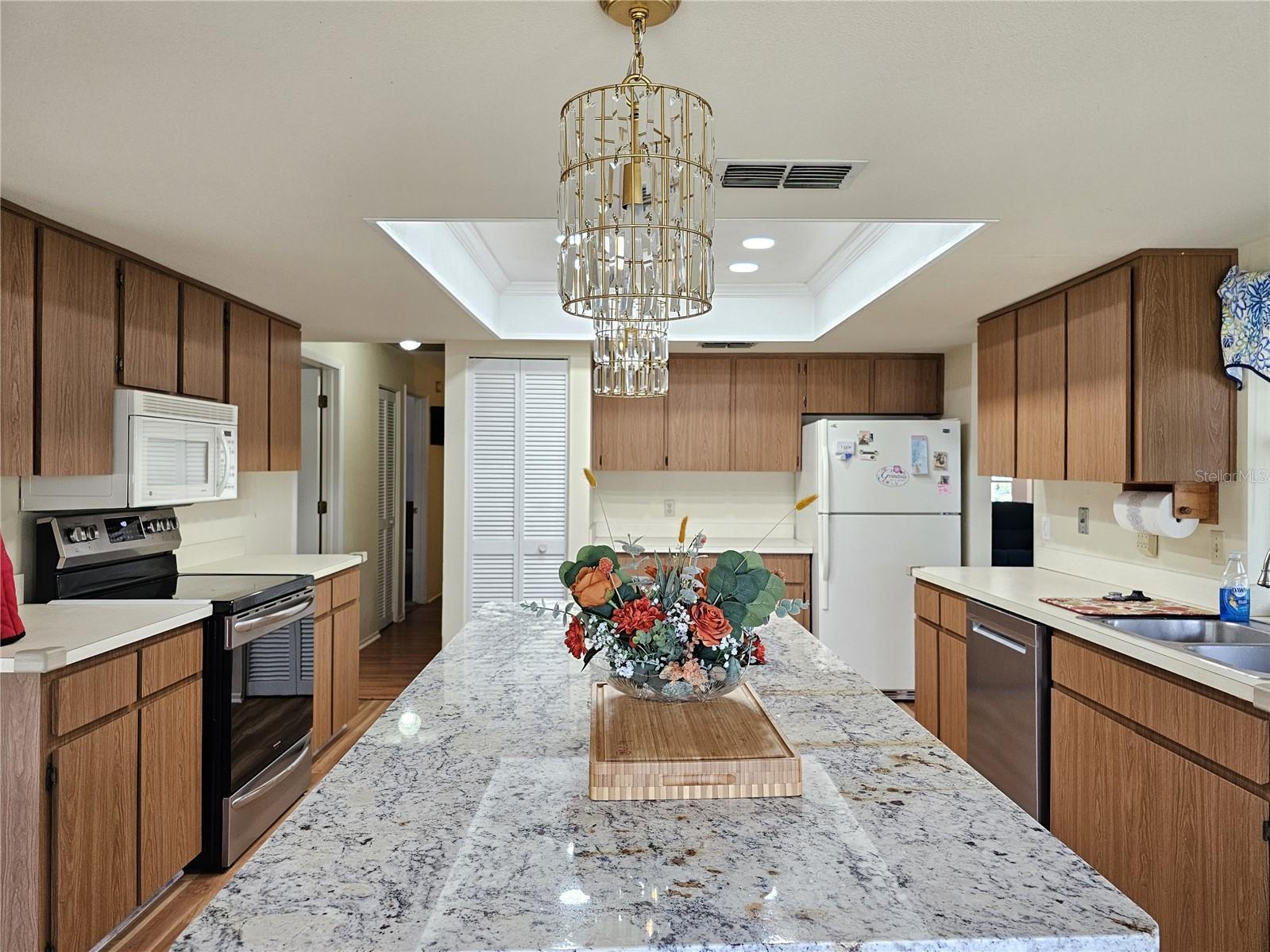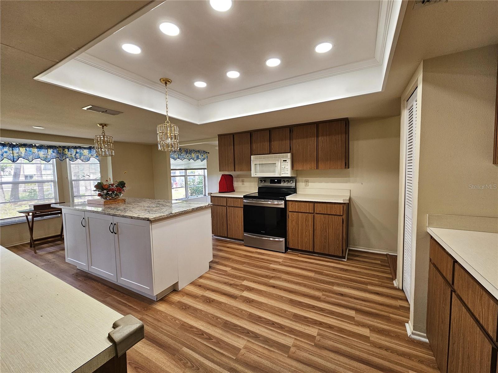Timber Pines 3 Bedroom Home 2 Full Bathrooms And A Screened 2 Car Garage On A Cul-De-Sac With A Front Porch- Enter The Home To The Parquet Floor Foyer And Formal Living And Dining Rooms- Oversize Eat In Kitchen With A Granite Center Island, Great For Entertaining - Extra Storage Under The Island - And Breakfast Bar- Pantry, And Dual Sinks- The Master Bedroom Has A Walk In Closet And Private Bathroom- There Is A Family Room That Can Also Be Used As An A varanda rastreada de grandes dimensões- extras incluem telhado e CA substituído em 2013, armazenamento no sótão, 2 turbinas de telhado, planta aberta- Ligue hoje para uma exibição. Timber Pines, uma comunidade fechada de mais de 55 anos, com 4 campos de golfe, clube de campo, restaurante e bar remodelado com várias telas de TV, 2 piscinas, academia de fitness, quadras de tênis e bola de picles, bola de bocha, sala de bilhar e mais de 100 clubes diferentes. Cabo de espectro, 2 caixas e Internet de alta velocidade também estão incluídos no HOA.