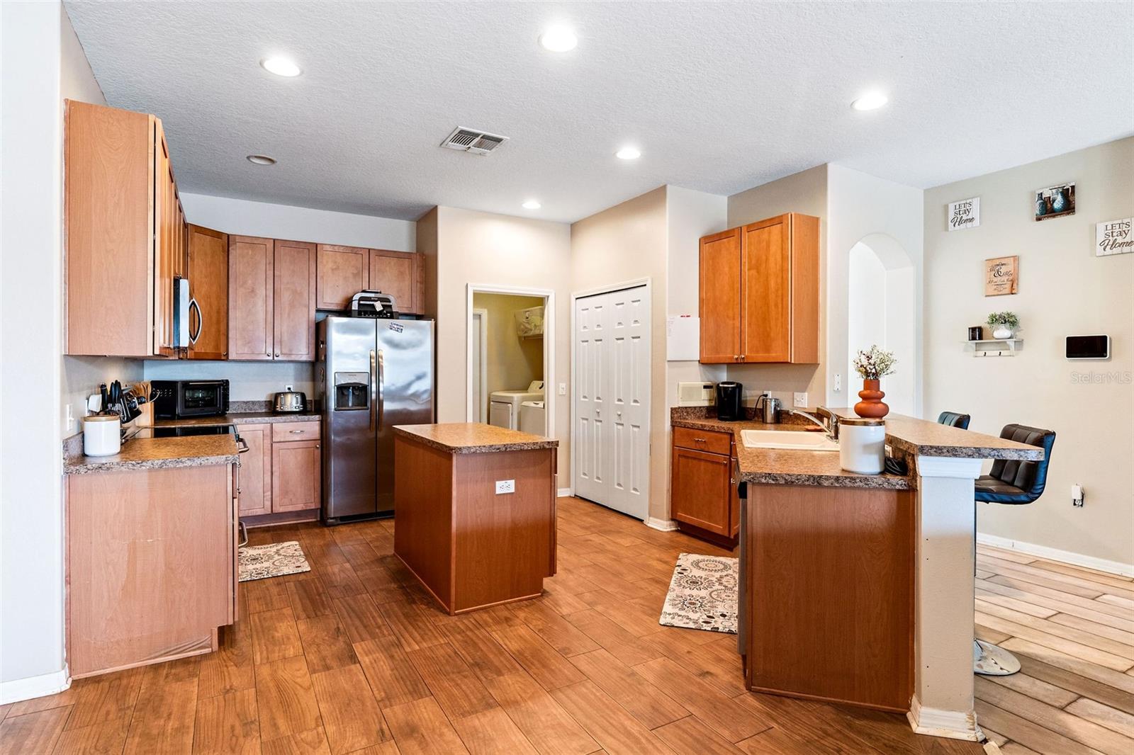 Novo preço !! ** Deve ver este lindo 4 quartos ~ 2 banheiros ~ 3 carros de carros em casa na bela comunidade Sterling Hills ** Esta casa espaçosa tem 2.384 pés quadrados de área de estar, um design de plano de tri-split e tetos abobadados. A Island Kitchen possui bar de café da manhã e inclui todos os aparelhos mais recentes + piso laminado mais recente + piso de azulejos de cerâmica mais recente da cozinha e ambos os banheiros. Lavanderia interna possui banheira de lavanderia e lavadora e secadora mais recentes. O banho principal inclui pias duplas, chuveiro separado e banheira de jato. Sistema de segurança Vivint, incluindo 4 câmeras (taxa de monitoramento $ 49,00 mensalmente). Paisagismo mais recente. A comunidade fechada da Sterling Hills é uma ação restrita com taxa anual de US $ 125,00 por ano, inclui muitas comodidades, piscina, quadra de tênis, sala de bilhar, sala de exercícios, casa de clubes e muito mais. Apenas alguns minutos para o Suncoast Parkway, fazendo uma viagem fácil para Tampa.