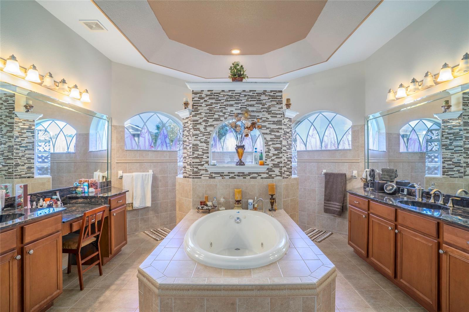 Descubra o luxo que vive nesta requintada casa de banheiro de 4 quartos e 3 quartos, com uma espaçosa garagem de 3 carros, localizada na altamente procurada comunidade de aldeias de Avalon. Passe pela convidativa entrada da porta francesa e seja recebida por tetos altos e uma abundância de luz natural, fluindo através de inúmeras janelas e portas de vidro deslizantes, criando um ambiente encantador por toda parte. Delicie -se com o retiro final dentro da luxuosa suíte primária, com duas caminhadas separadas em armários, pias duplas e chuveiros, acompanhados por uma grande banheira de imersão em seu centro. Três quartos adicionais e dois banheiros completos garantem amplo espaço e conforto para residentes e convidados. A casa exala a elegância com piso de madeira, enfeitando a sala de jantar e todos os quartos, complementados por pisos de ladrilhos na sala de estar. Aprimorando a experiência de entretenimento, a sala está equipada com alto -falantes de som surround de teto, perfeitos para noites e reuniões imersivas de cinema. Saia do seu próprio oásis privado, um espaçoso quintal cercado, oferecendo muito espaço para diversão e relaxamento ao ar livre. Localizados a poucos passos de distância, as aldeias do Avalon Community Clubhouse e da piscina acenam com comodidades emocionantes, incluindo uma academia bem equipada e uma grande piscina, aumentando ainda mais a experiência de vida da comunidade. Com acesso conveniente à Suncoast Parkway e Veterans Parkway, viajar para Tampa e além é fácil, tornando esta casa o epítome de luxo, conveniência e vida comunitária.