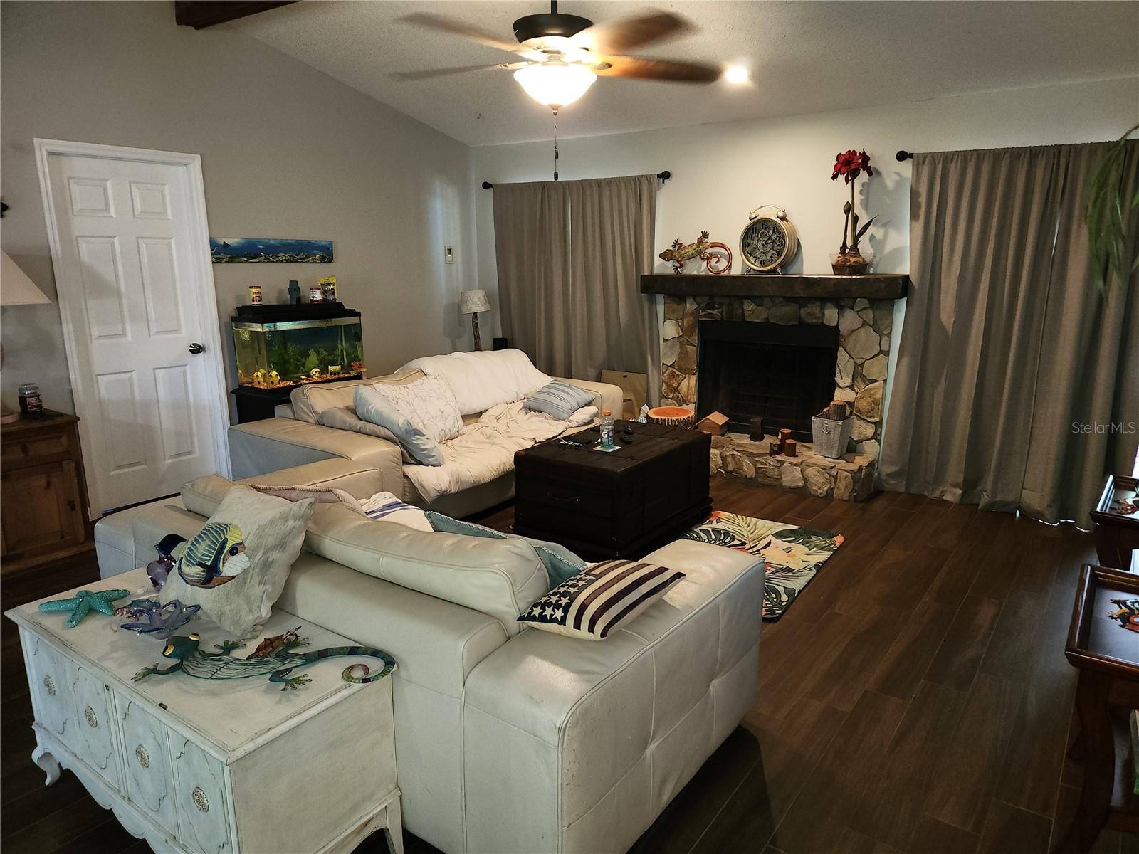 Spring Hill 3 Bedroom Home 2 Full Bathrooms And A Oversize Screened 2 Car Garage- The roof was replaced 2019 and AC was replaced 2023. Enter The Home Through A Dual Door Entry- Formal Dining Room- Vaulted Beamed Ceilings- Great Room With A Fieldstone Fireplace- Tiled Eat In Kitchen, Breakfast Bar And A Pantry- The Master Bedroom Has Dual Sinks And Dual Door Entry, Tub And A Separate Shower-Both Bathrooms have Skylights, Large Screened Varanda com uma piscina acima do solo. Os extras incluem um quintal cercado, armazenamento do sótão, lavanderia dentro de lavanderia, algumas portas com painéis interiores, ventiladores de teto, chamada de piso aberto hoje para uma exibição.